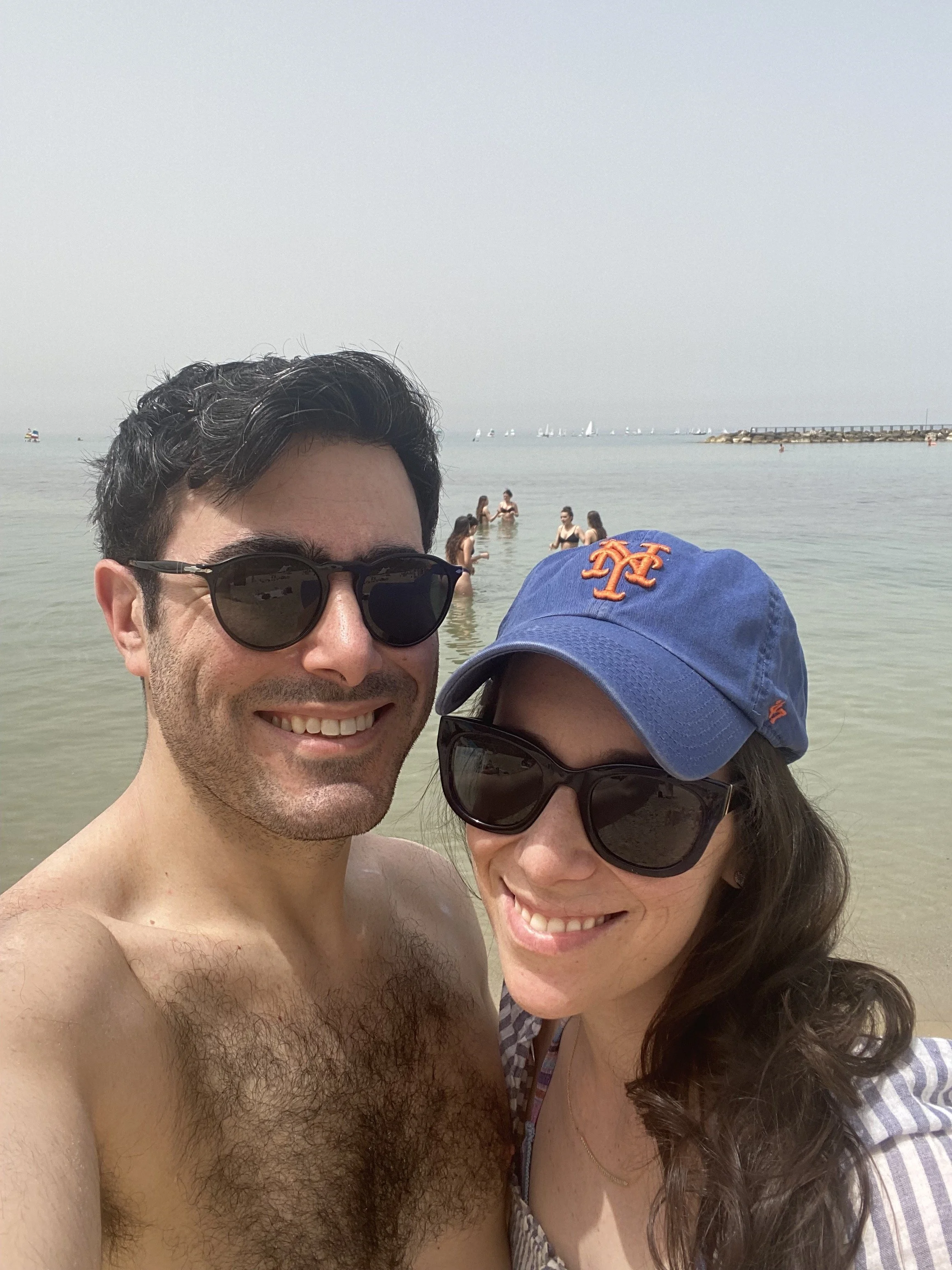 My mom got a recommendation to go to Hilton Beach, except you can’t just walk in through the Hilton Hotel as a non-guest and use their beach. So, the driver let us off by the Carlton. We started walking around in one direction to look for a place to sit, except every beach said “no swimming” because they were for water sports (but no one was actually doing any water sports), so we walked back in the other direction. We eventually just sat down and saw people going in the water. After a while the lifeguard would yell at them to get out, and the cycle went on and on. Thing was, by the time we actually got settled on the beach, we only had about 45 minutes before we had to be back at the van so we could get to our lunch reservation on time. Tensions were running pretty high by that point. Everyone was kind of annoyed, but Tzvi just kept smiling and saying how nice it was, which was more annoying than if he had been doing his normal complaining.