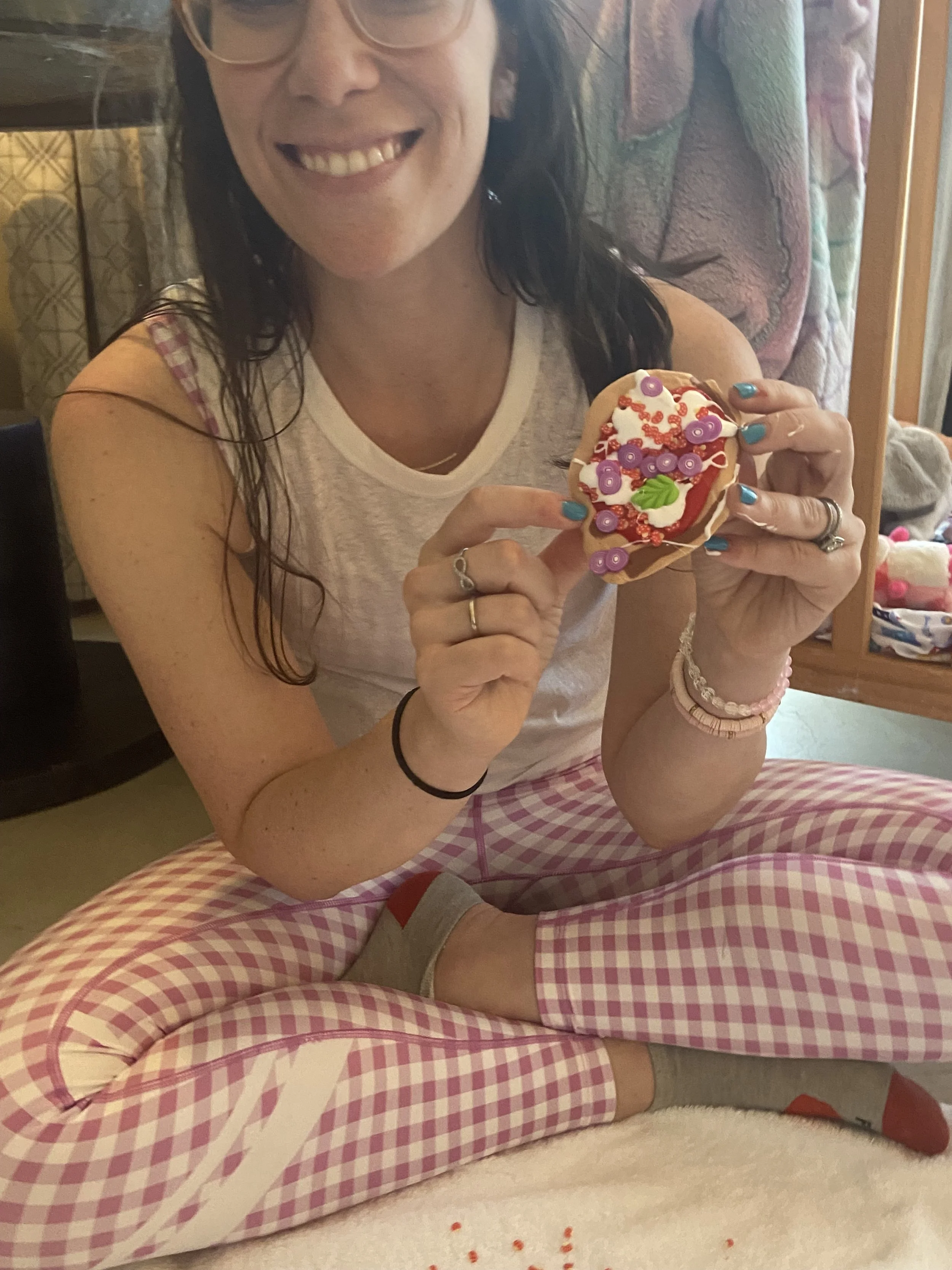 Eventually Tzvi came back from the pool and we all got ready for yuntev. I should add that Tzvi got extremely burnt at the pool, to the surprise of no one. Tzvi is very much a hypochondriac, and if he finds one strange ache or pain he’s telling everyone he’s worried that he has MS or some rare cancer, but when it comes to the one disease he can actually prevent (skin cancer), he’d rather lay in the sun for hours.