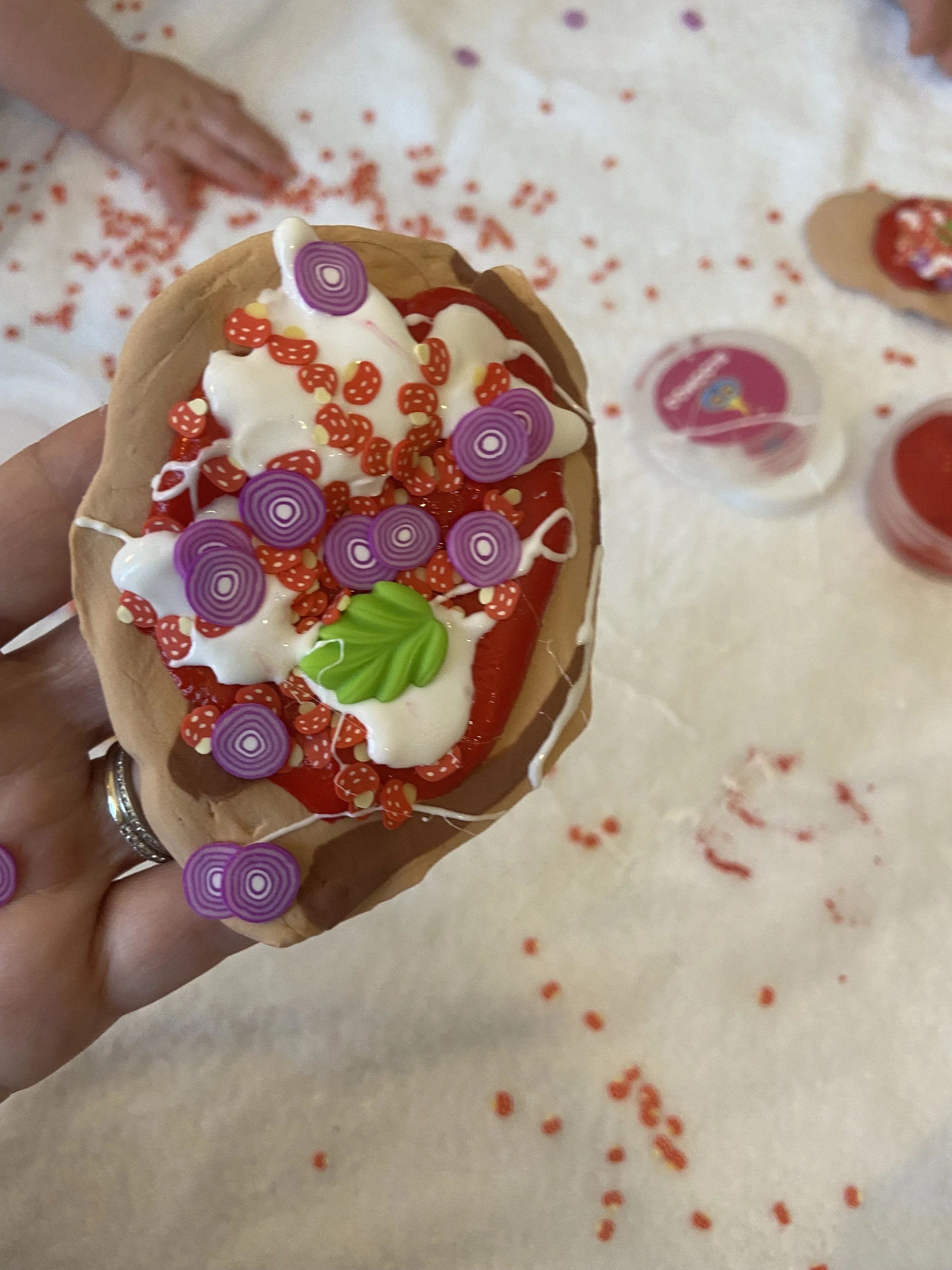Back in the room the kids played with their matzoh pizza slime that we had brought, and we definitely ruined one of the hotel towels.