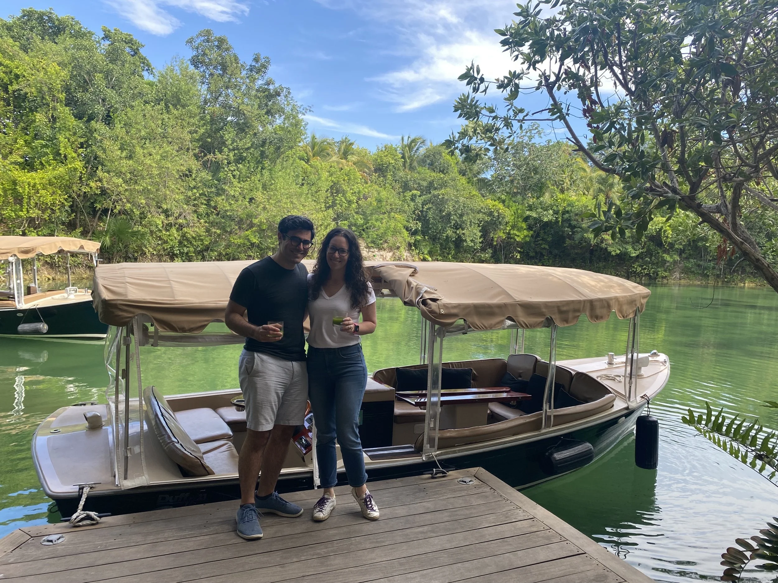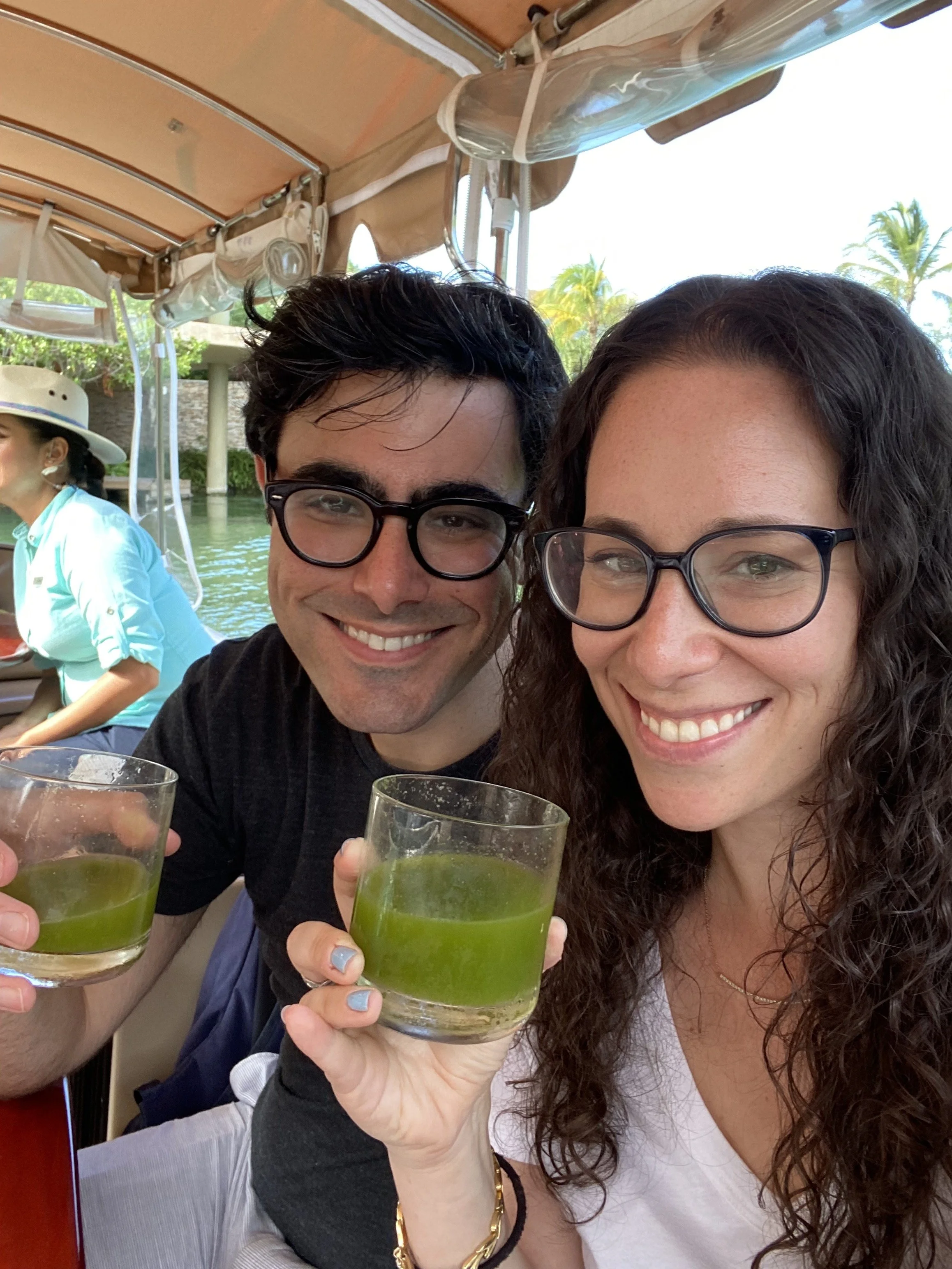 We pulled in to the resort and were so happy to be back. As soon as we stepped out the car there was a woman standing there with a tray of green drinks (with tequila) waiting for us.. We checked in, met our butler Lili and trainee butler Gabby, and together we took our boat ride to our suite!