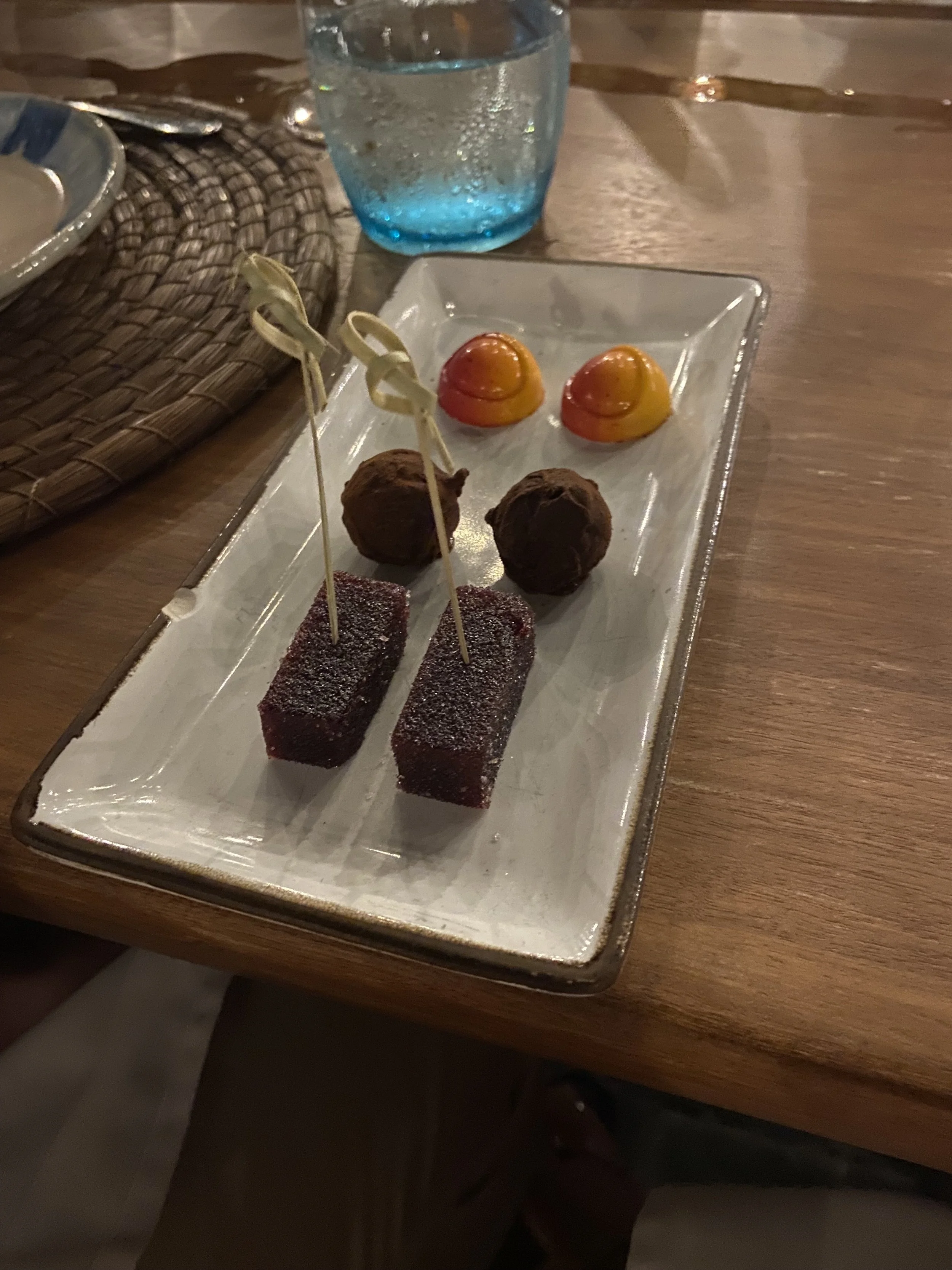 It was after midnight when we finally said goodnight and headed back to our room. When we walked in we saw that they left a few truffles as a parting gift after dinner. I also found that I had gotten multiple bug bites, including two on my face (is Zika still a thing?), but otherwise I’d say we’re off to a great start!