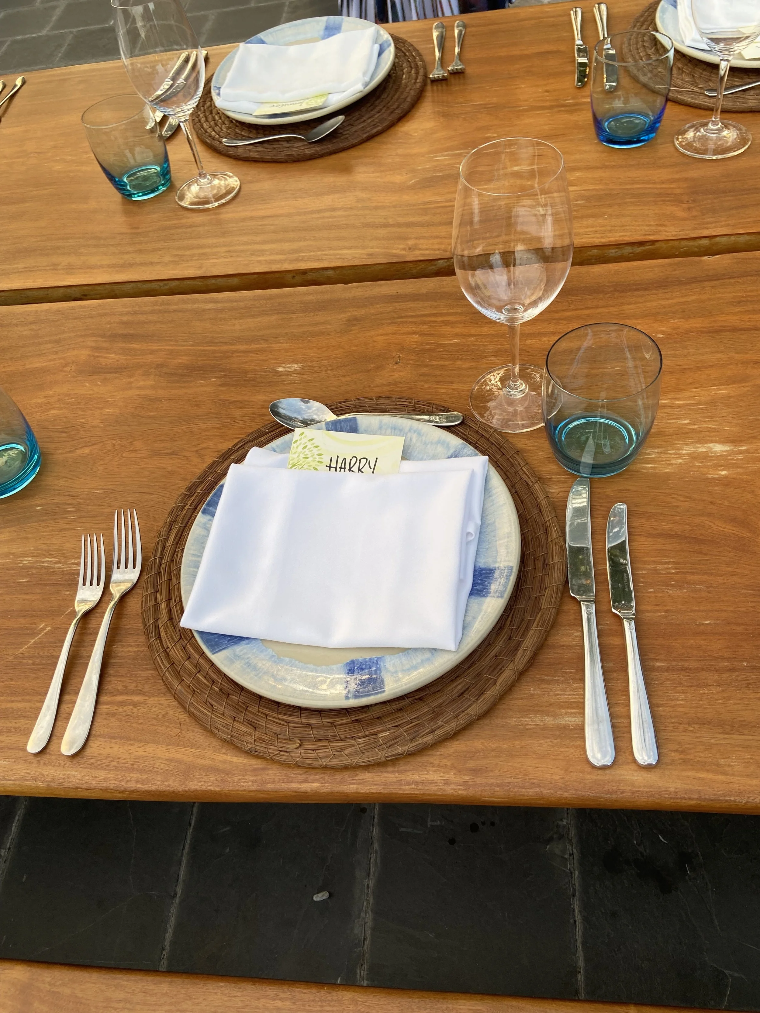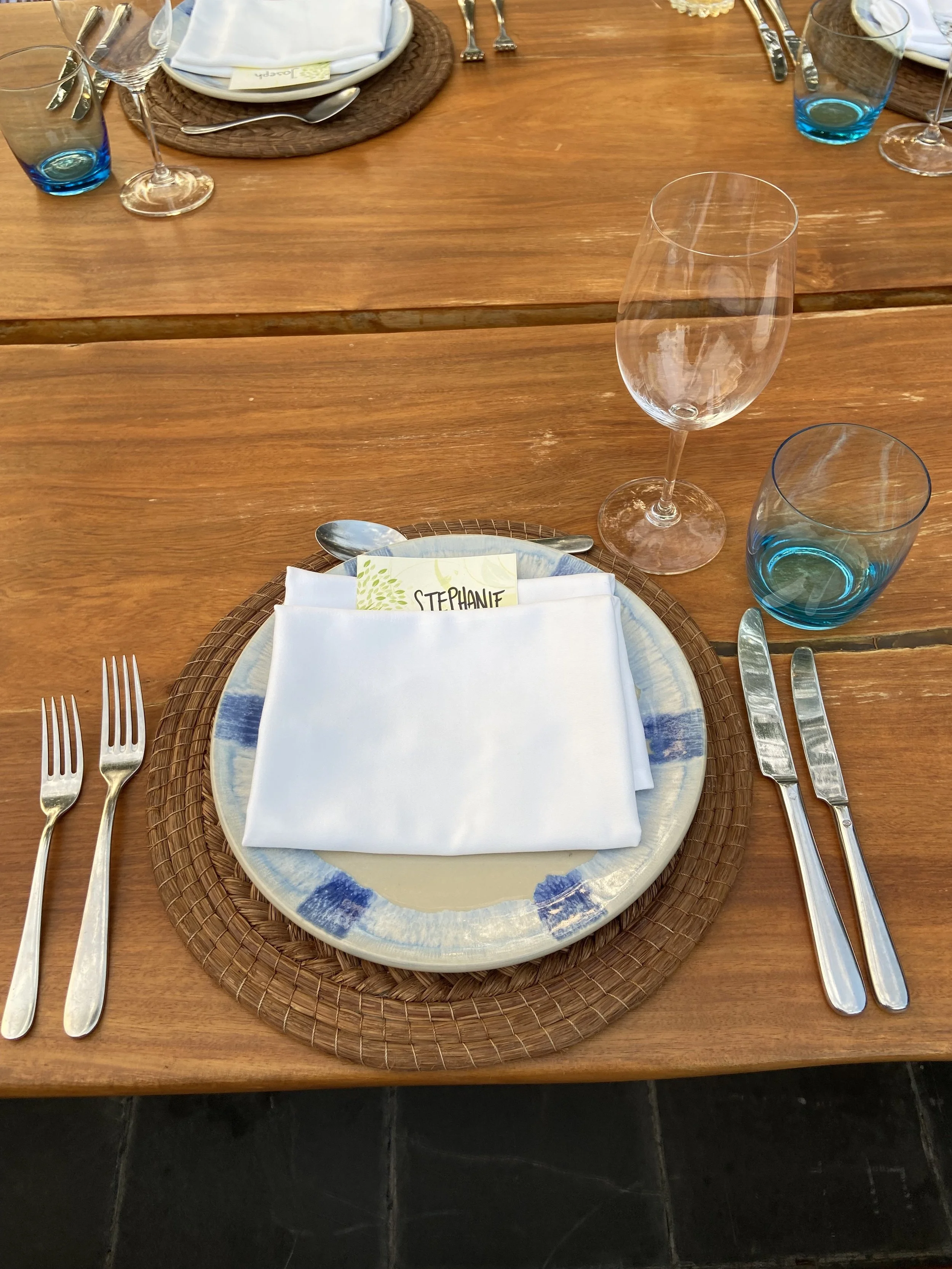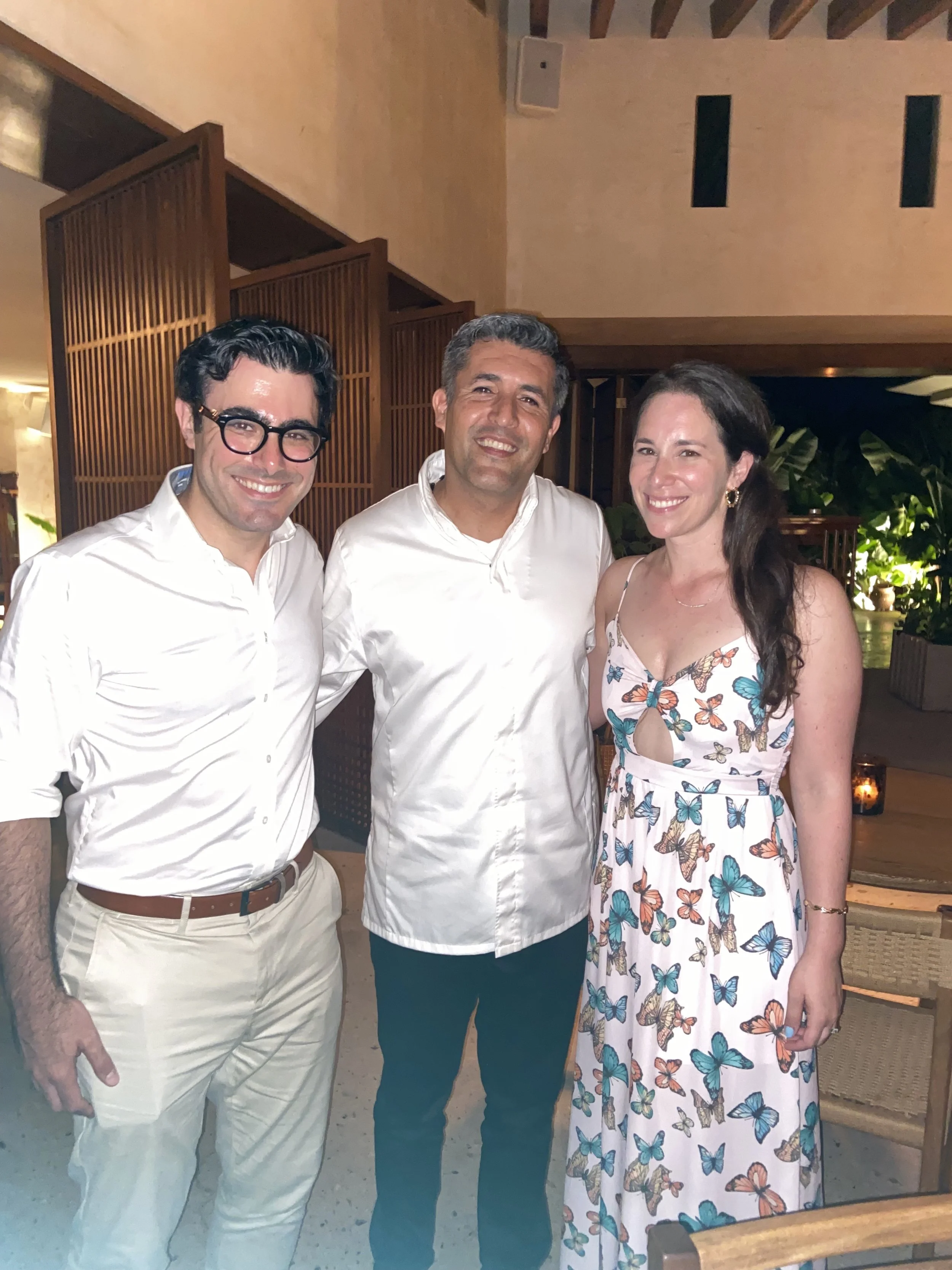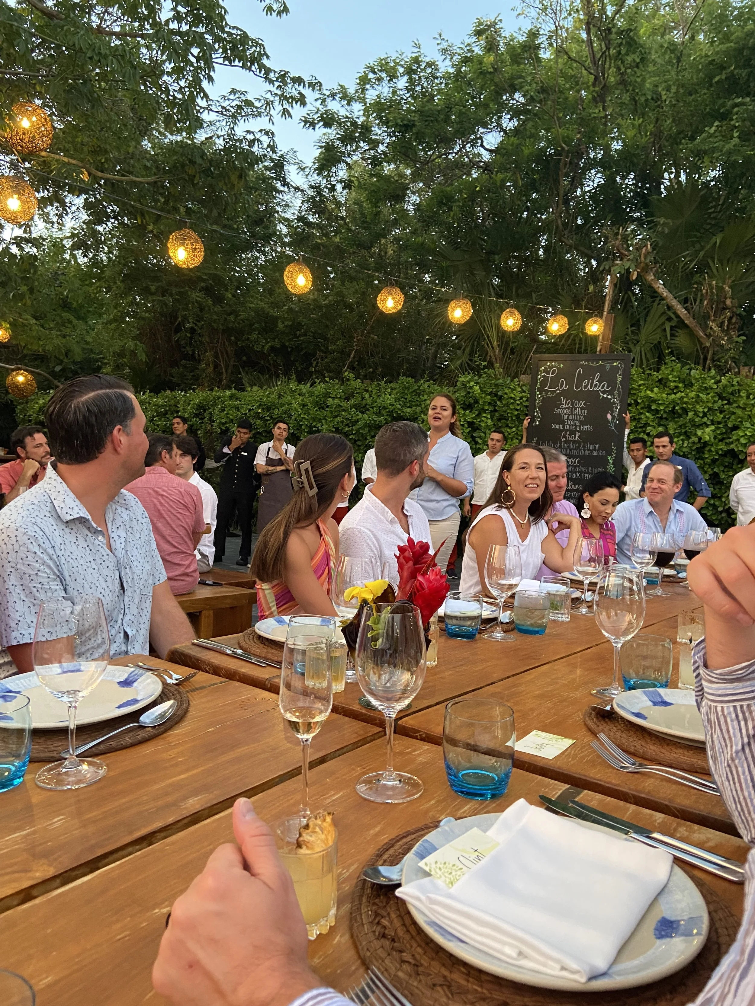 We ate a lot of guac and then someone announced that it was time to be seated and that everyone should find their seats. We walked over to the long tables and found that every plate had a name on it. We found ours and sat down. Turns out we were seated across from the couple from Michigan. To our right we met a foursome from Texas – two brothers and their wives. On Tzvi’s left the card said “Juan Pablo” and even before he sat down Tzvi knew that was the head chef of the hotel (I think he’s pretty well known in Mexico and often featured on the hotel’s Instagram). To his left was a lovely family from Liverpool – mum and dad, two brothers and their girlfriends, one of whom was an actual model. As the night went on we spoke to everyone. Everyone does something interesting and impressive and are in big industries like steel and oil. And then there’s us.