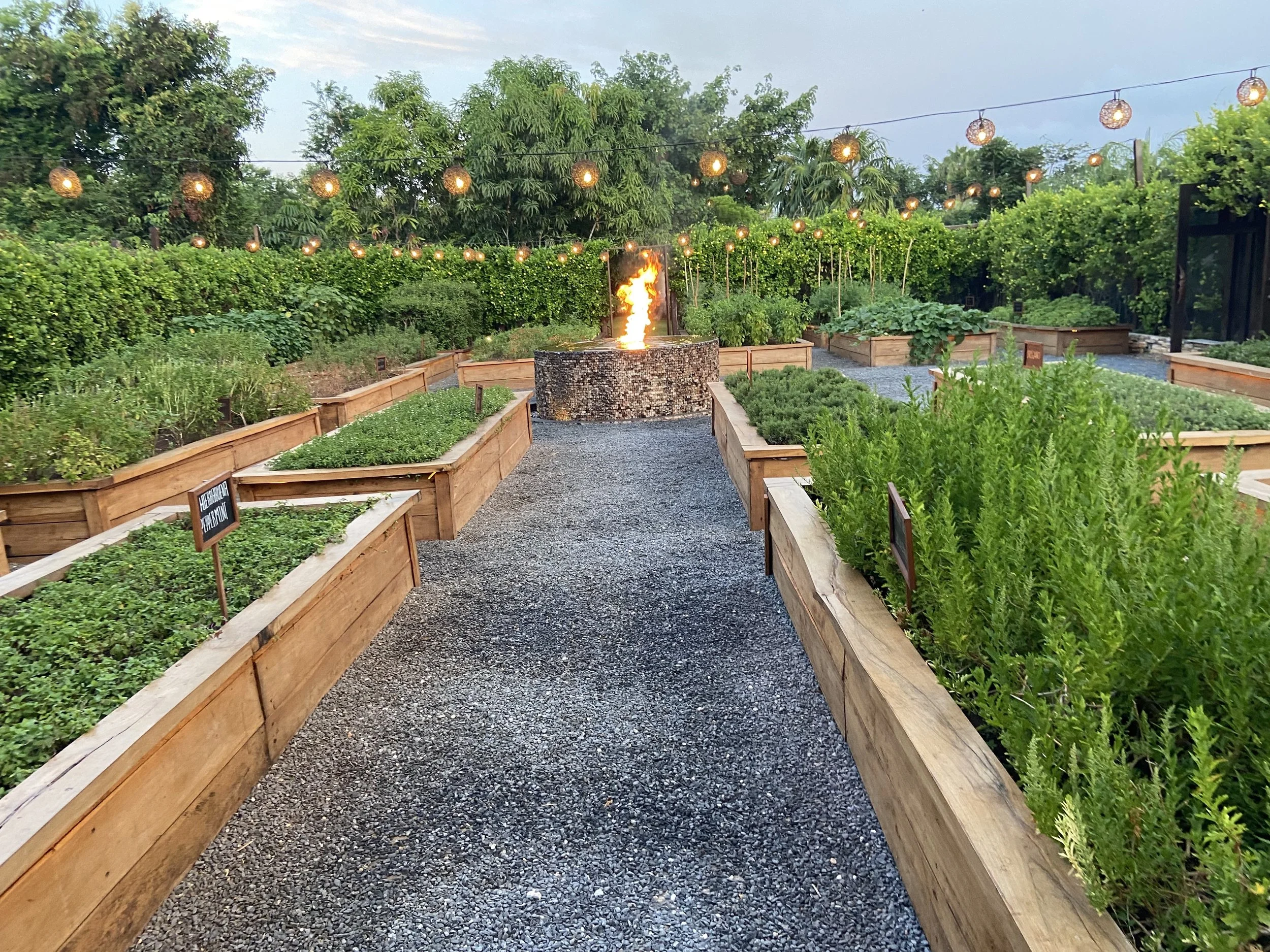 When we arrived, we checked in and were handed tequila cocktails. There was a large fire at the entrance, just for drama. Then you walk through the rows of herbs and find two long tables set for dinner. There was a live band and several high tops where people were sitting eating chips and guac. There were people seated at all of the tables. We were torn between being nervous about being social and really wanting the guac, but ultimately the guac won, so we chose the table with the couple that looked youngest and inserted ourselves. They were seated talking to Nacho, who is the Guest Relations Manager of the hotel. They were from Michigan and were very nice.