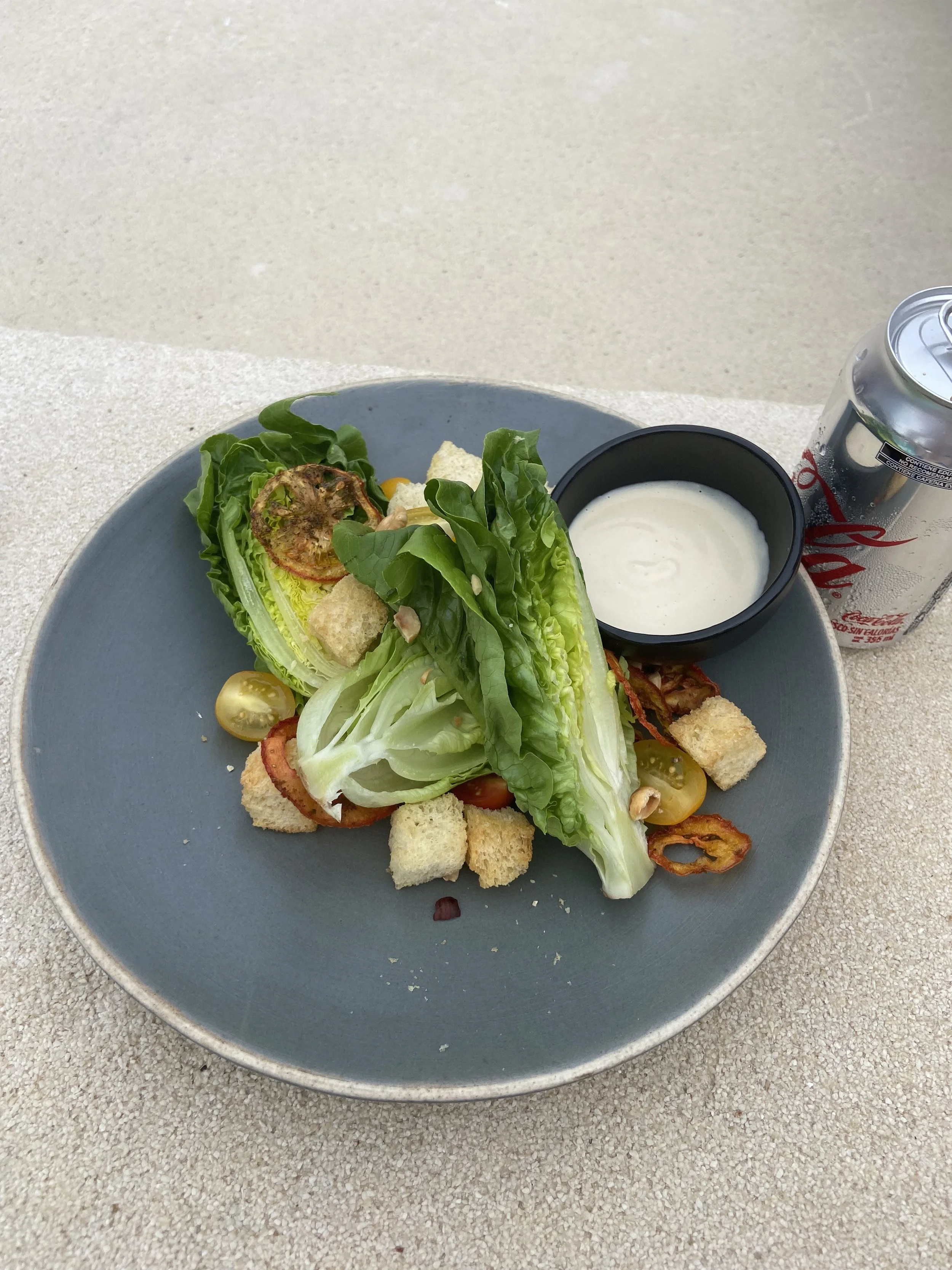For lunch I had a Caesar salad with hazelnuts and Tzvi had the fish burrito. It smelled fishy but Tzvi really liked it.