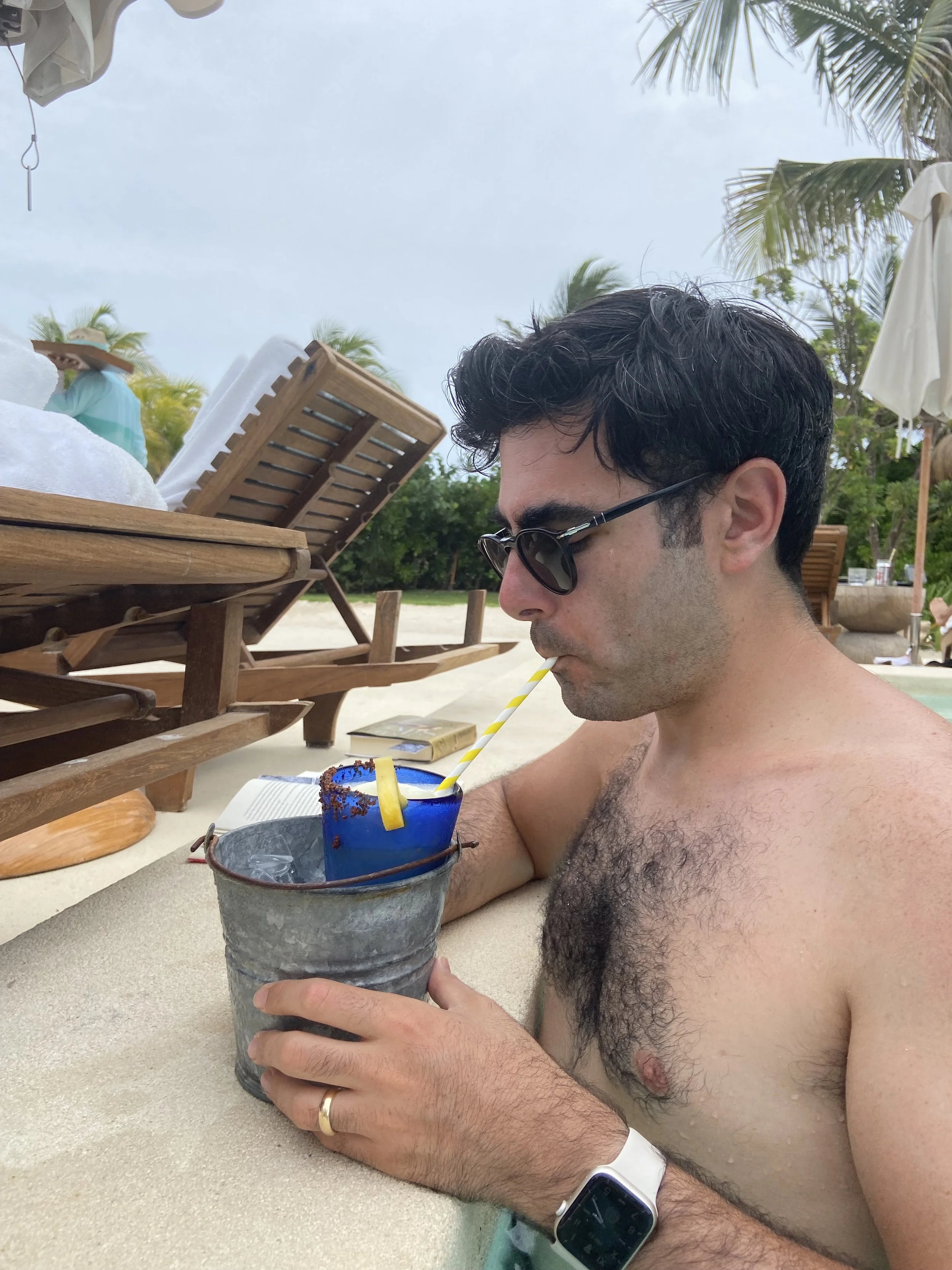 We sat at the pool, had lunch, got drinks. I had a mudslide that was basically a milkshake with vodka, and Tzvi had a frozen margarita that came in tin bucket filled with ice. We spent a lot of time reading in the pool. The water was so nice and it was so hot out, I think we were in the pool for hours.