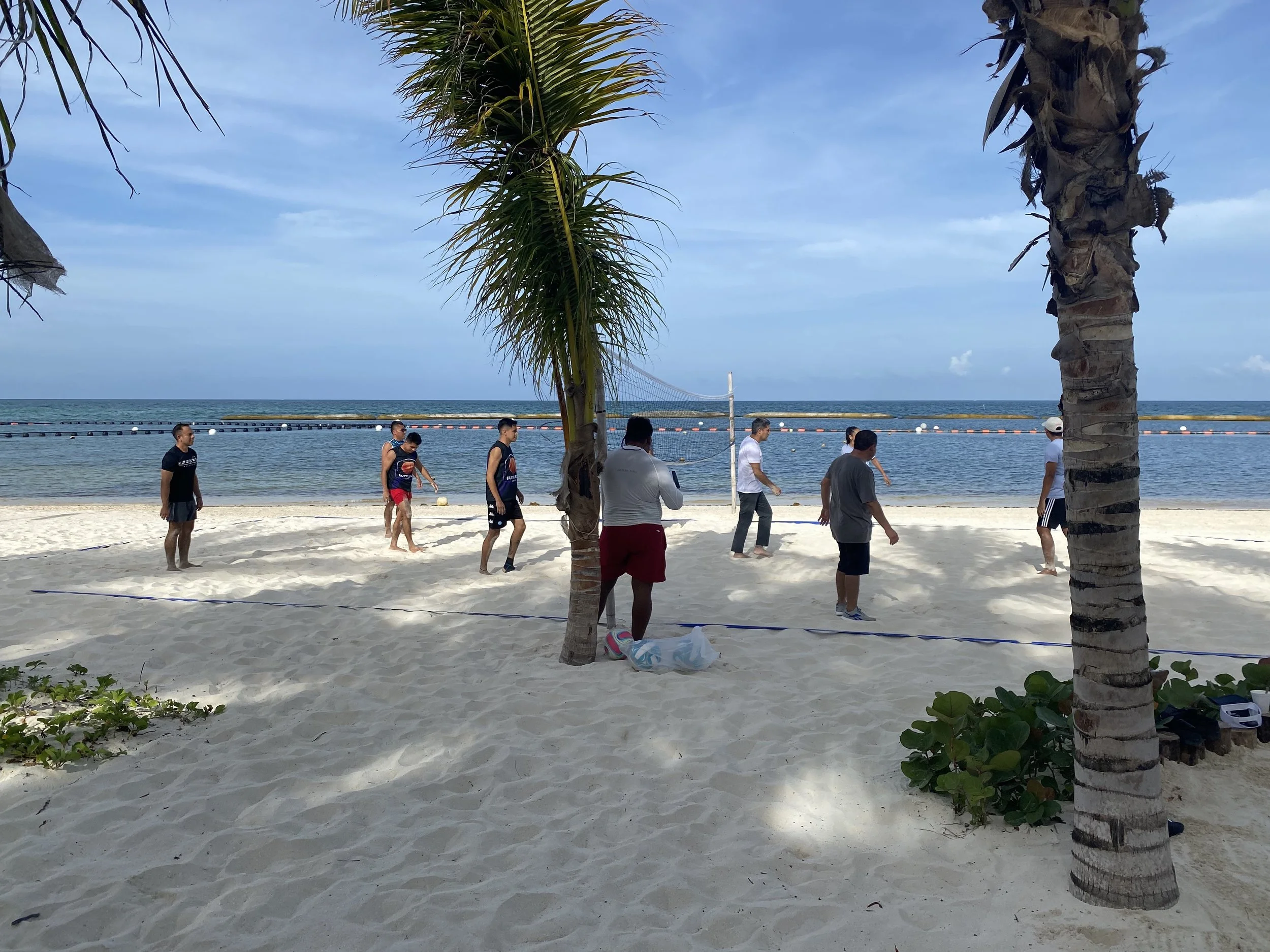 Towards the end of the day we saw a bunch of the staff members heading down to the beach, and a bunch of them were in matching shirts. Then we heard cheering, so we went to check it out. Turns out they were having a staff volleyball game so we sat and watched. It was Executives and Food and Beverage vs. Butlers and Lobby/Front staff. It was fun to watch. I’m not sure who won.