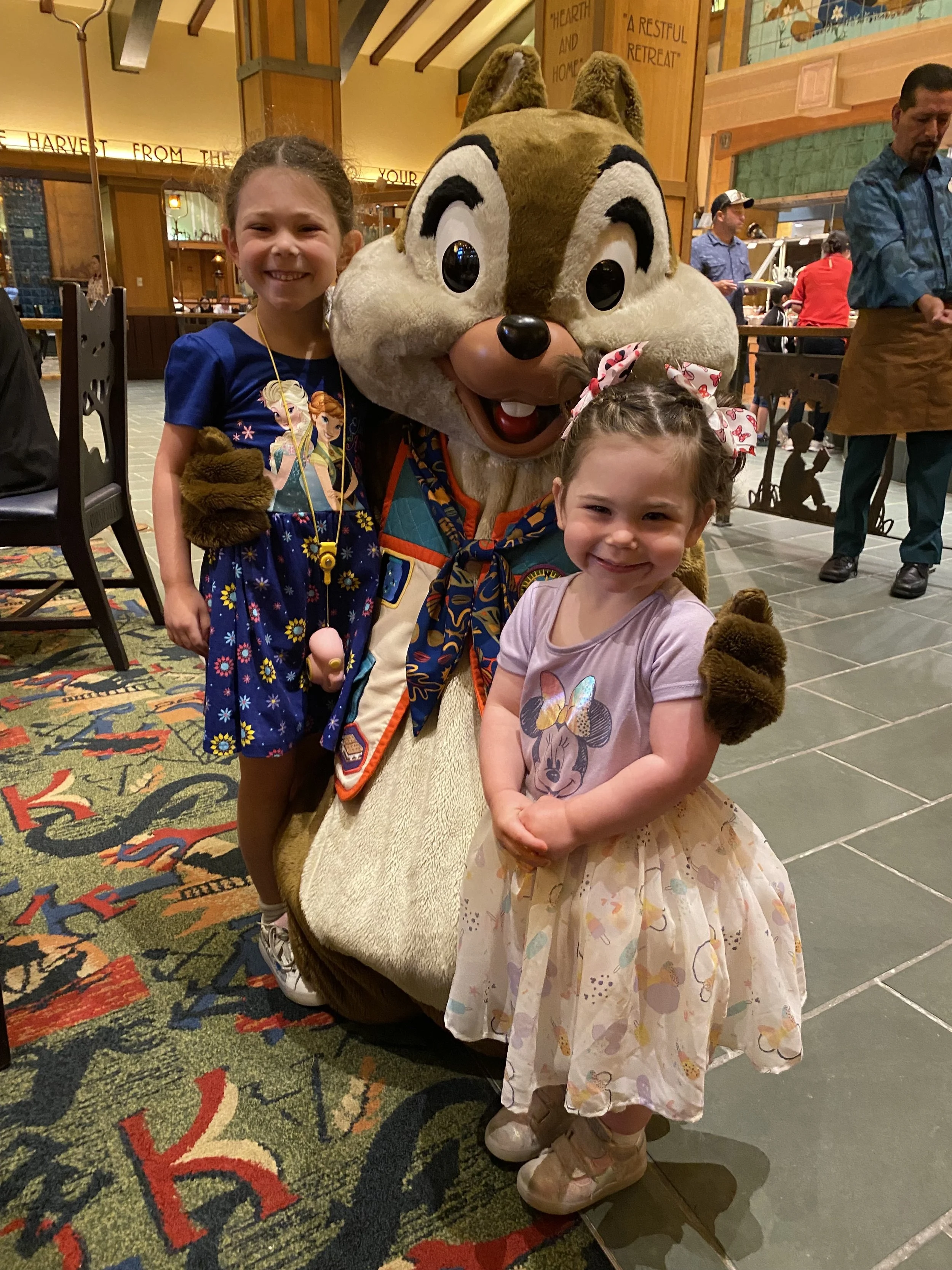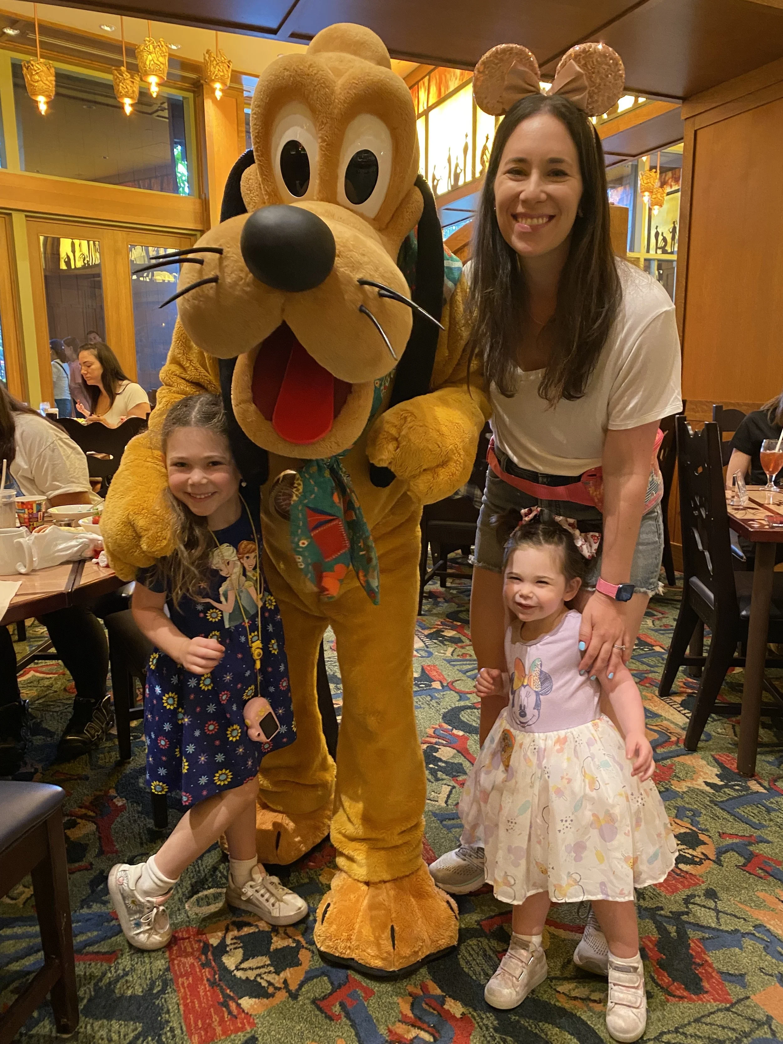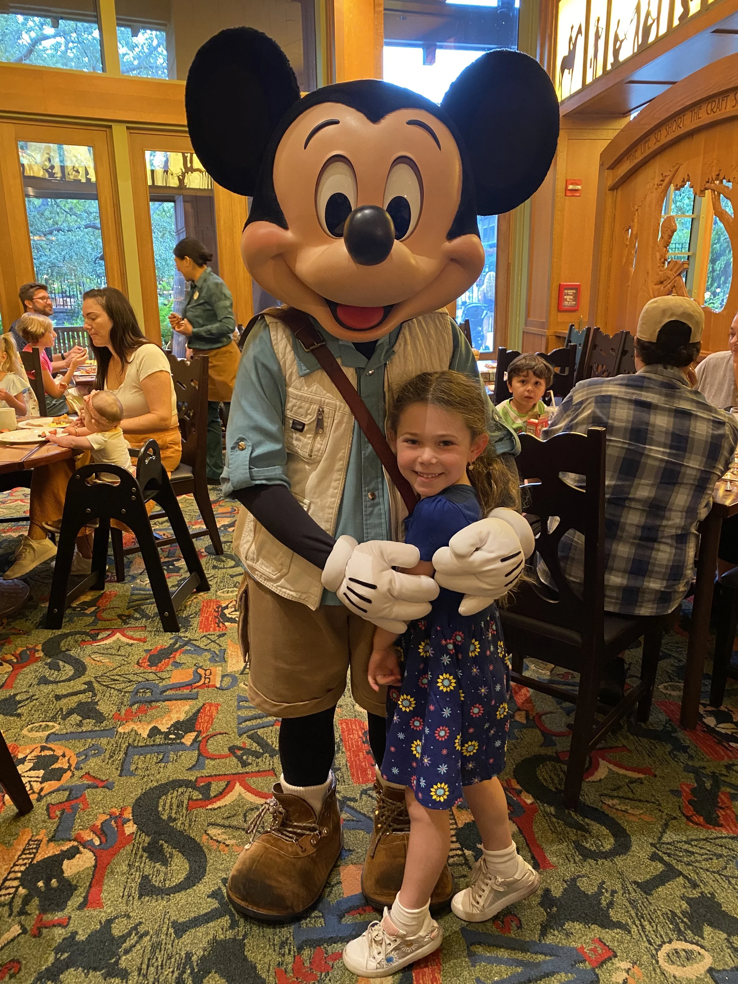 We got dressed and headed to our character breakfast, which was downstairs in Storyteller’s Café and features Mickey, Minnie, Pluto, Chip and Dale. It was so great. The girls had the best time. When Madeleine saw Minnie she was so so happy, as was Hallie. And now we don’t need to deal with any characters in the park. So, mission accomplished. Also, breakfast was good, but the best thing was the Mickey waffle as usual. I don’t know, it’s just always the best.
