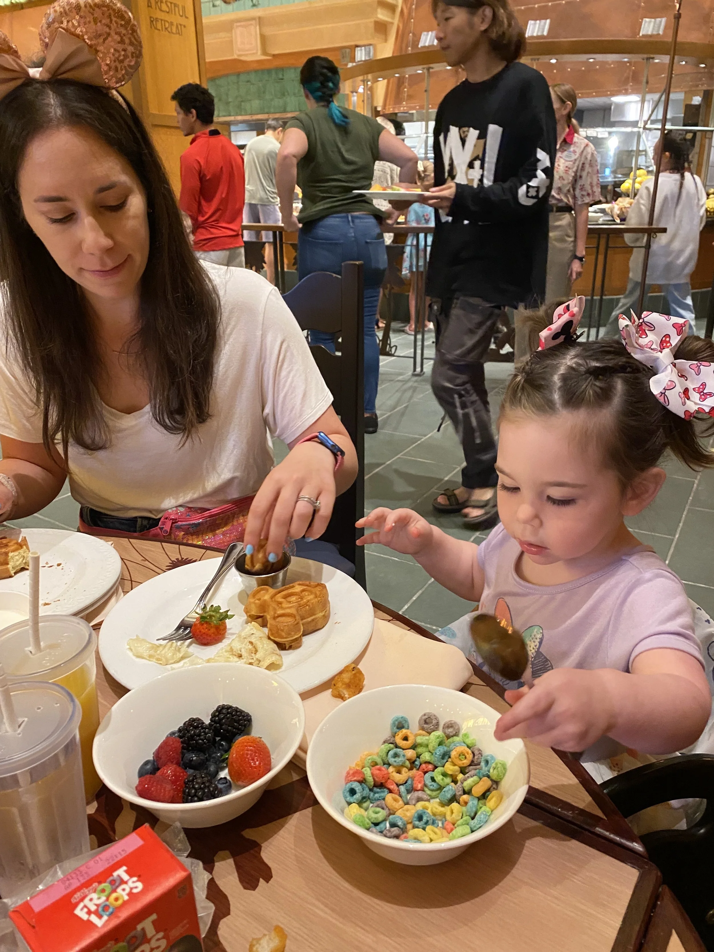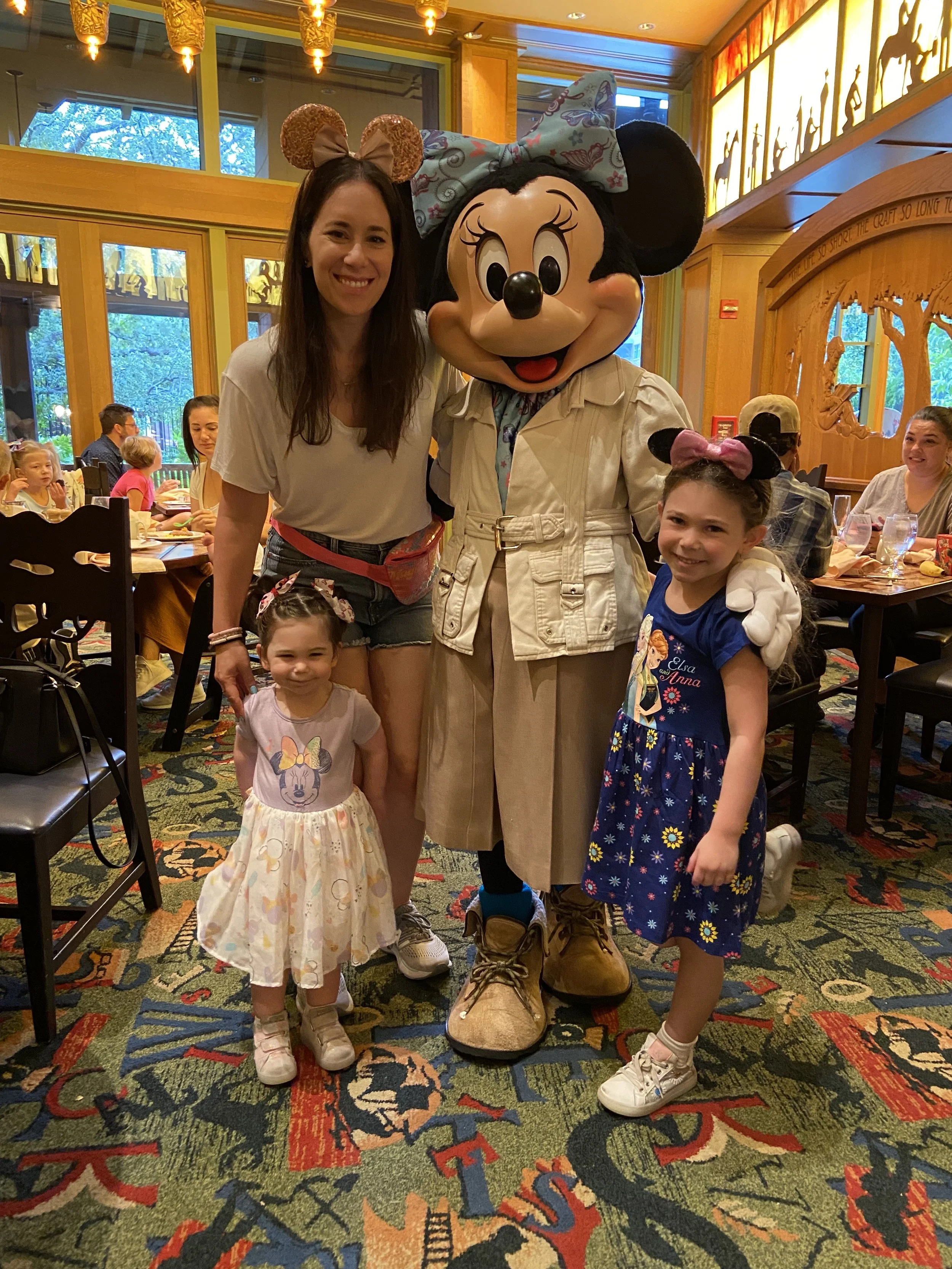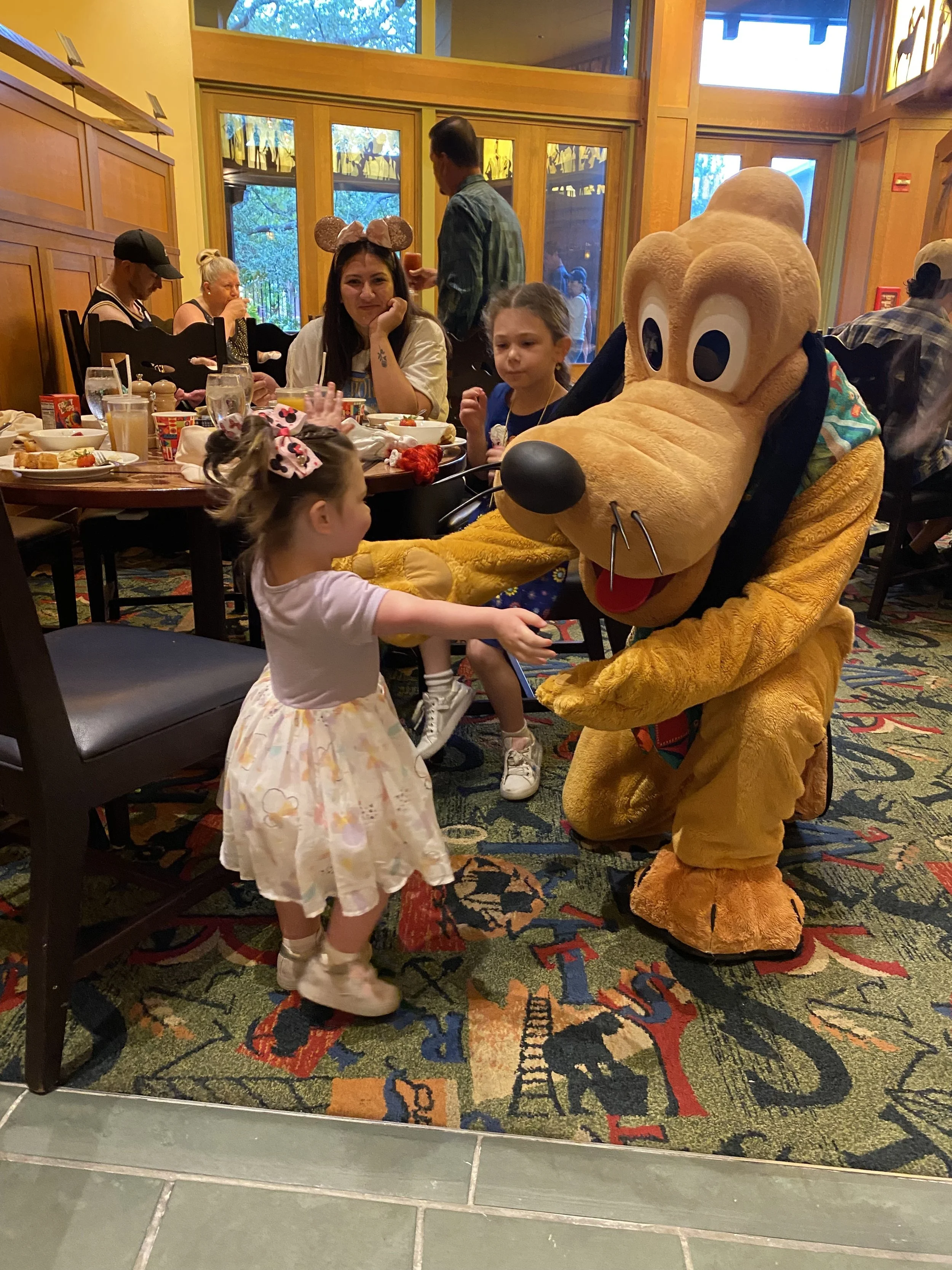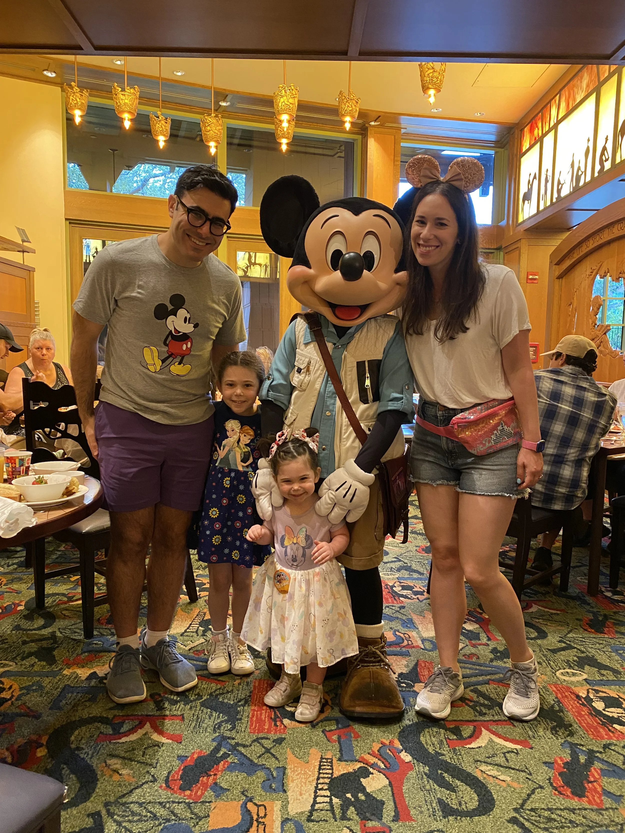 We got dressed and headed to our character breakfast, which was downstairs in Storyteller’s Café and features Mickey, Minnie, Pluto, Chip and Dale. It was so great. The girls had the best time. When Madeleine saw Minnie she was so so happy, as was Hallie. And now we don’t need to deal with any characters in the park. So, mission accomplished. Also, breakfast was good, but the best thing was the Mickey waffle as usual. I don’t know, it’s just always the best.