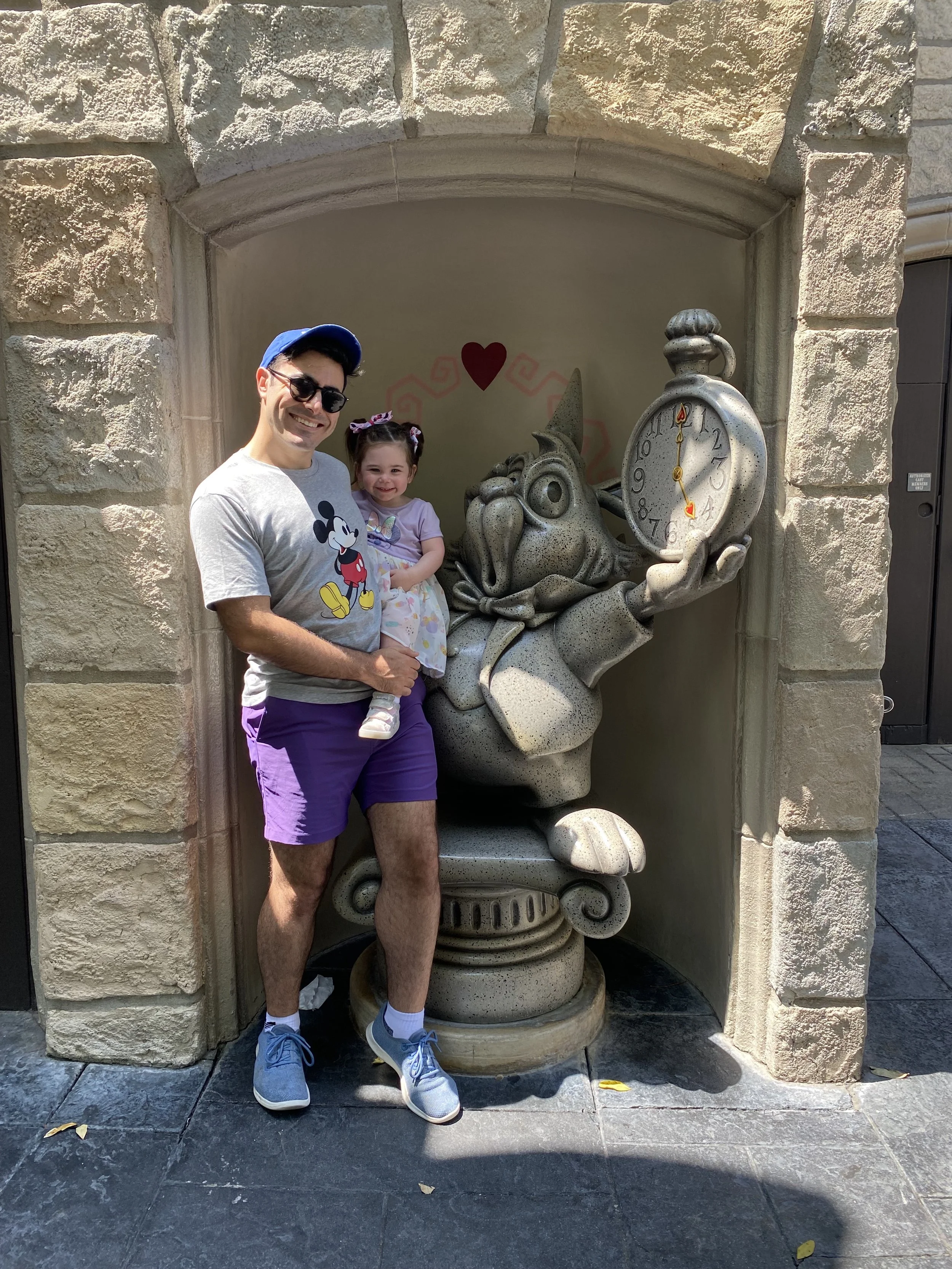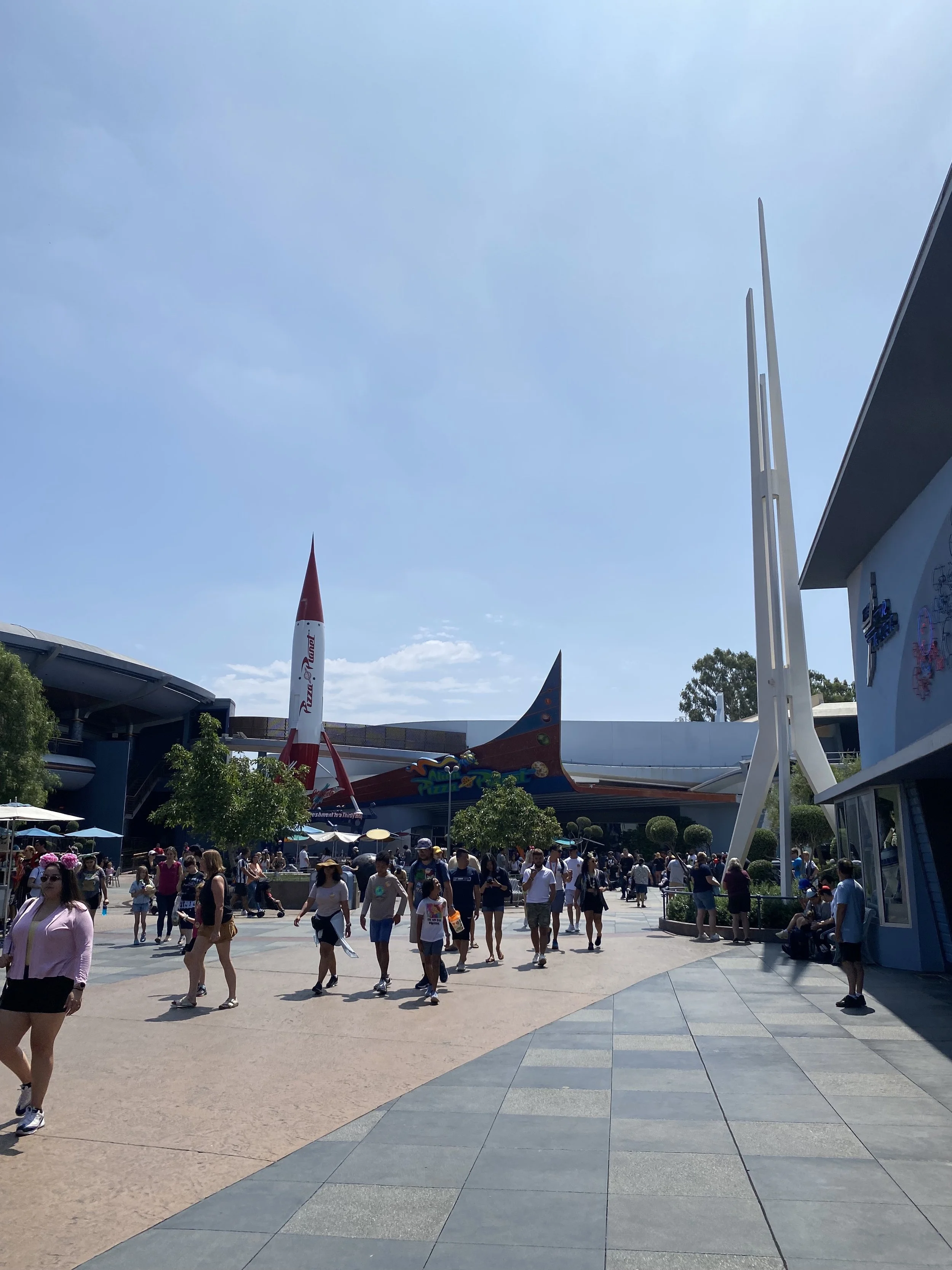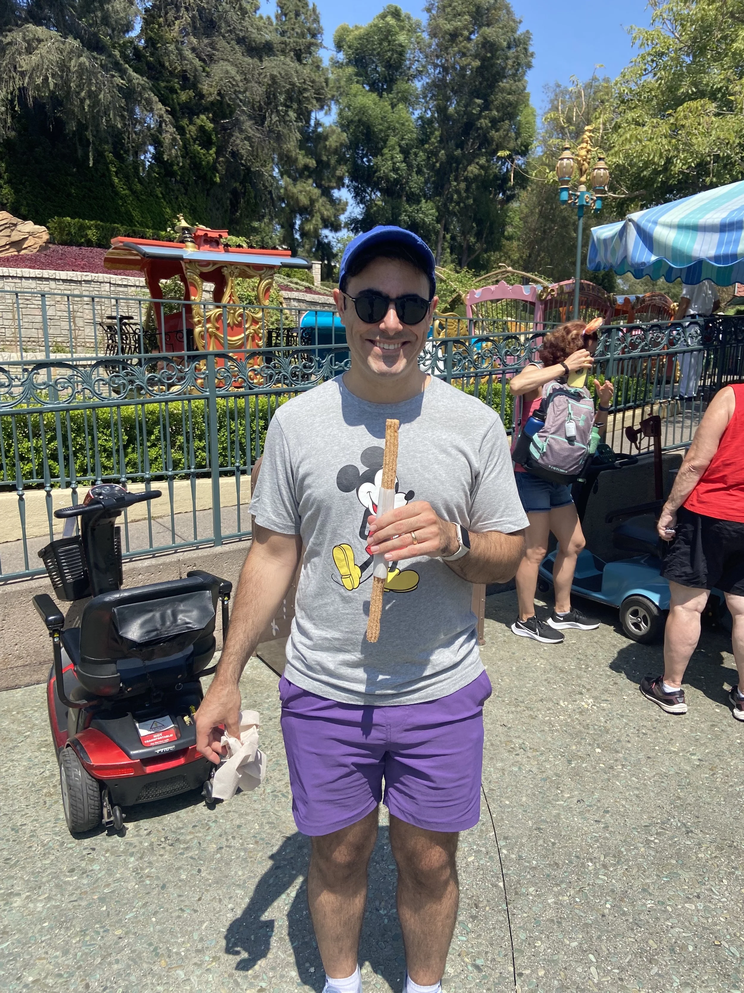 Finally it was time to head into the park. We went into Disneyland and were engulfed in magic. The first thing we actually did was get a picture in front of the castle. We have Genie + which is where you pay extra to be able to book the fast passes to skip lines for rides, which used to be free. At least in Disneyland you also get all of your professional photos with Genie +, which is nice, because in Disney World you don’t. Pro tip – whenever you take photos you need to show your QR code from the Disney app so the photographer can scan it. There’s no Disney app for Apple Watch, but in about 30 seconds Tzvi managed to screenshot the QR code and turn it into a watch face, so every time we took photos they just scanned my watch. Cool.