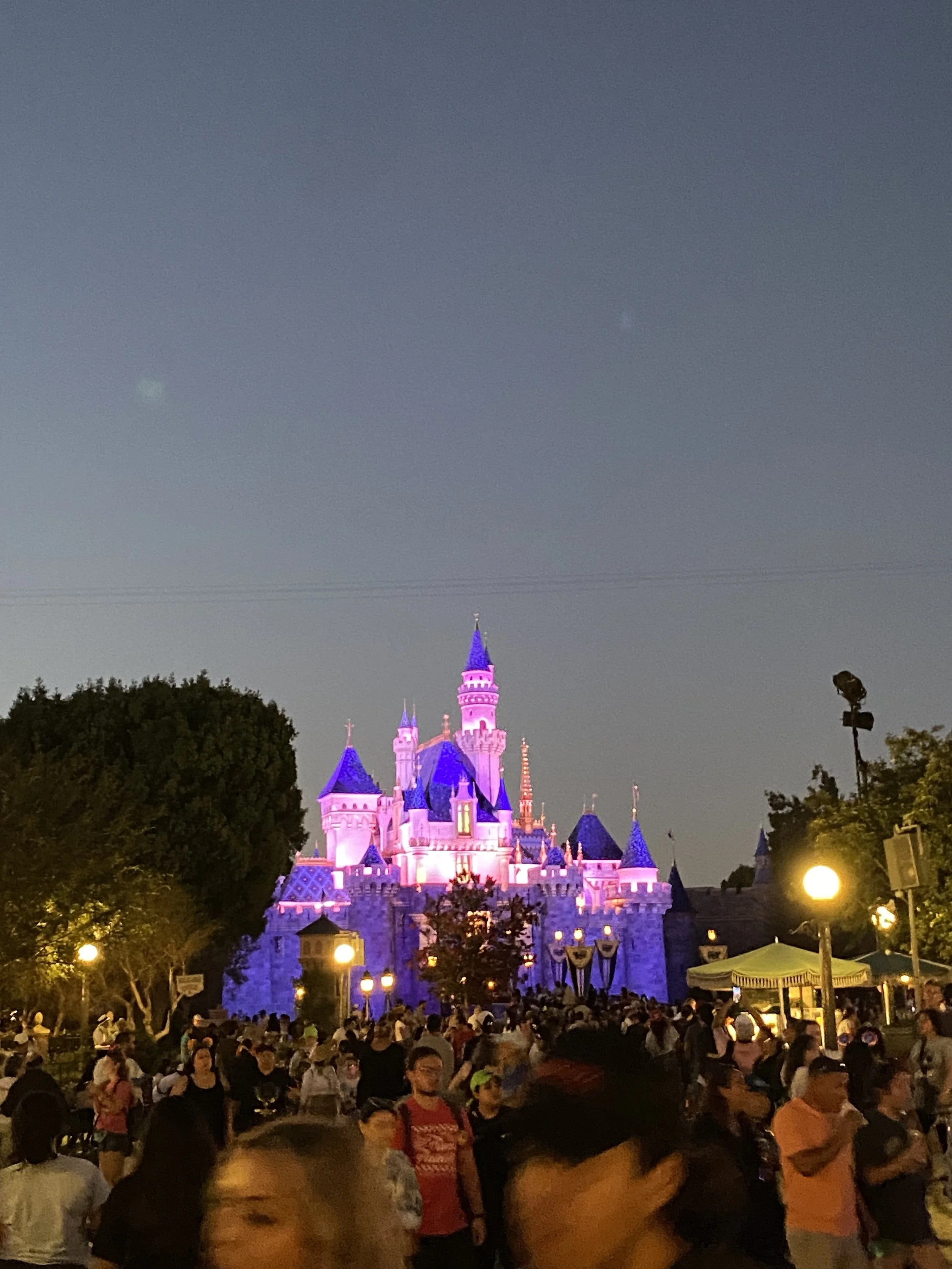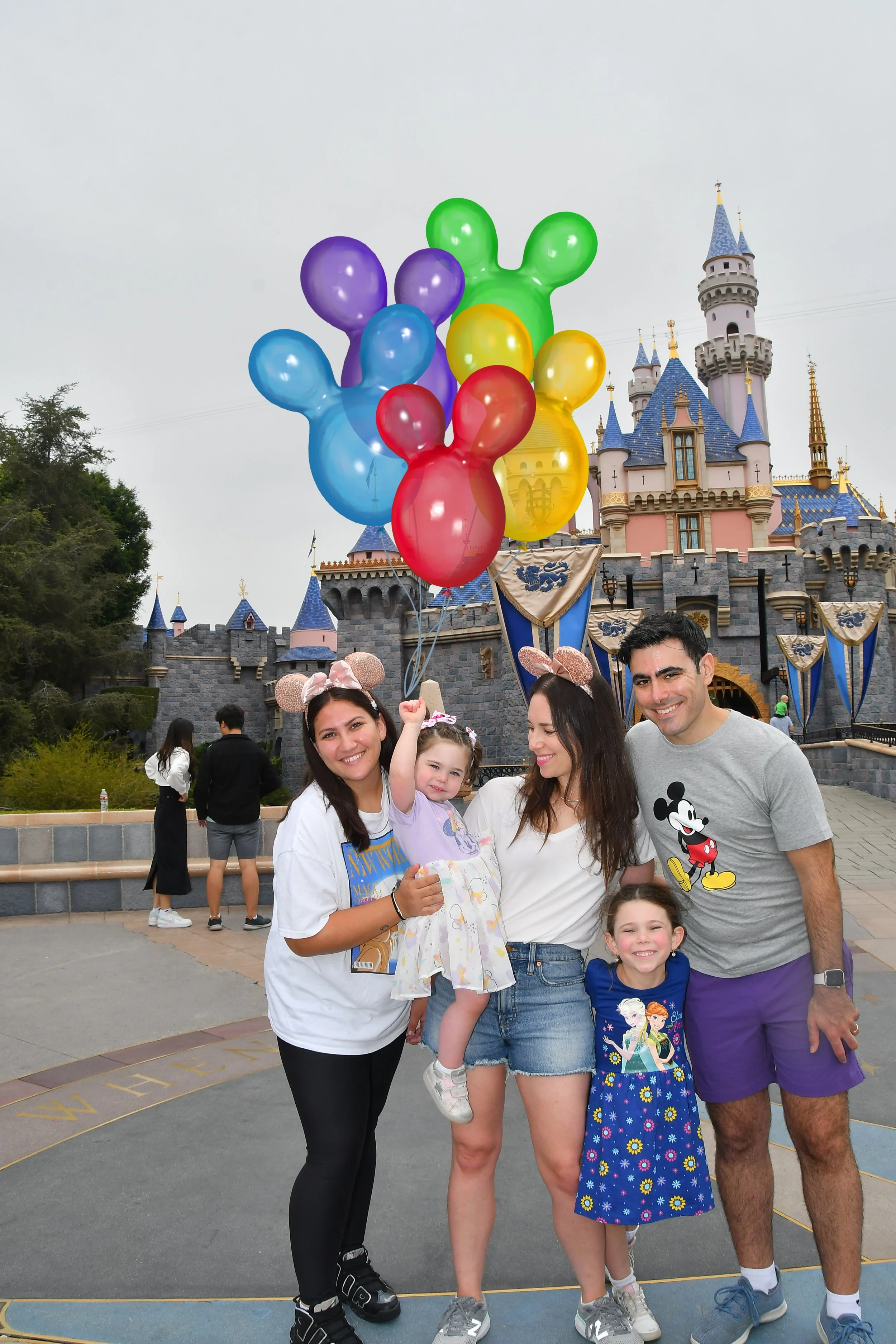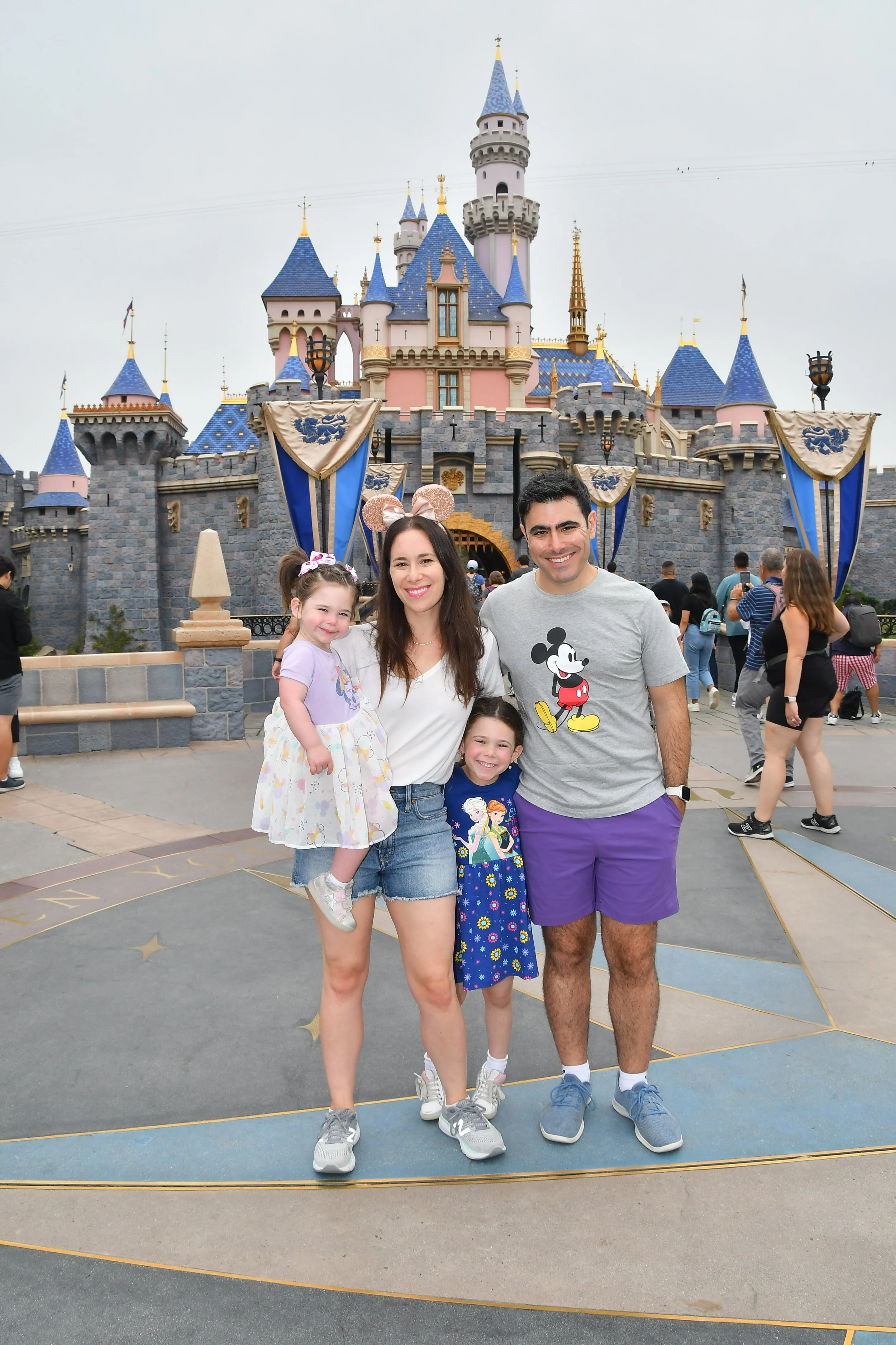 Finally it was time to head into the park. We went into Disneyland and were engulfed in magic. The first thing we actually did was get a picture in front of the castle. We have Genie + which is where you pay extra to be able to book the fast passes to skip lines for rides, which used to be free. At least in Disneyland you also get all of your professional photos with Genie +, which is nice, because in Disney World you don’t. Pro tip – whenever you take photos you need to show your QR code from the Disney app so the photographer can scan it. There’s no Disney app for Apple Watch, but in about 30 seconds Tzvi managed to screenshot the QR code and turn it into a watch face, so every time we took photos they just scanned my watch. Cool.