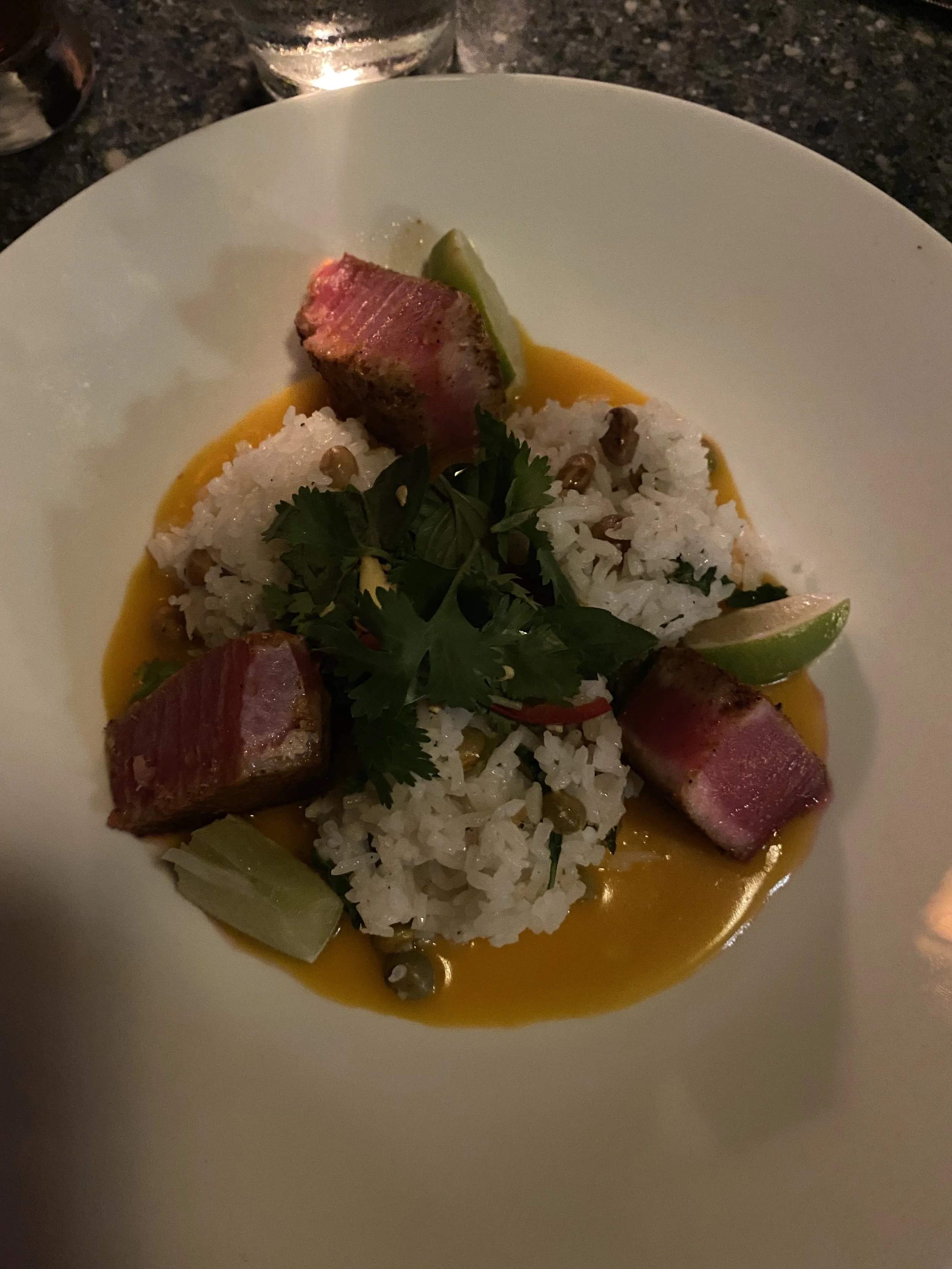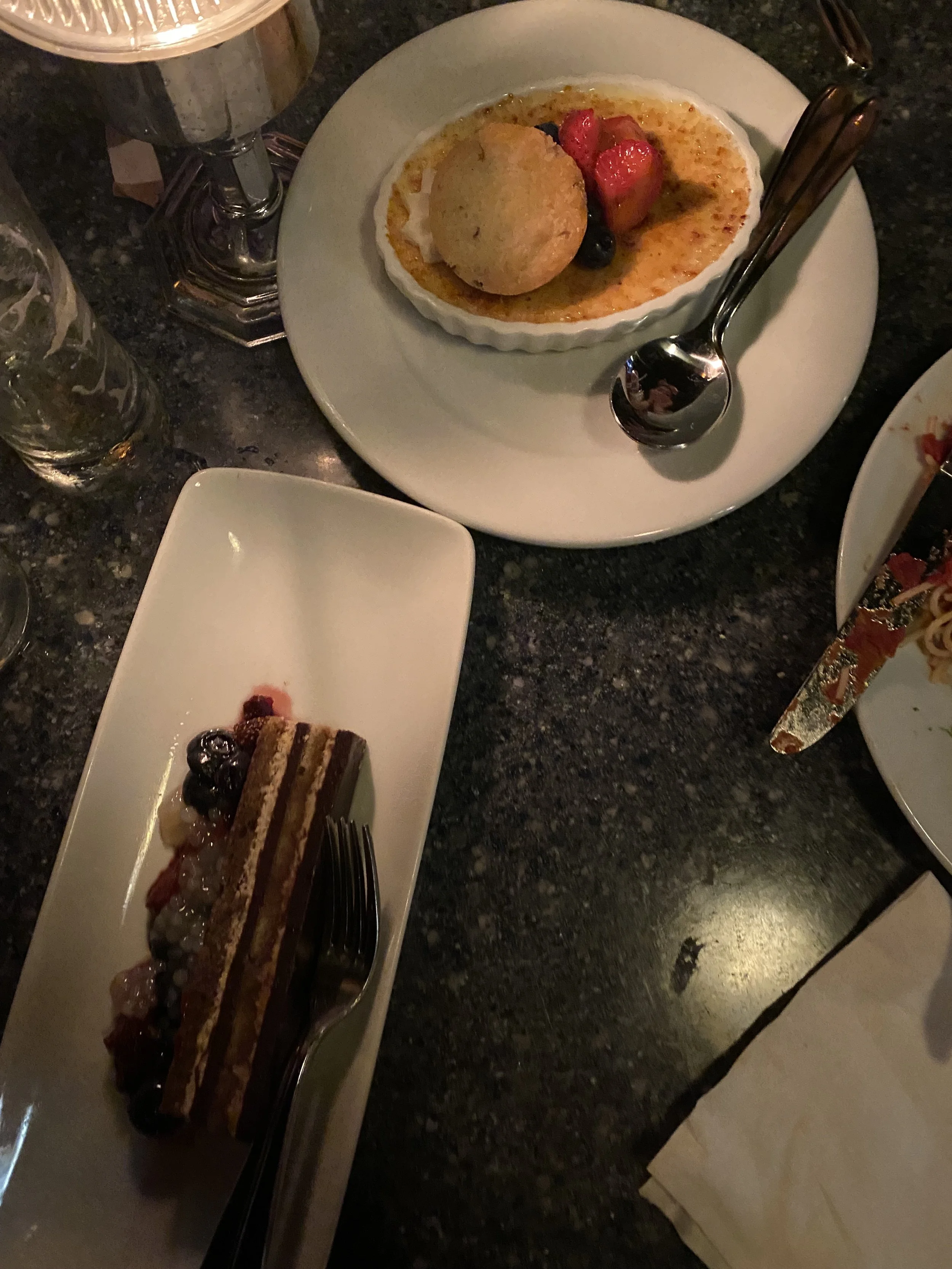 For dinner we had scheduled Blue Bayou, but our reservation wasn’t until 7pm and we weren’t going to last until then. So we went at 5pm and they ended up taking us pretty quickly. We shared a salad and we both had the seared tuna, which was delicious. There was nothing for Hallie so she ate strawberries, but she did have some tuna and liked it, which is a win. Madeleine had pasta with broccoli and liked it. For dessert we had crème brulé and chocolate cake, neither of which were that good, but I still love the Blue Bayou. Hallie and Tzvi were having an argument the whole time about whether the restaurant was inside or outside. (Blue Bayou is designed to look like you’re outside after dark on the porch of a house in New Orleans.) The restaurant just recently reopened after a months-long refurbishment, but the only thing different since the last time we were there is that they’ve gotten rid of the salmon.