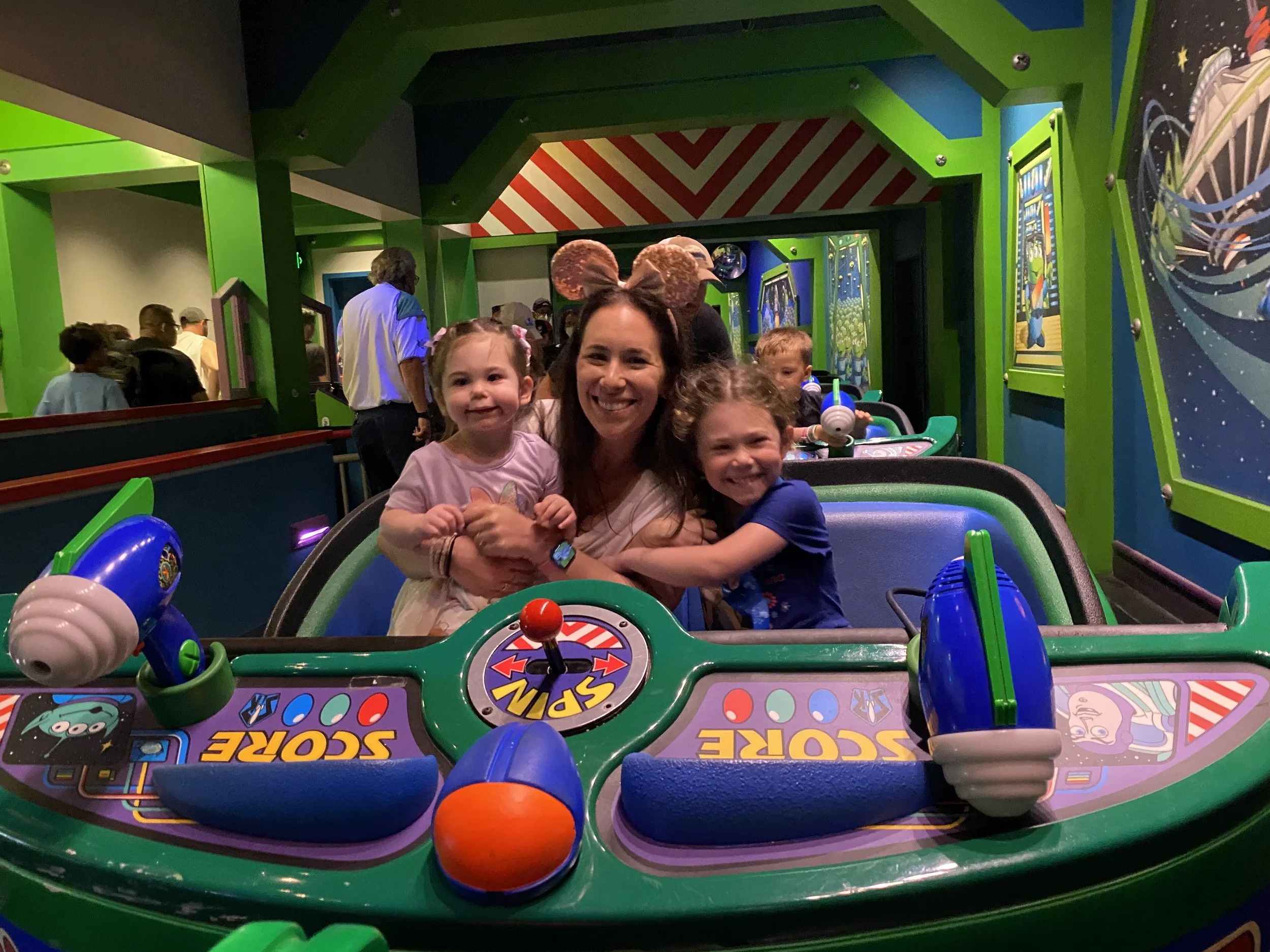 After lunch we rode Buzz Lightyear. With Madeleine on my lap I managed to score only 3100, which was not that much worse than Tzvi’s 4100. [Tzvi: There must’ve been something wrong with mine.] Robyn scored the highest at 40,000, but to be fair, she’s the only one with real weapons training.