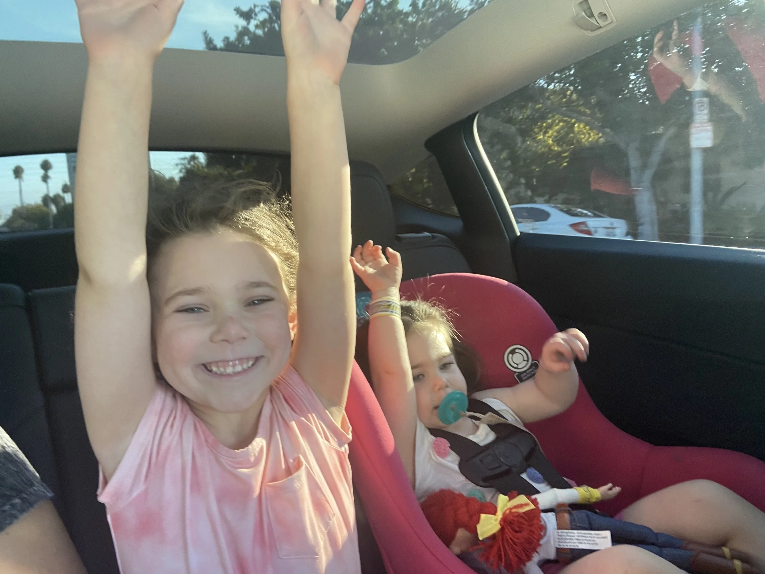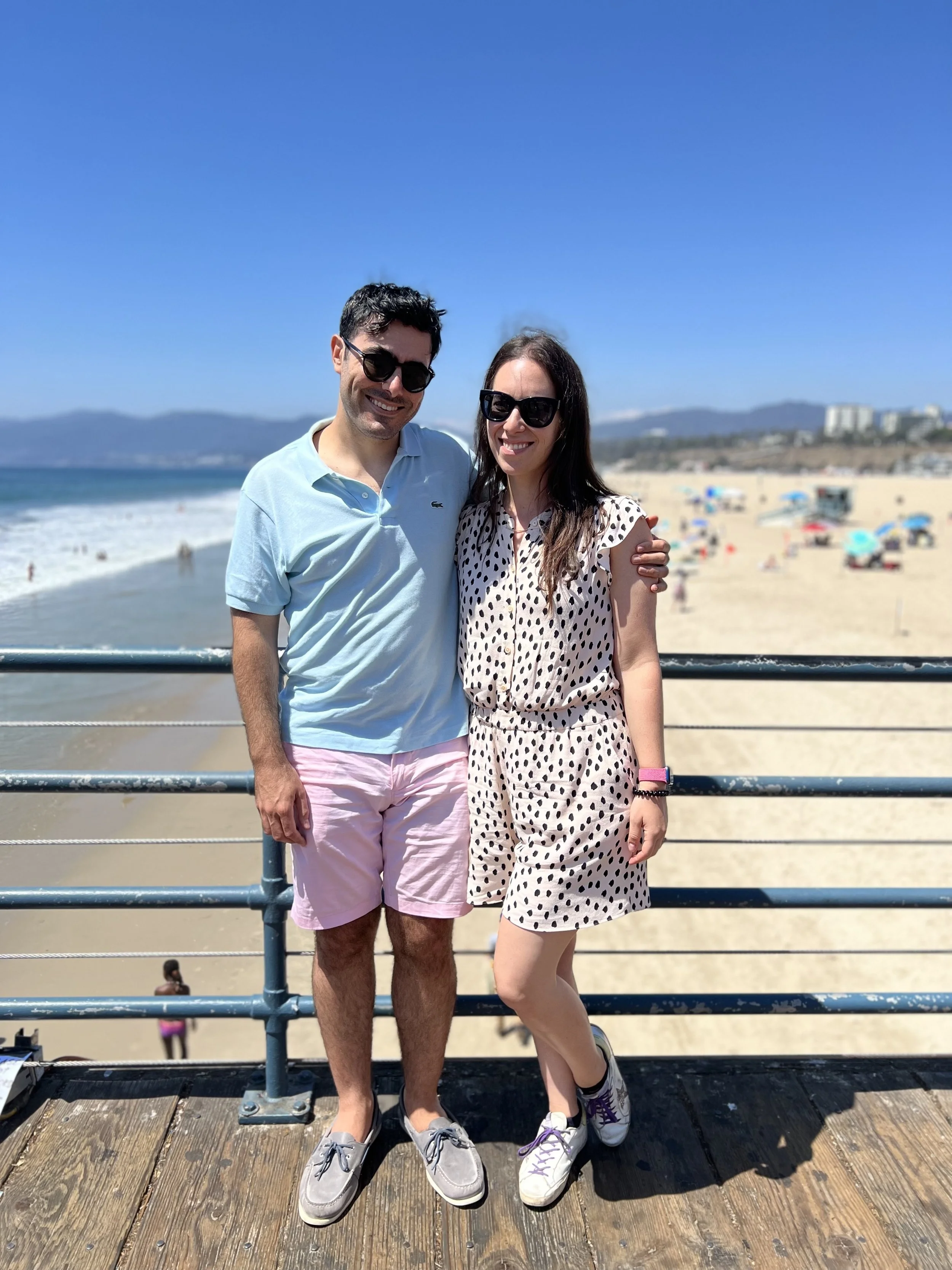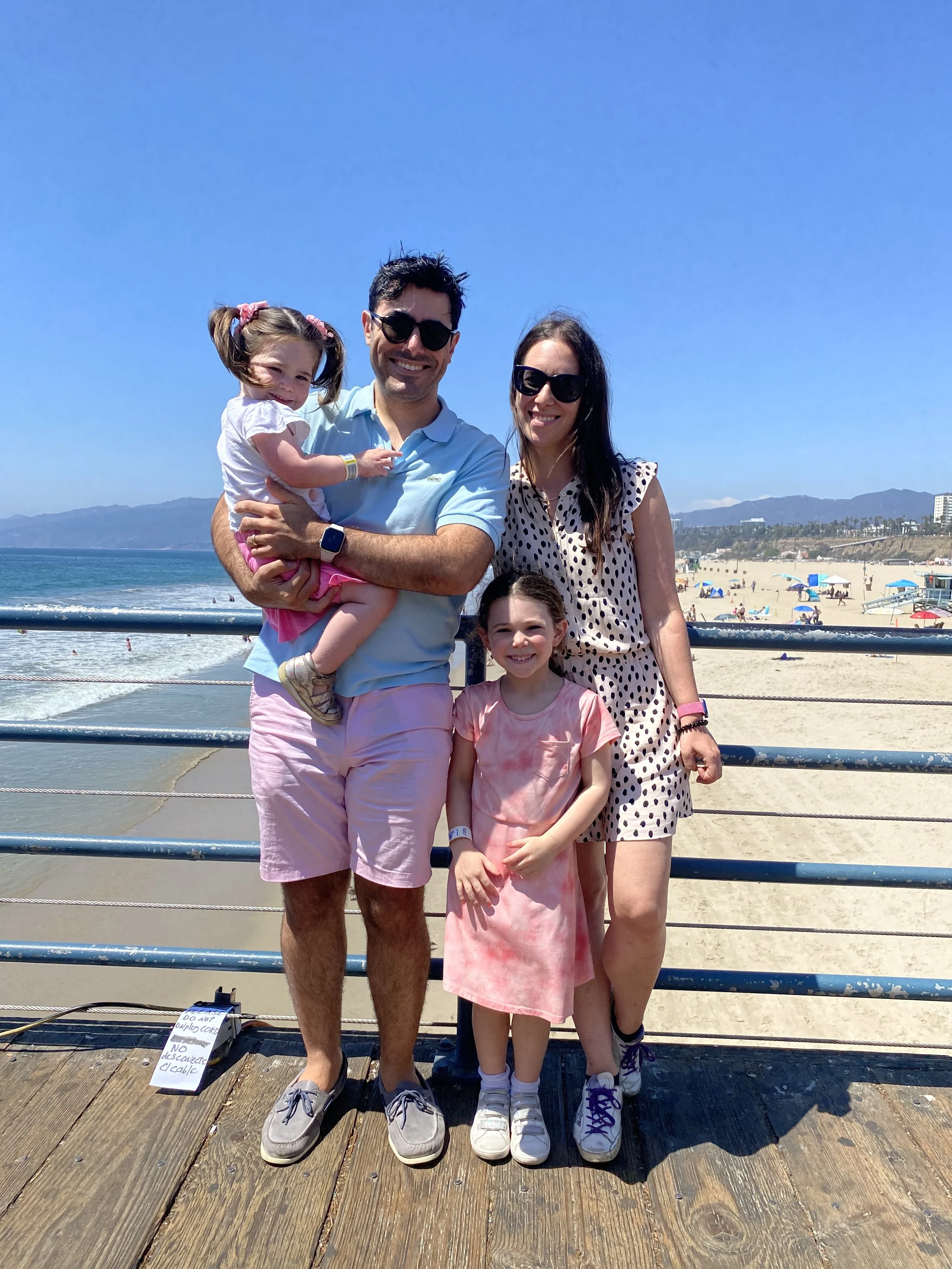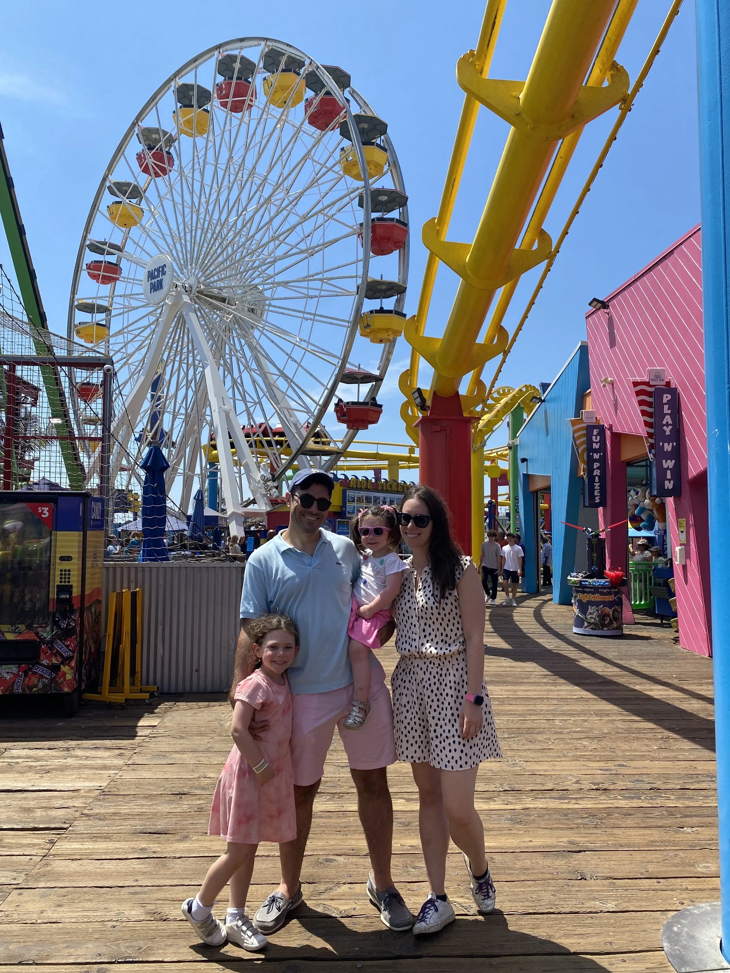We went to breakfast and then got in the car and drove to Santa Monica. We ended up going through the Pico-Robertson area, so we made a stop in front of Tzvi’s old house to show the girls.