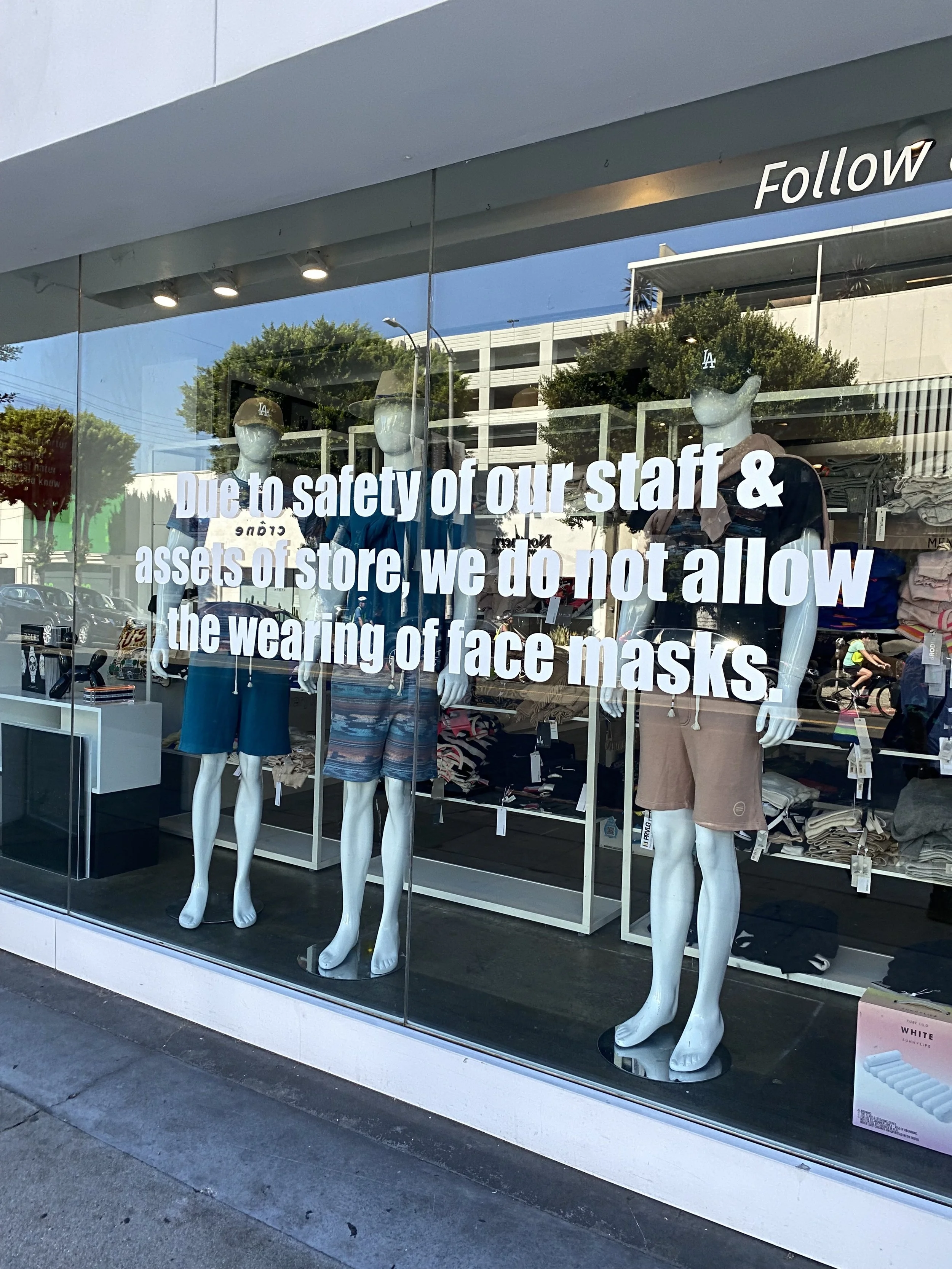 After that we walked around Robertson and went to Kitson, which is always fun. They’re actually the first store I’ve seen to BAN masks out of SAFETY concerns! They recently put out a statement that they’re banning face masks because of a spike in theft. Certainly a new one. Then again, this is LA.