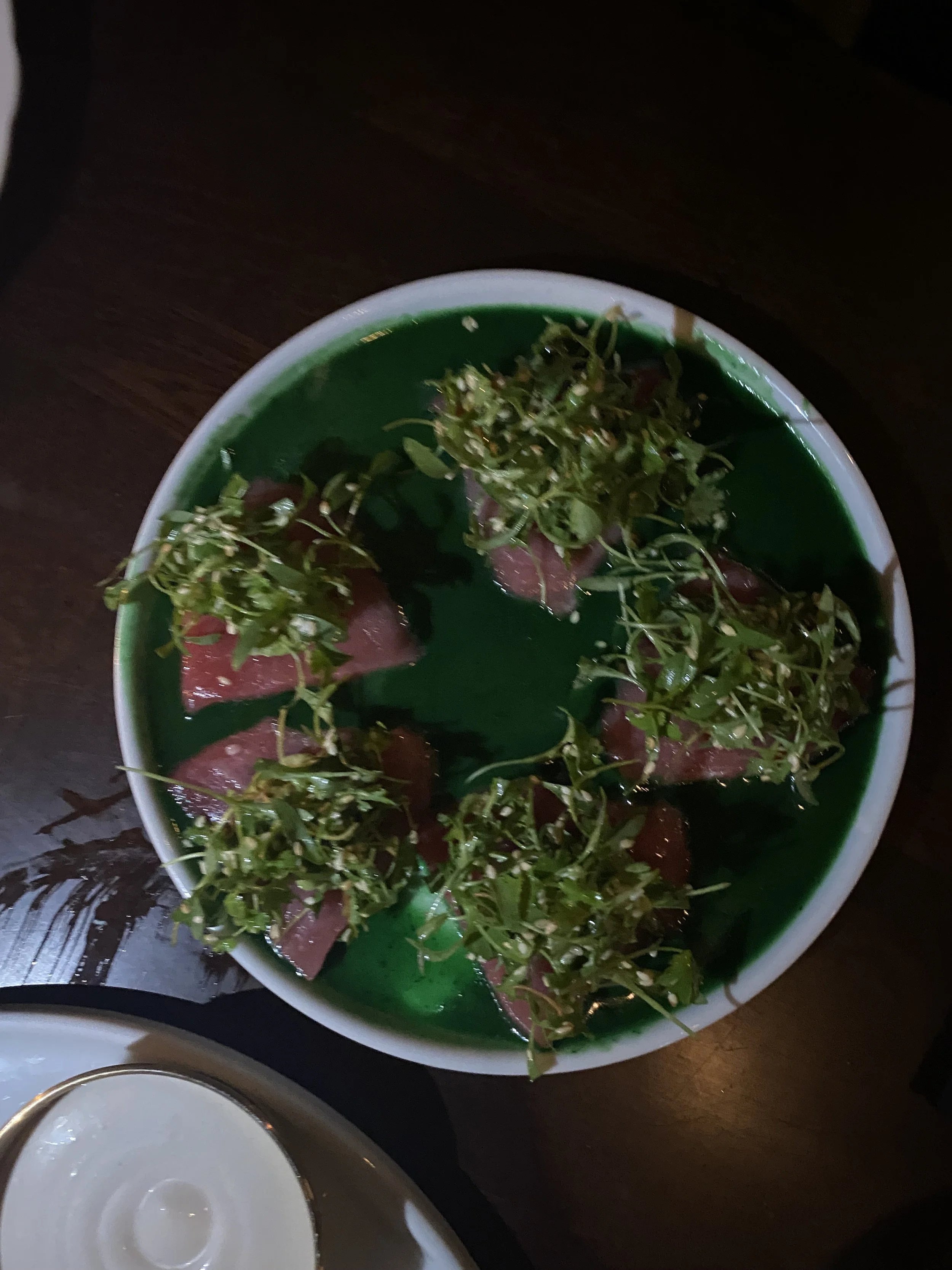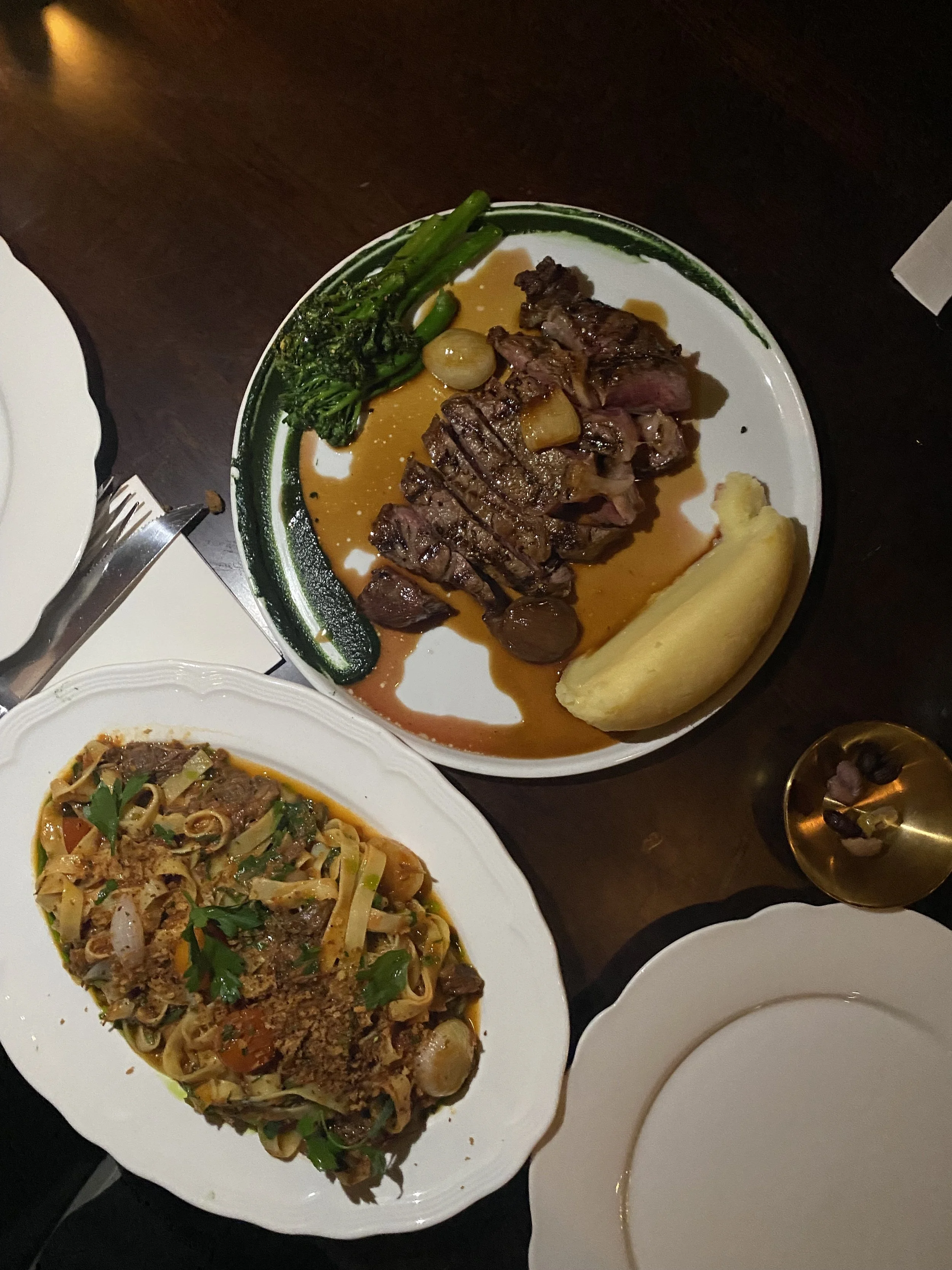 We started with meat cigars that had a bunch of different meats in them, including sweetbreads. We also got a raw tuna appetizer that was in a sauce that looked like green toxic waste; I didn’t try it (as much as our waiter kept trying to get me to) but Tzvi and the others said it was very good. For the main Tzvi and I shared a rib eye and a short rib pasta. We spent a good part of the meal trying to figure out the couple next to us – they were Sephardi and she had her head covered, but he wasn’t wearing as kippa, and they also seemed super disinterested in each other. Also, she had a Fendi bag, and he had a Dior cross body bag. Welcome to LA. Apparently were in the area where the Jews must be super showy to survive. I mean, I come from a place of showiness (Five Towns) but this is a whole other level. For dessert we all shared a chocolate mousse that was okay.