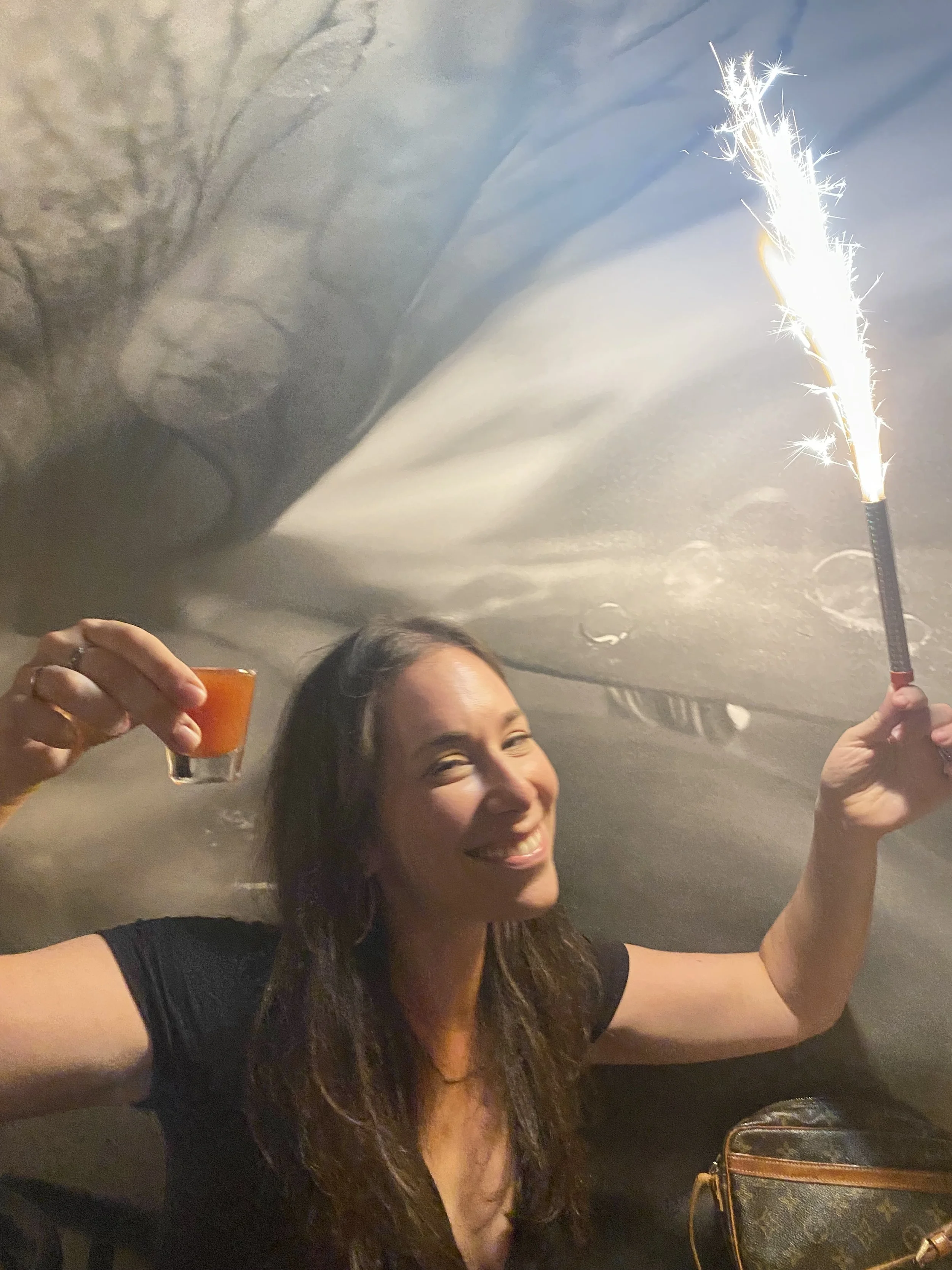 After that we drove back to west LA and went to Next Door, a new kosher restaurant that’s next door to a kosher sandwich shop. It was delicious but I was so tipsy and exhausted. It felt like the restaurant was trying to be Fuego (in Miami) – every once in a while they played Hebrew music really loudly and went through the restaurant with sparklers clapping. At one point they handed out sparklers to all of the tables.