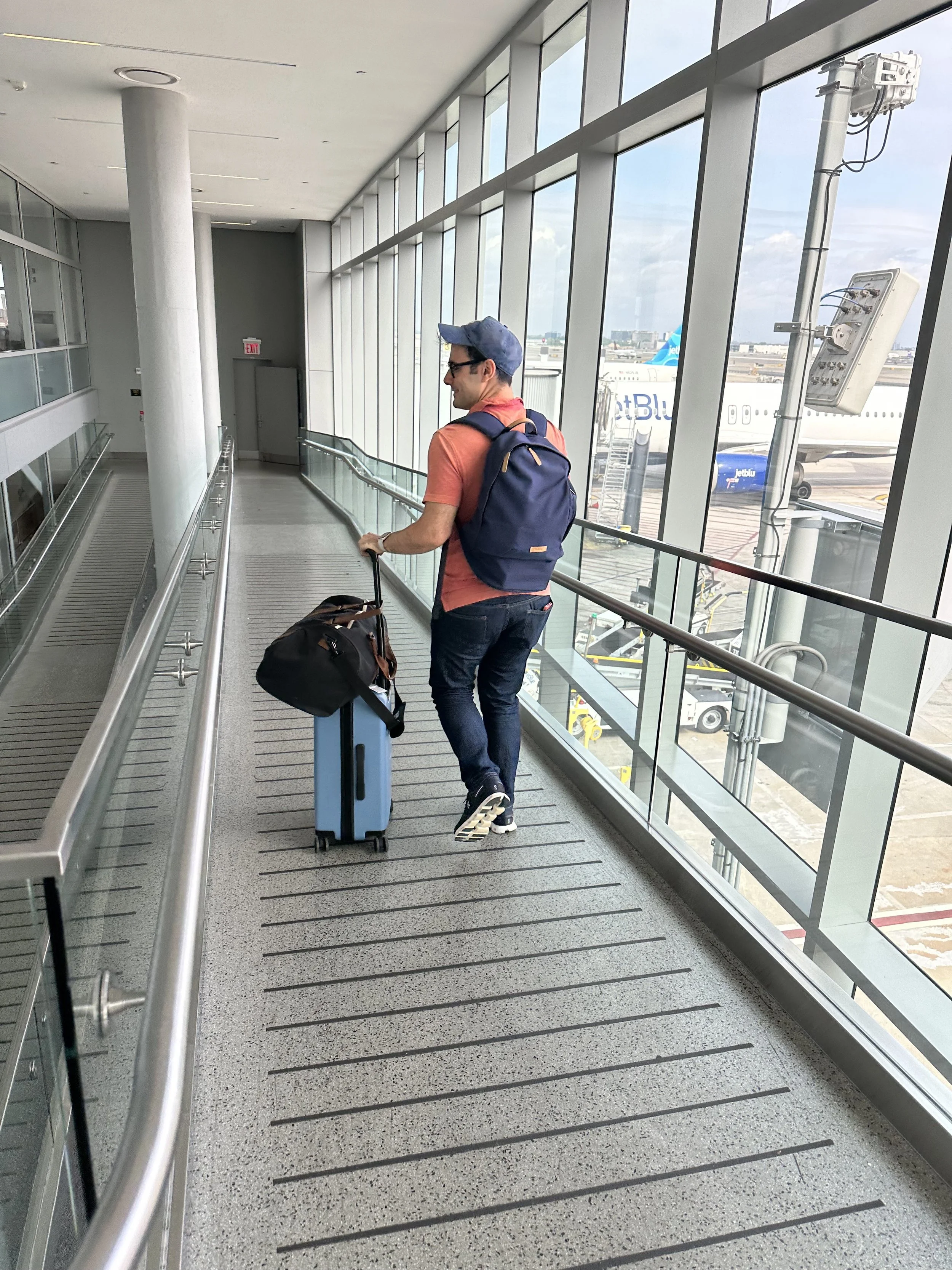 For possibly the first time in our lives (definitely the first in our married lives) we’re not checking any bags. I know, shocking. Having already checked in and with boarding passes on our phones we went straight through security and were in the terminal with about an hour and a half until our scheduled departure time, which wouldn’t have been that bad except the delays just kept coming. We mobile ordered Starbucks and still waited 30 minutes for it. About 5 minutes after I got it, I spilled the entire coffee on the floor. It was a sad moment. We wanted to get hard boiled eggs at the Farmers Fridge machine but they were out, except then a man came and refilled the machine with eggs, and as soon as he walked away Tzvi tried to buy the eggs but the machine was broken and wouldn’t dispense the eggs. The hits just kept on coming.
