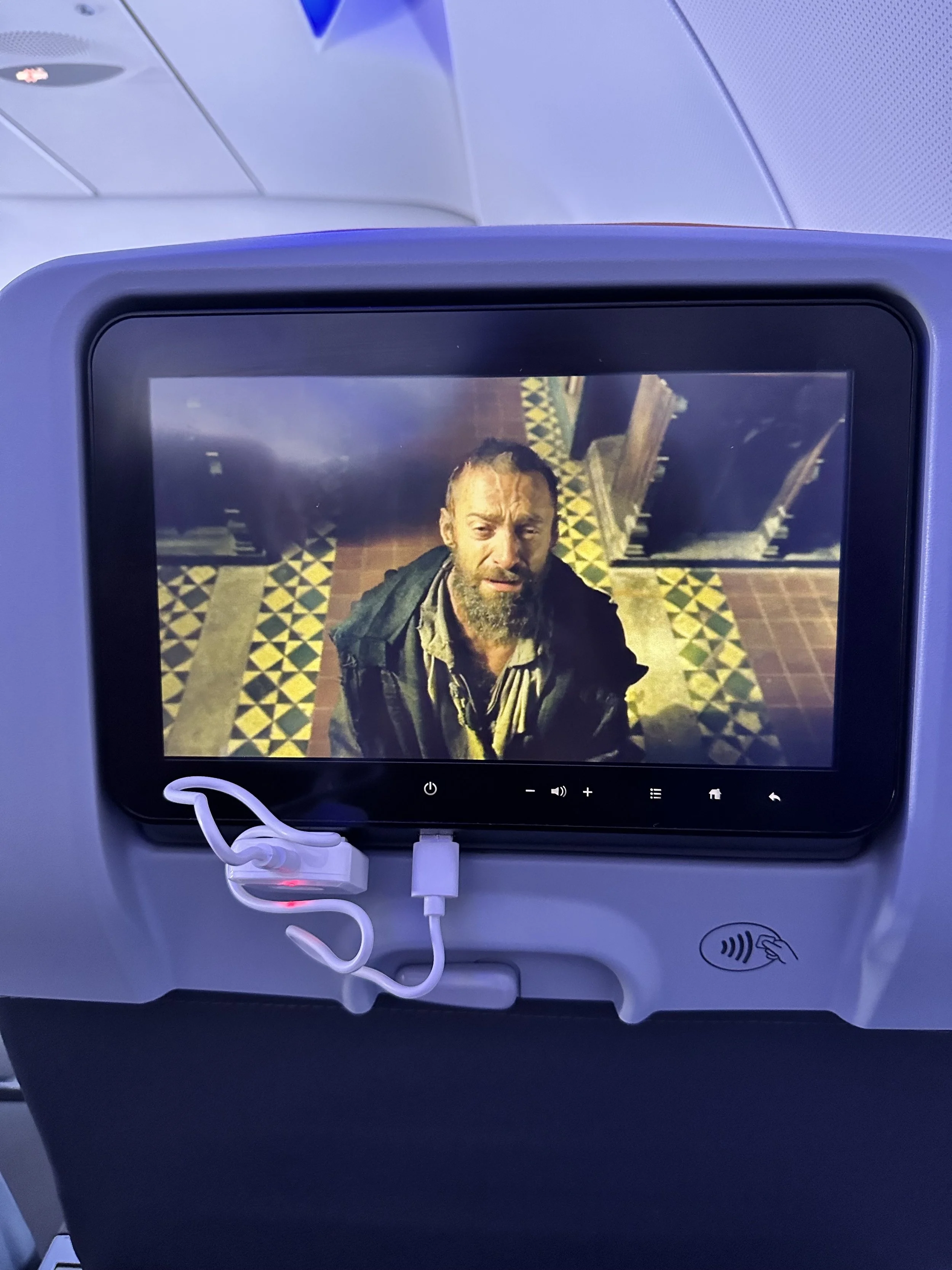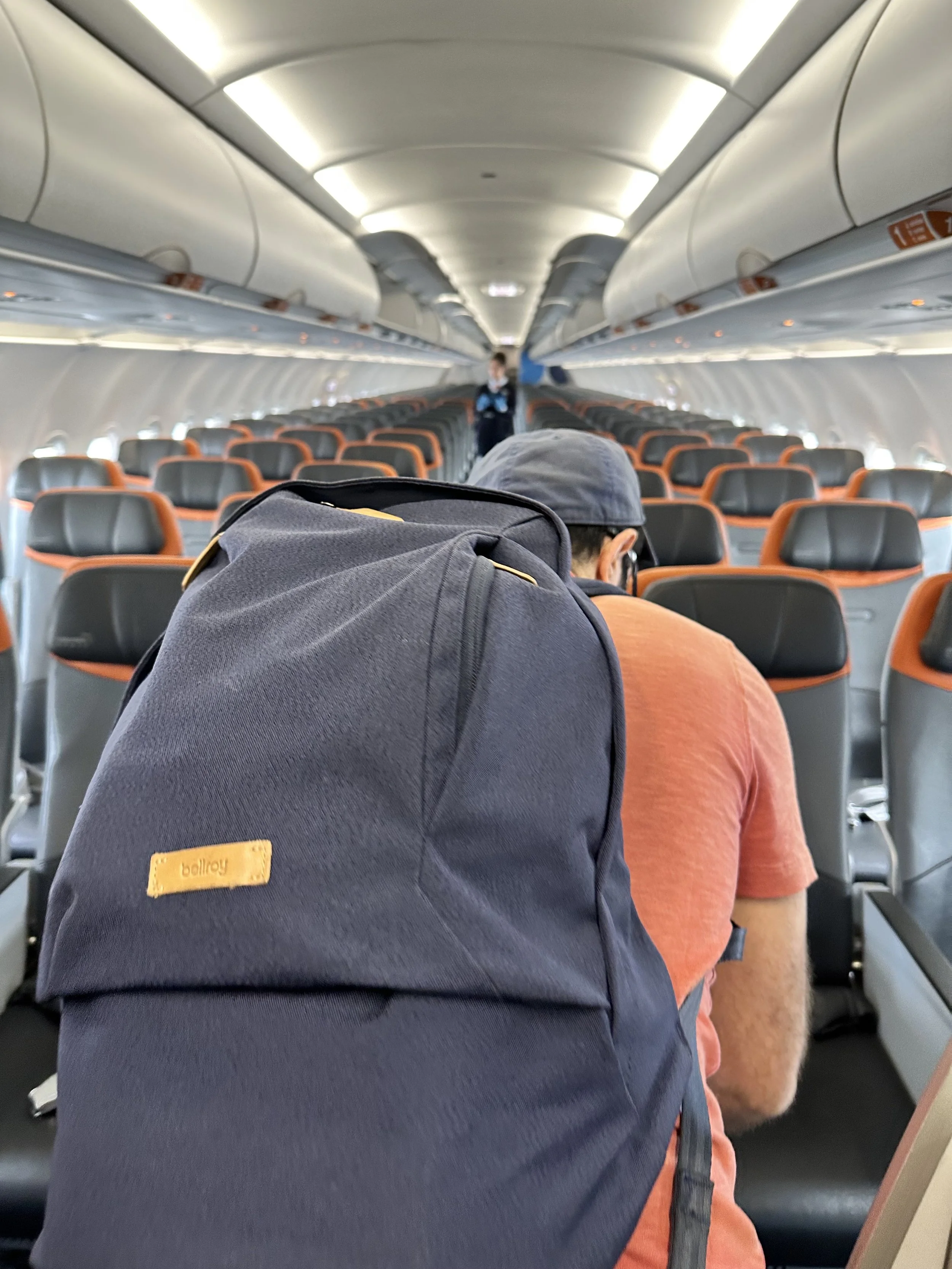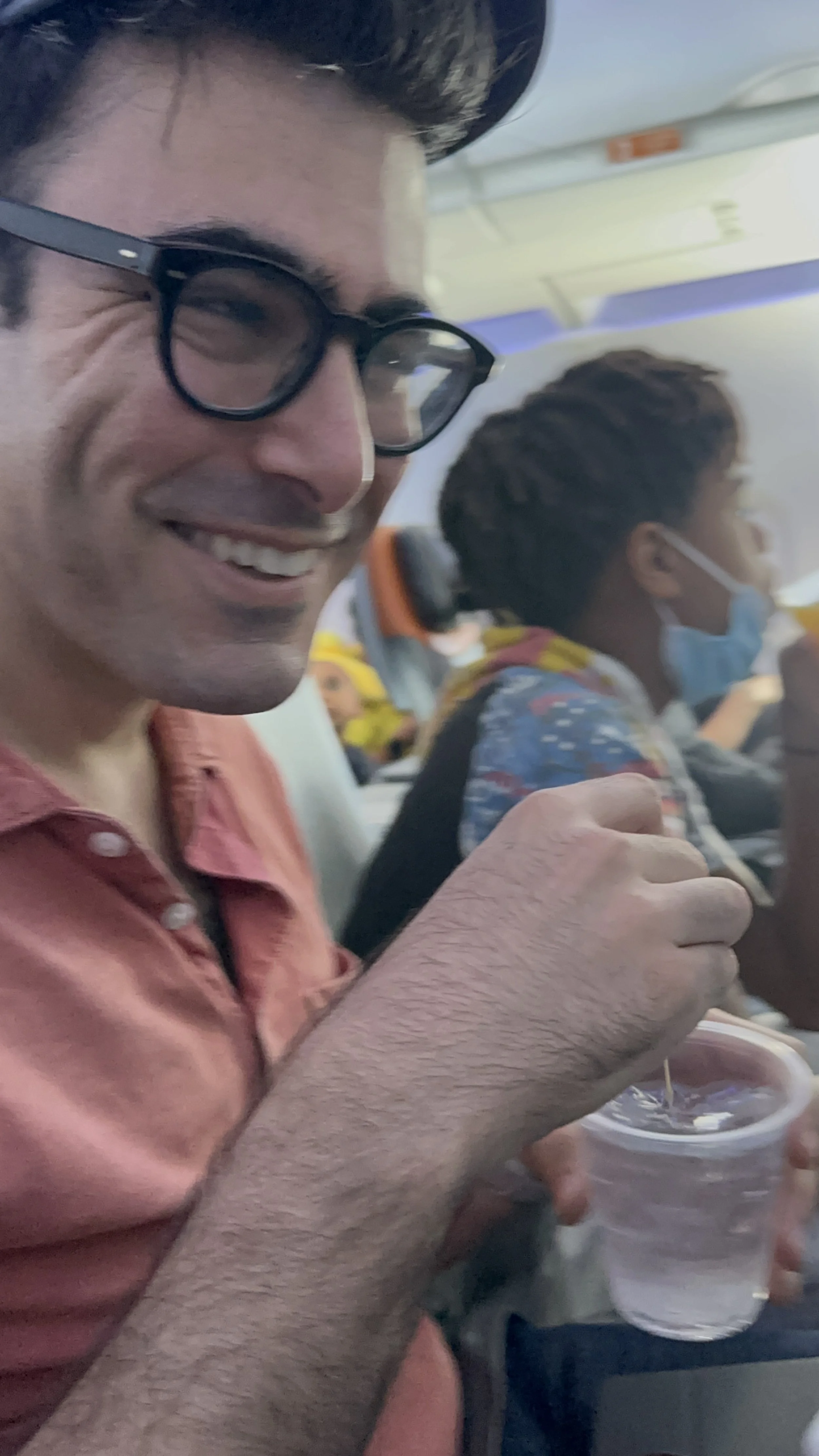 Eventually we got an avocado toast at one of the airport cafes, which we ate while we waited to board. Tzvi was the very first person on the plane, which gave him a lot of joy. I think we finally took off at 11am. We had even more space seats so we’re in row 2. We observed the other passengers around us and wondered if any of them would be at our hotel. Behind us was a couple from Long Island – we knew because they kept saying it – who kept coughing, but not a sick cough, more of a vape cough. They were obnoxious and so crass. Everything was F this and F that. Charming.