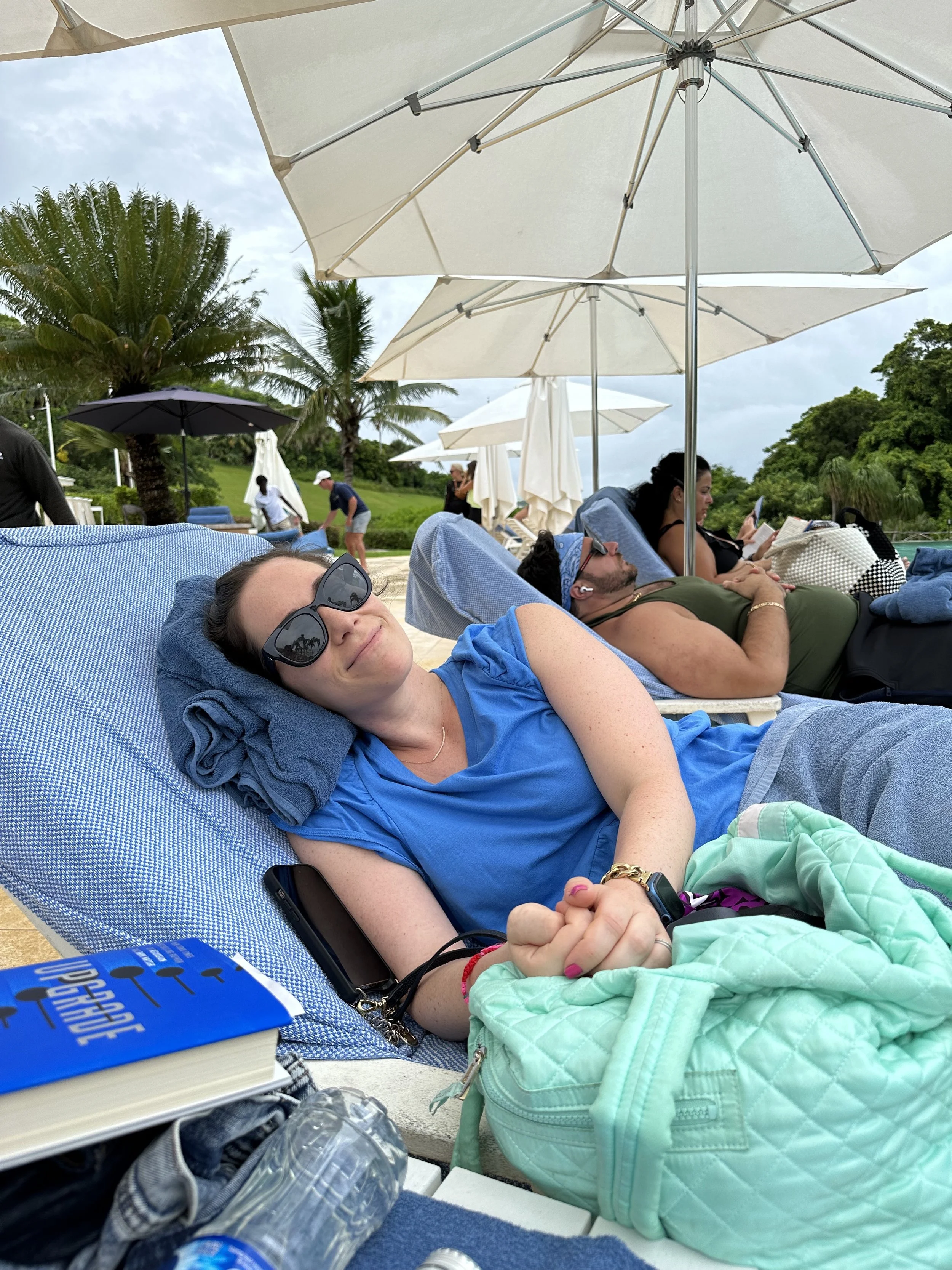 After breakfast we parked ourselves by the pool and enjoyed three hours of sun, or rather the last three hours of sun we would see for the rest of our vacation. It got cloudy around 1:30 and the pool guys came around to tell everyone there was a lightning storm coming and everyone had to get out of the pool.