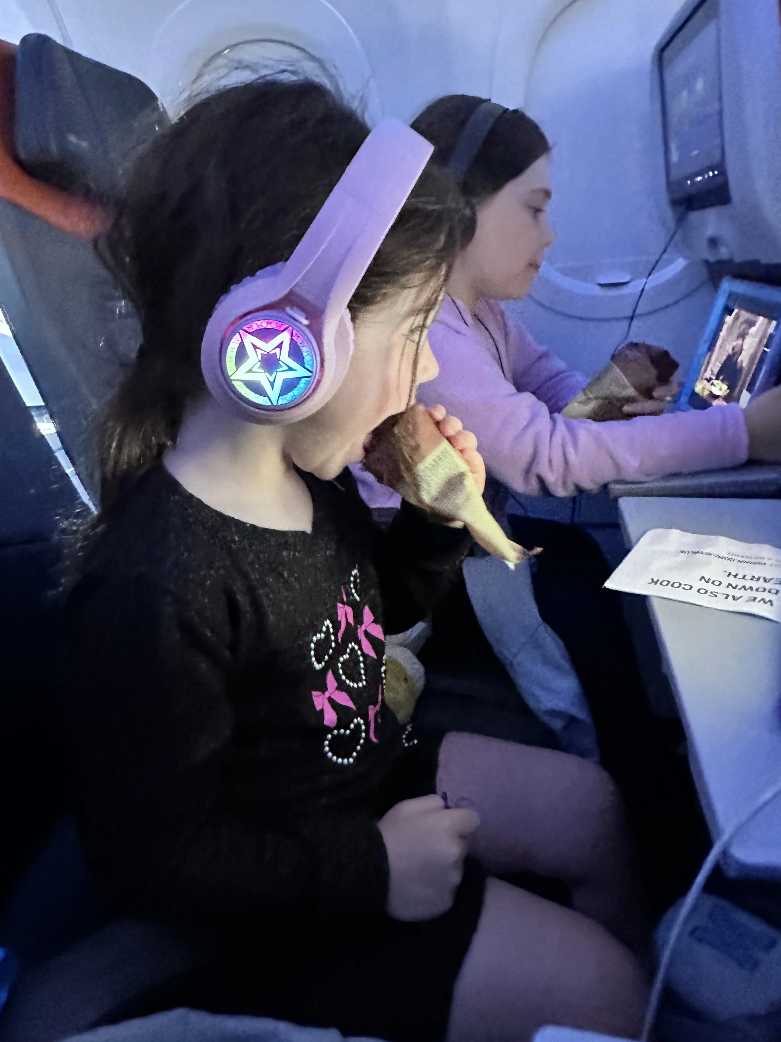 Overall, it was a really good flight. The girls did really well. They watched some Harry Potter and then mostly their iPads. Pretty uneventful—except Hallie kept peeing every ten minutes. (Okay, maybe an exaggeration, but it was a lot. Annoying.)