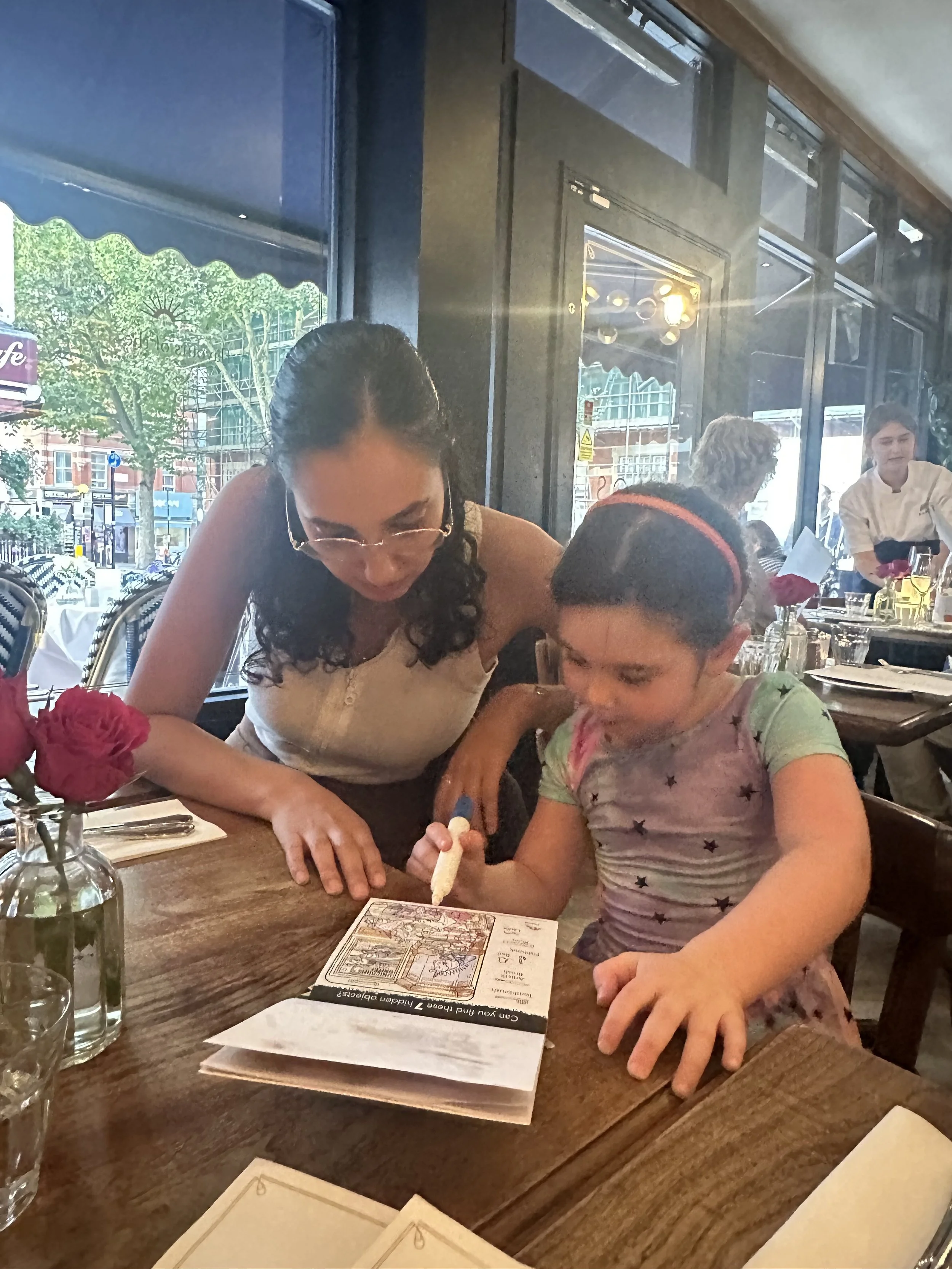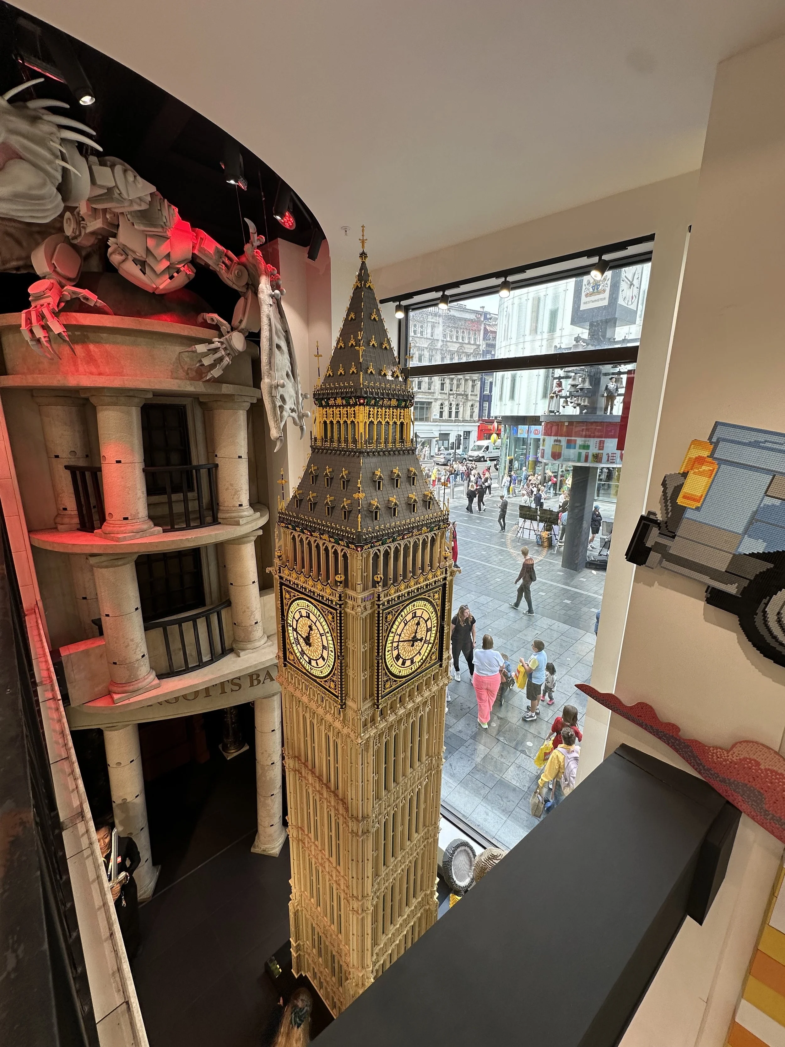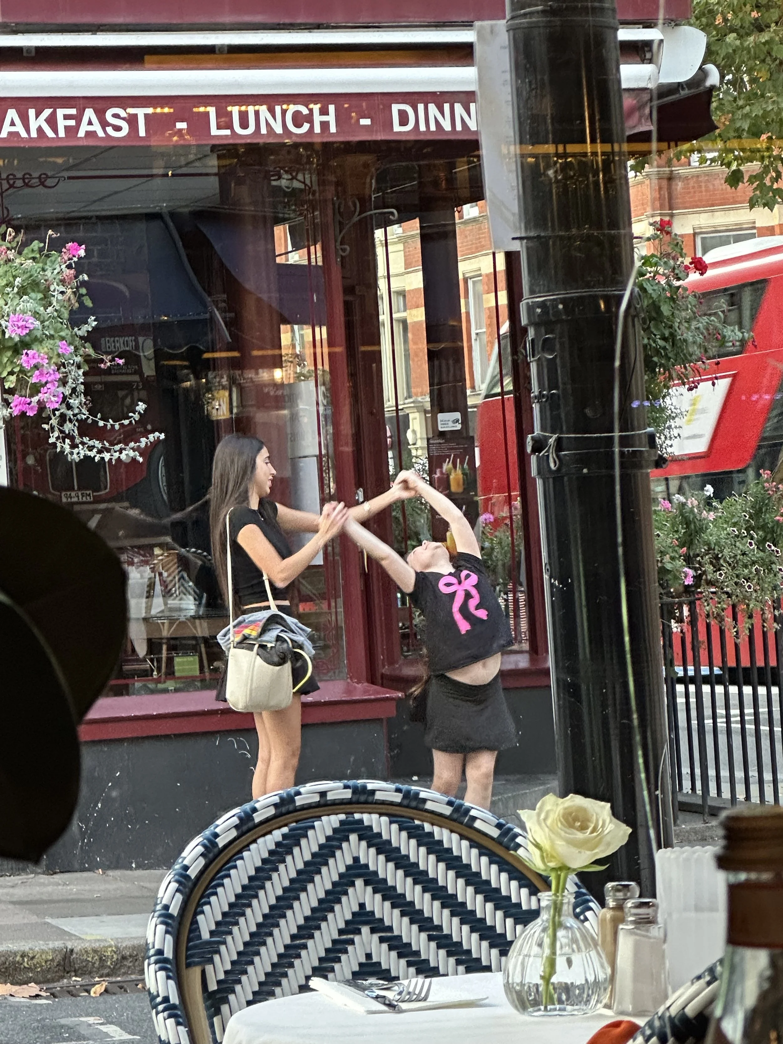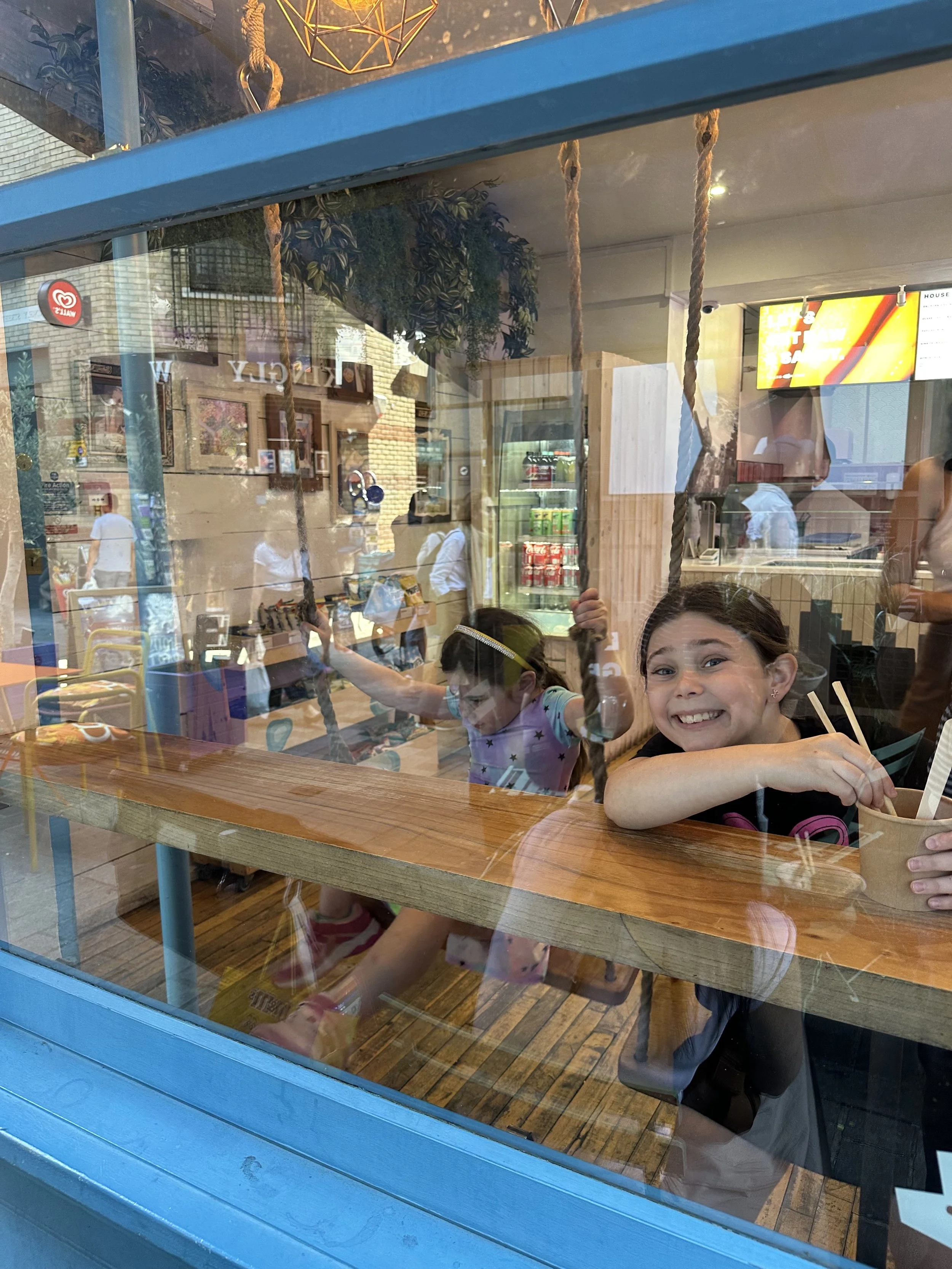Then we walked to Hamleys, the biggest Toy Store (in the world?), which was five floors and huge. They had a large collection of Barbies and Rainbow High Dolls. Madeleine got a Rainbow High Doll and Hallie got some weird ball and some doll. We kept walking and Shir and I went shopping at Stradivarius, which a Spanish brand that we don’t have in America, and one of my favorites that I usually shop at in Israel (there is one in Mamilla Mall). Then we hit Selfridges where we walked around and got a coffee in the food hall, and Hallie got a baguette. We went upstairs to the Jellycat Flagship area. You can book a Jellycat appointment there at the Jellycat diner where they cook you up Jellycat fish and chips. I didn’t realize you could book it, but the kids didn’t need to do that anyway. They each bought Jellycats. Madeleine got a pizza, and guess what, Hallie got a baguette.