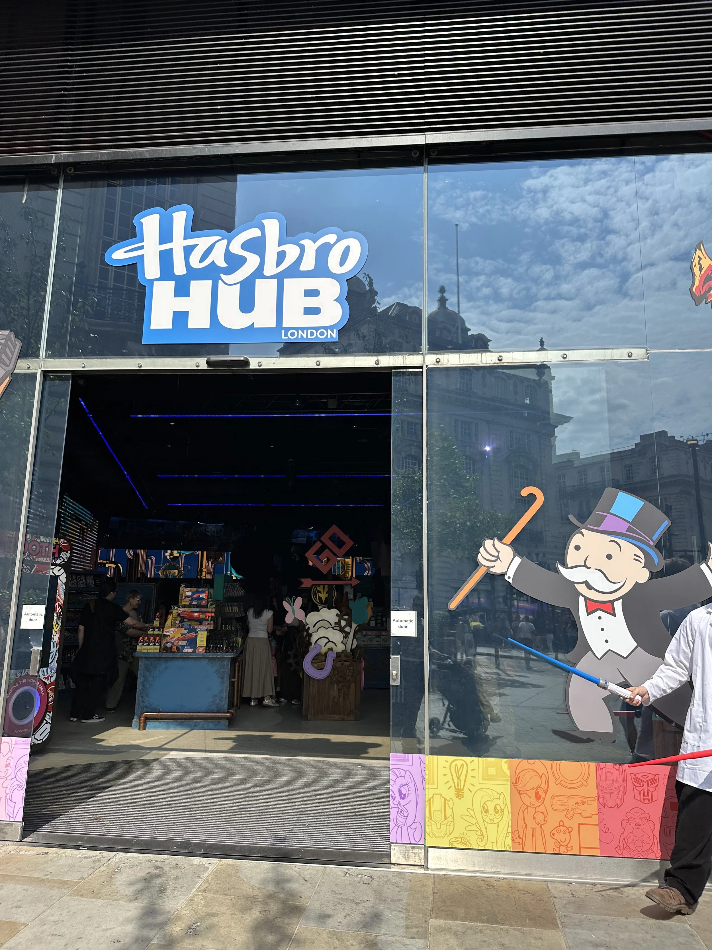 We walked through China Town, picked Hallie up a bagel with cream cheese because she was “starving,” and continued walking. We hit Picadilly Circus where we found the Hasbro store. They had this display of old toys, including a Bop-It Extreme that I used to have. I showed Hallie and she was so jealous, as she should be, because it was way better than the Bop-It they have now. We then made our way to the original Charles Thrywit store which was underwhelming and actually more expensive that in America. [Tzvi: I thought it would be like a big deal – I mean, every store you visit in America the sign actually says “Charles Thyrwhit, Jermyn Street, London” and here we were on Jermyn Street, and it was basically the same as the store at Roosevelt Field Mall.] We stopped at Waterstones flagship store, a bookstore, where the girls and Tzvi got books. Apparently the tote bags are famous here, but I didn’t buy one.