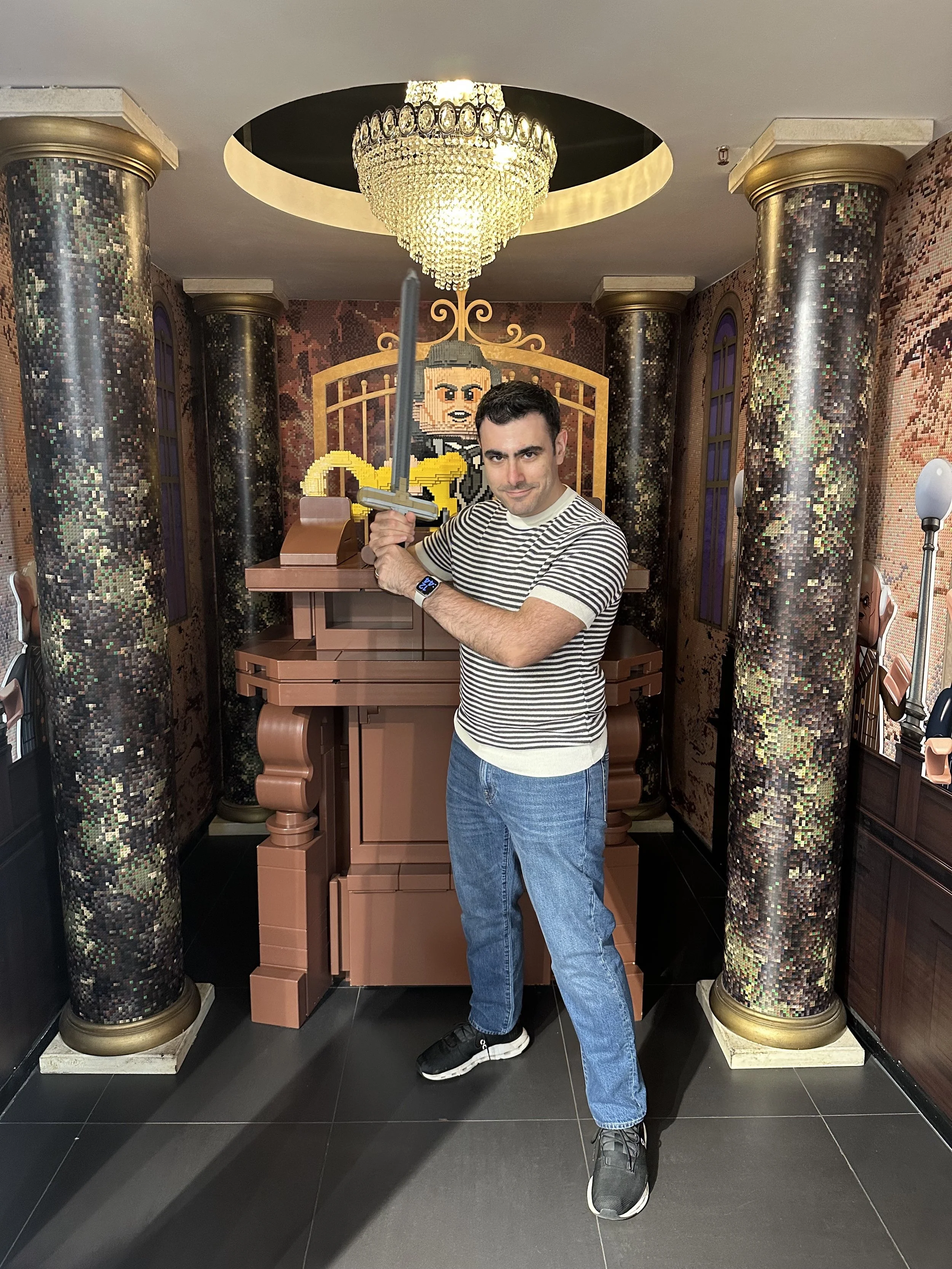 We got a black cab from the front of the hotel. These black cabs are great. They are so spacious and clean and there is even enough space for 6 people in a smaller car. I’m not sure why they can’t figure this out in NY and we have to be stuck with ugly yellow taxis. Our first stop was Leicester Square, which basically felt like Times Square. We first hit the Lego store and then the M & M store. When we were done with the M&M store Inbar met us! For those of you who don’t recall, Inbar, our au pair from two years ago, is studying in London for 3 years.