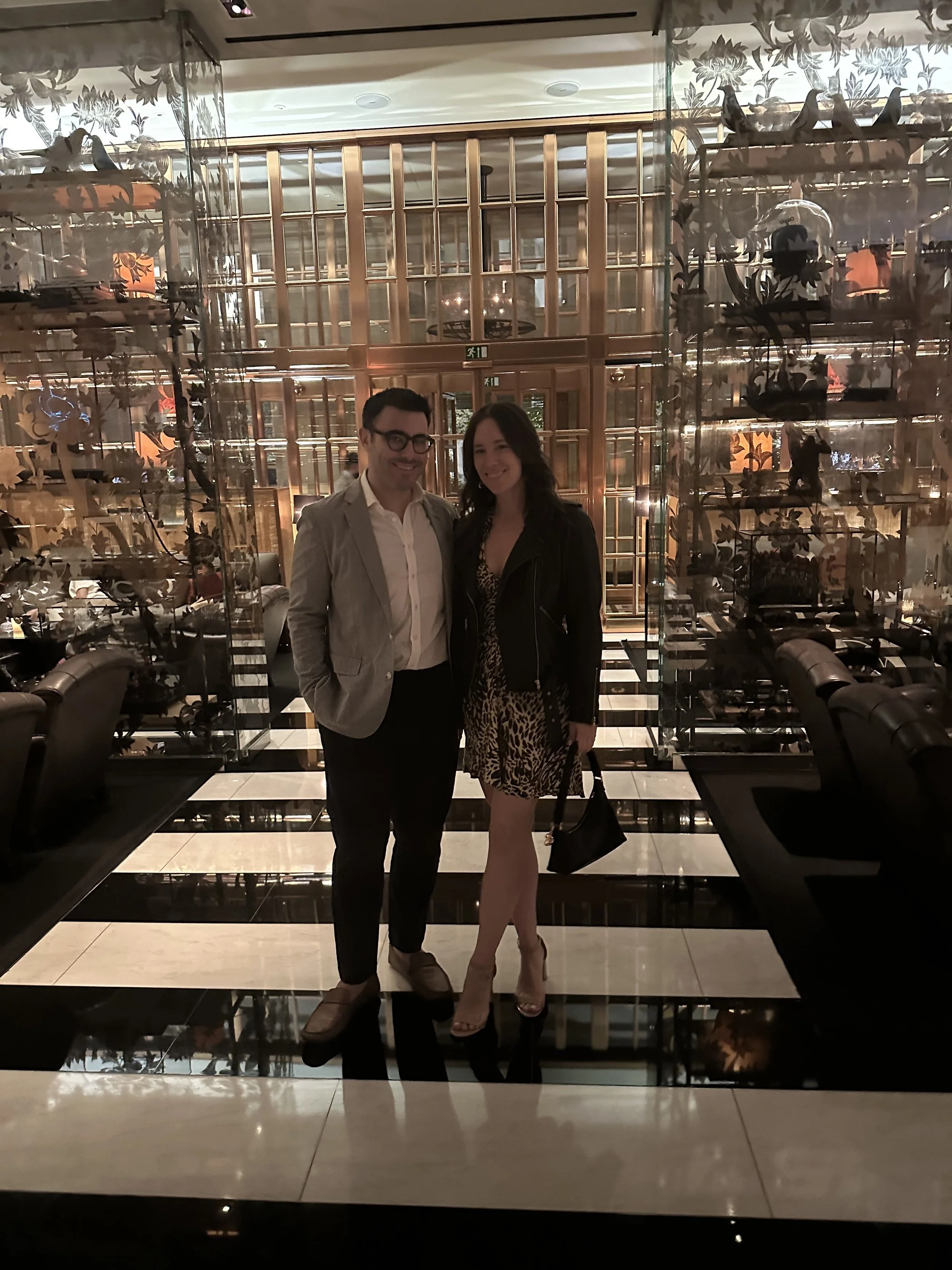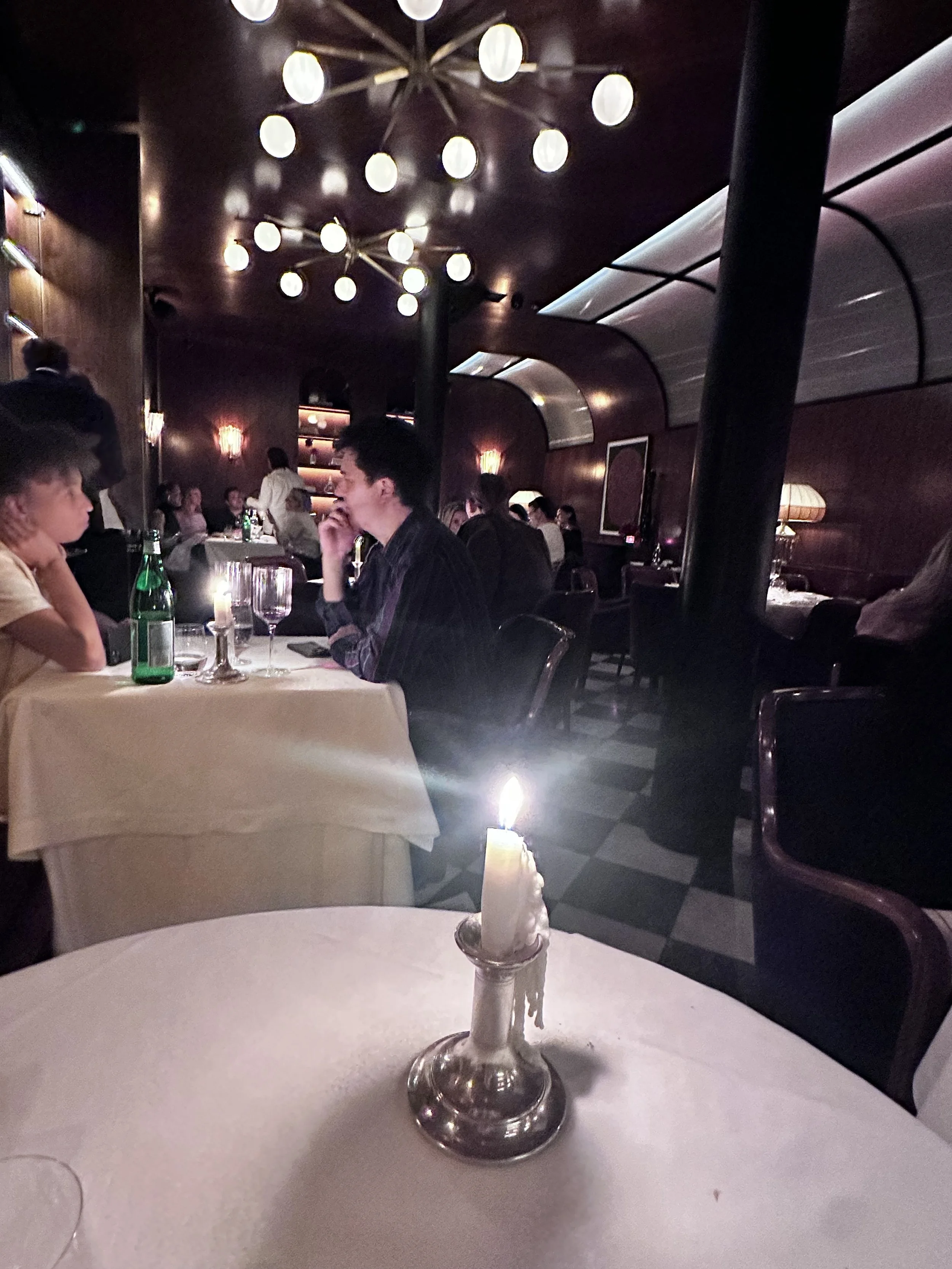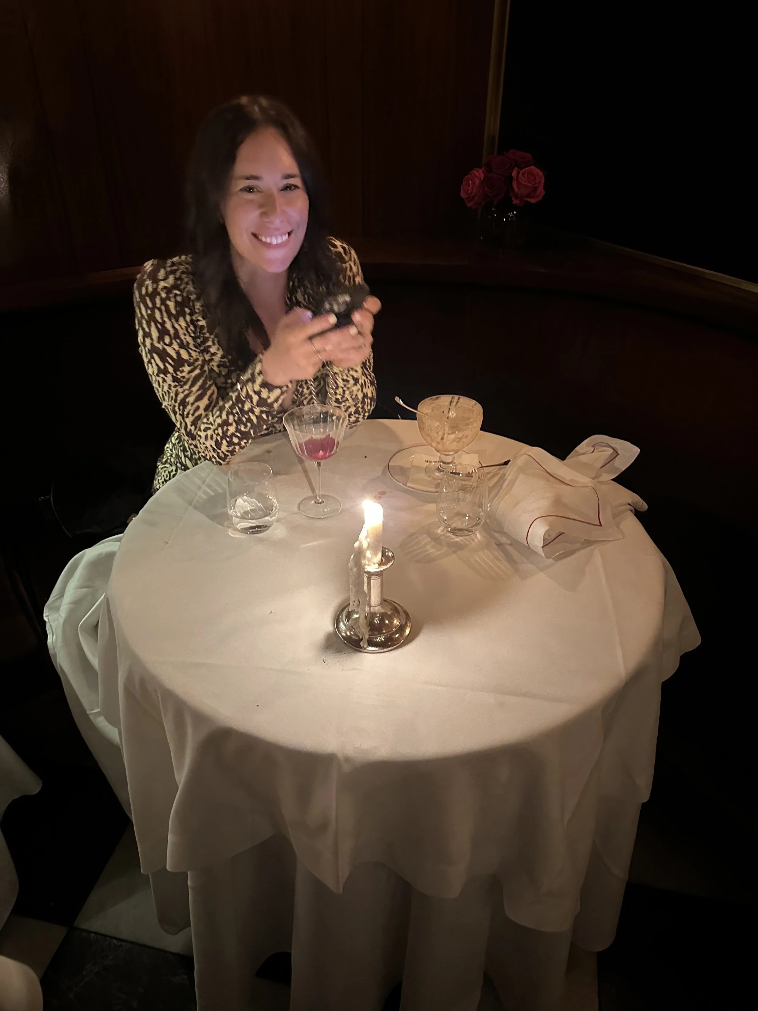 By 8:50, Shabbat was over, and Tzvi and I got ready to go out. Tonight’s dinner was at The Dover, a 1970s New York–themed restaurant. Yes—we came to London and went to a New York–themed place. But it was great. We got a fantastic corner booth, which almost never happens at these fancy spots.