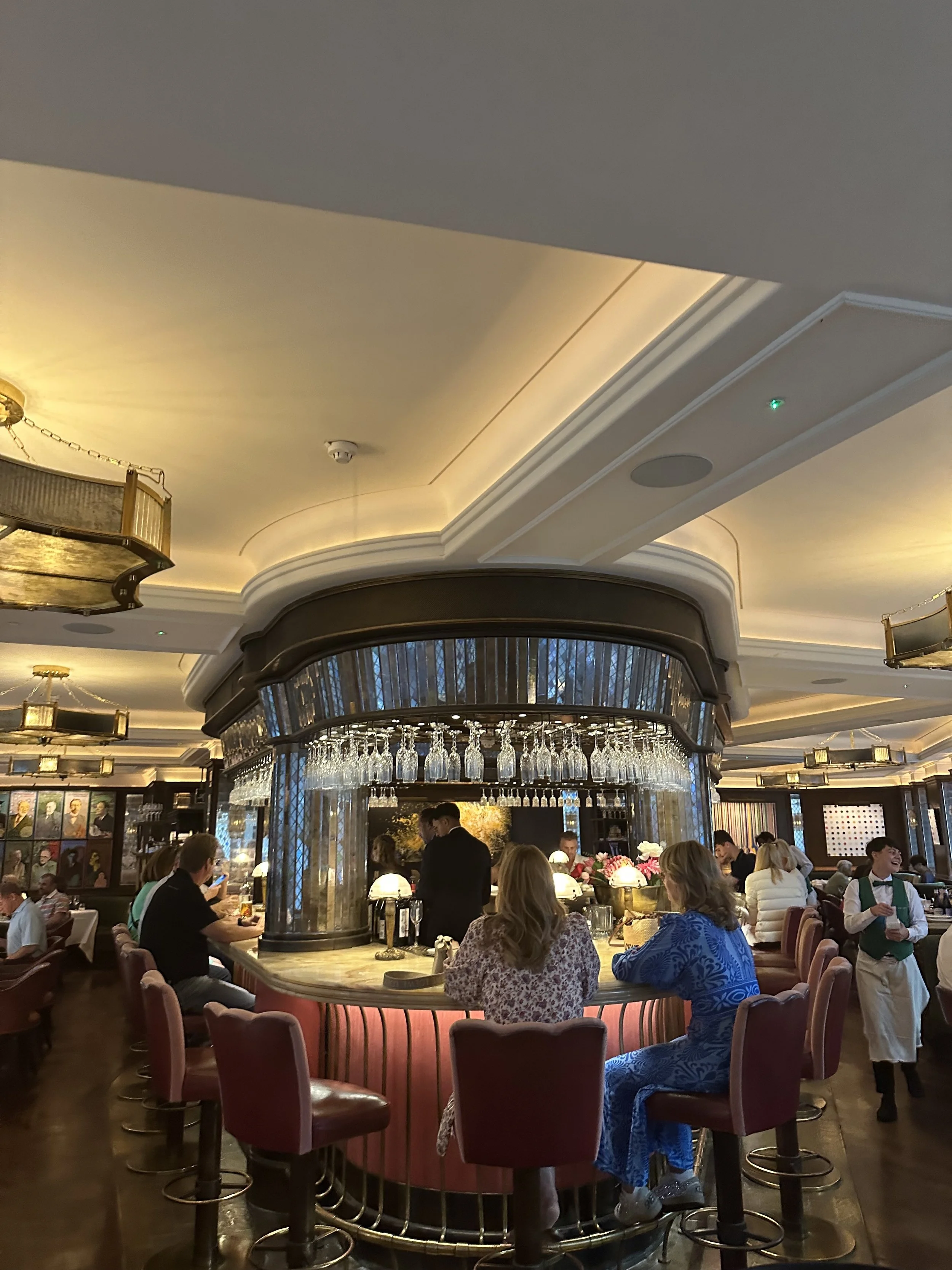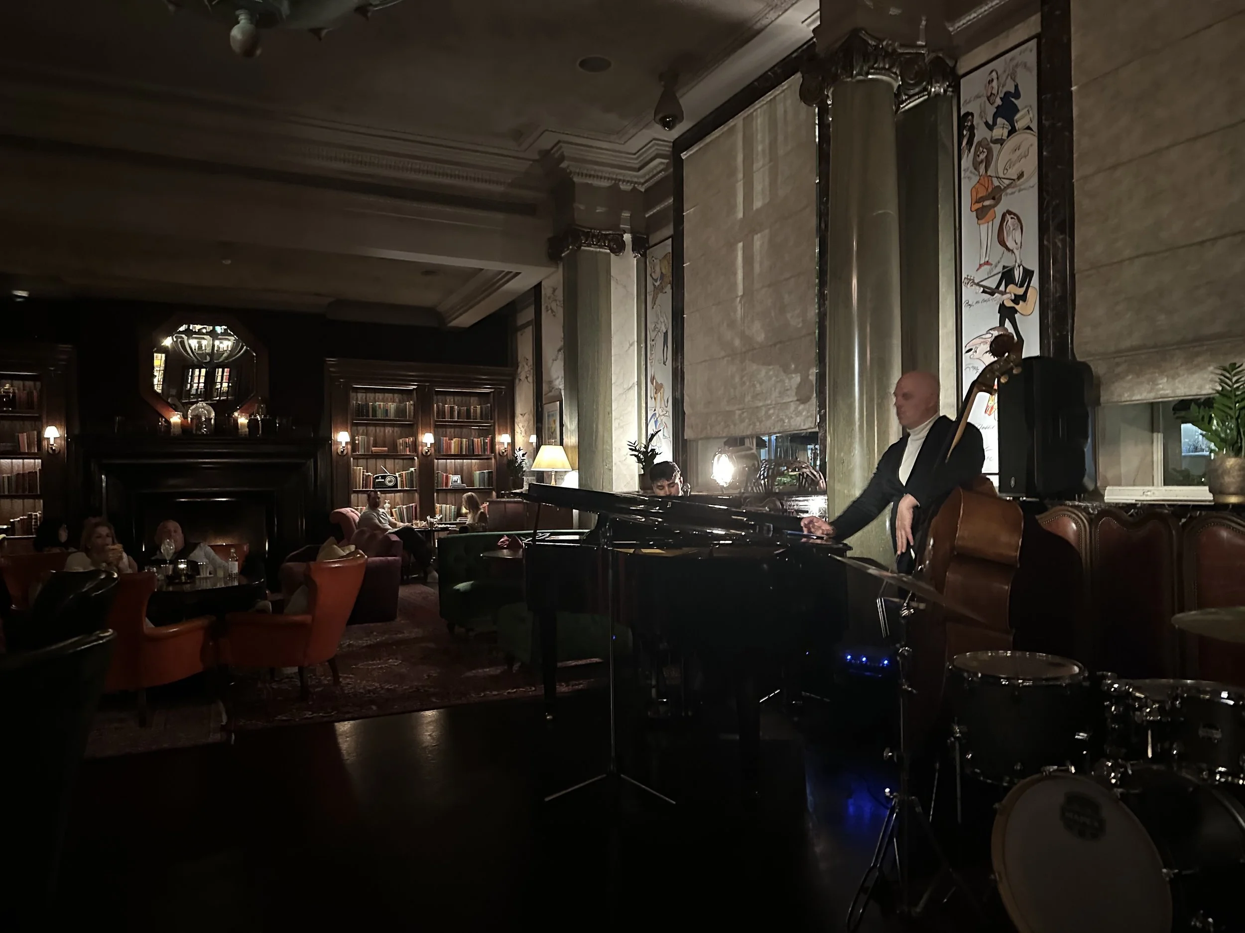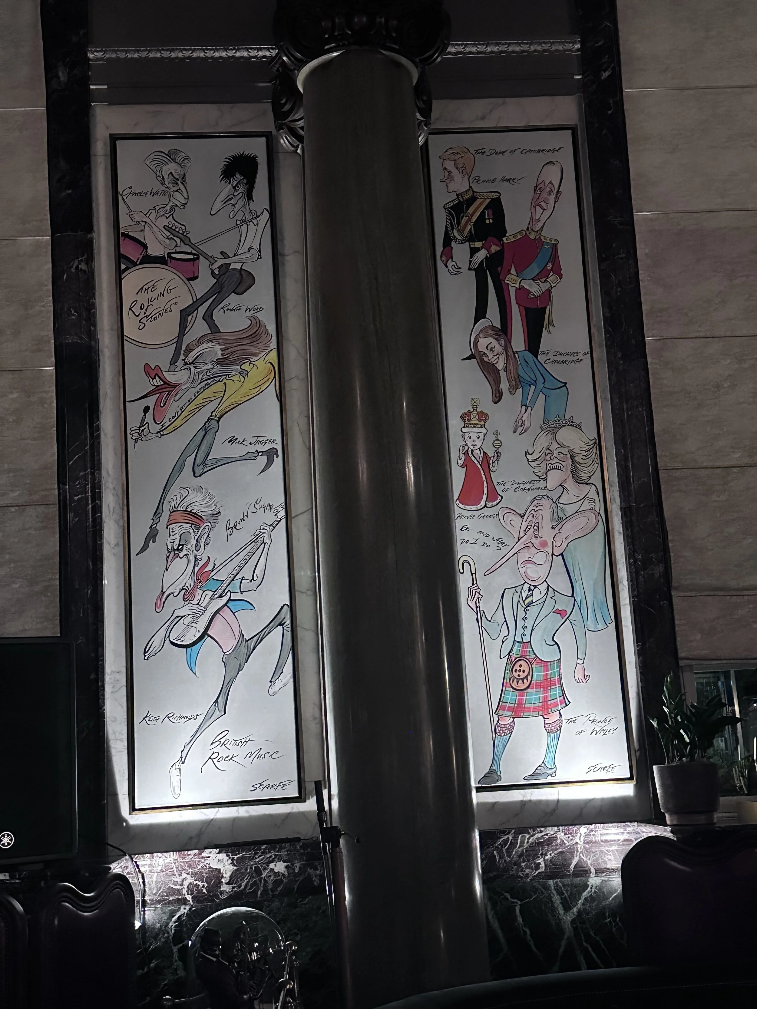 Afterward, we walked back to the hotel—about 10 minutes—Madeleine was on Tzvi’s shoulders but Hallie complained the entire way. Back at the hotel, we got the kids to sleep and packed up, while Tzvi took another work call. Then Tzvi and I went to the lobby bar, Scarfes, which is named after a cartoonist and is ranked one of the top 50 bars in the world. We got seats at the bar and each ordered a cocktail. There was live music, and we stayed for about 30–40 minutes until they stopped serving at midnight. Our bartender was Italian and told us he had recently visited New York. He was naming all of the bars he went to. He also told us how they get a limited number of free nights to use at other Rosewoods. Maybe I should work for Rosewood. Very interesting and a nice end to the day.