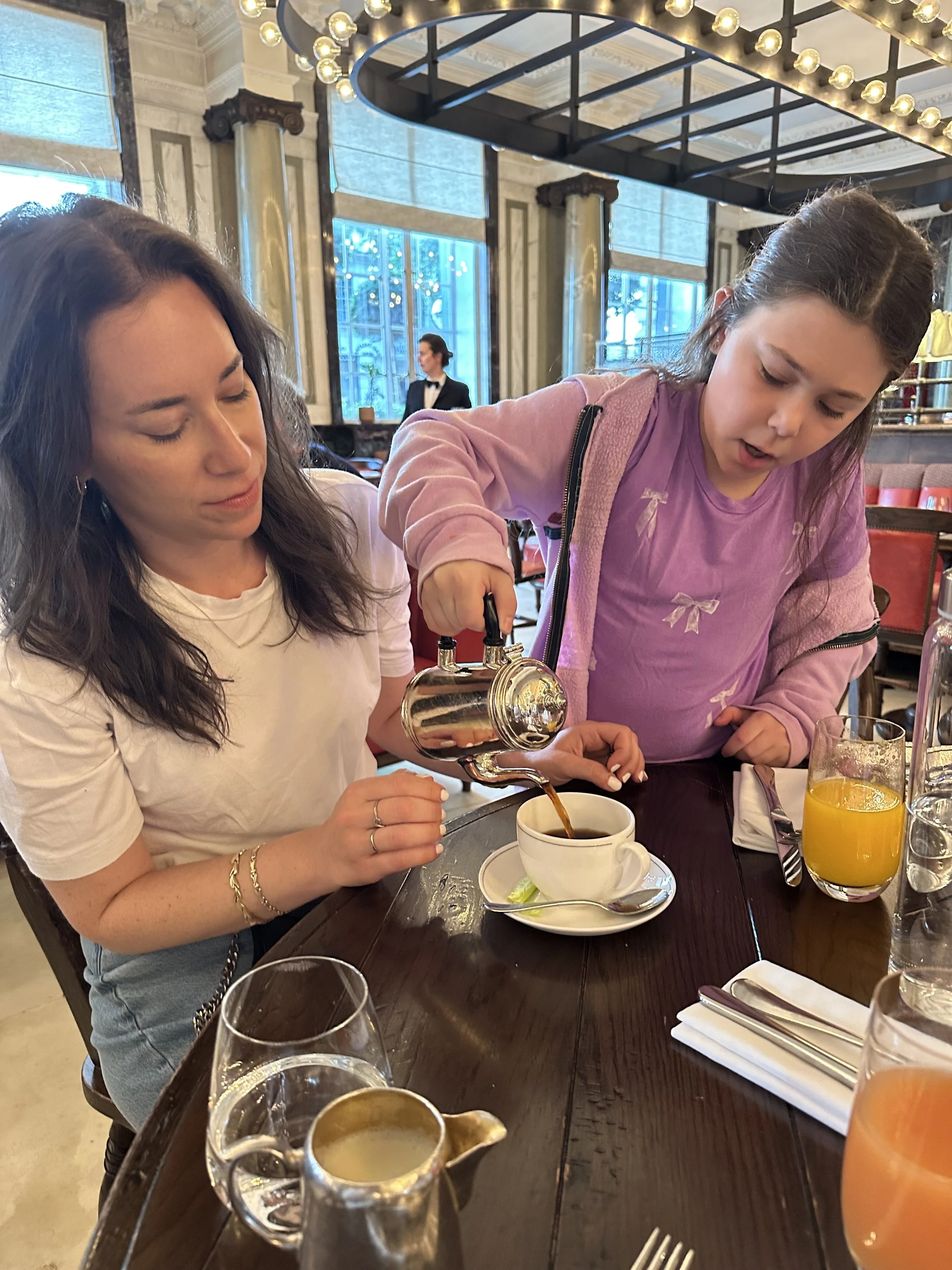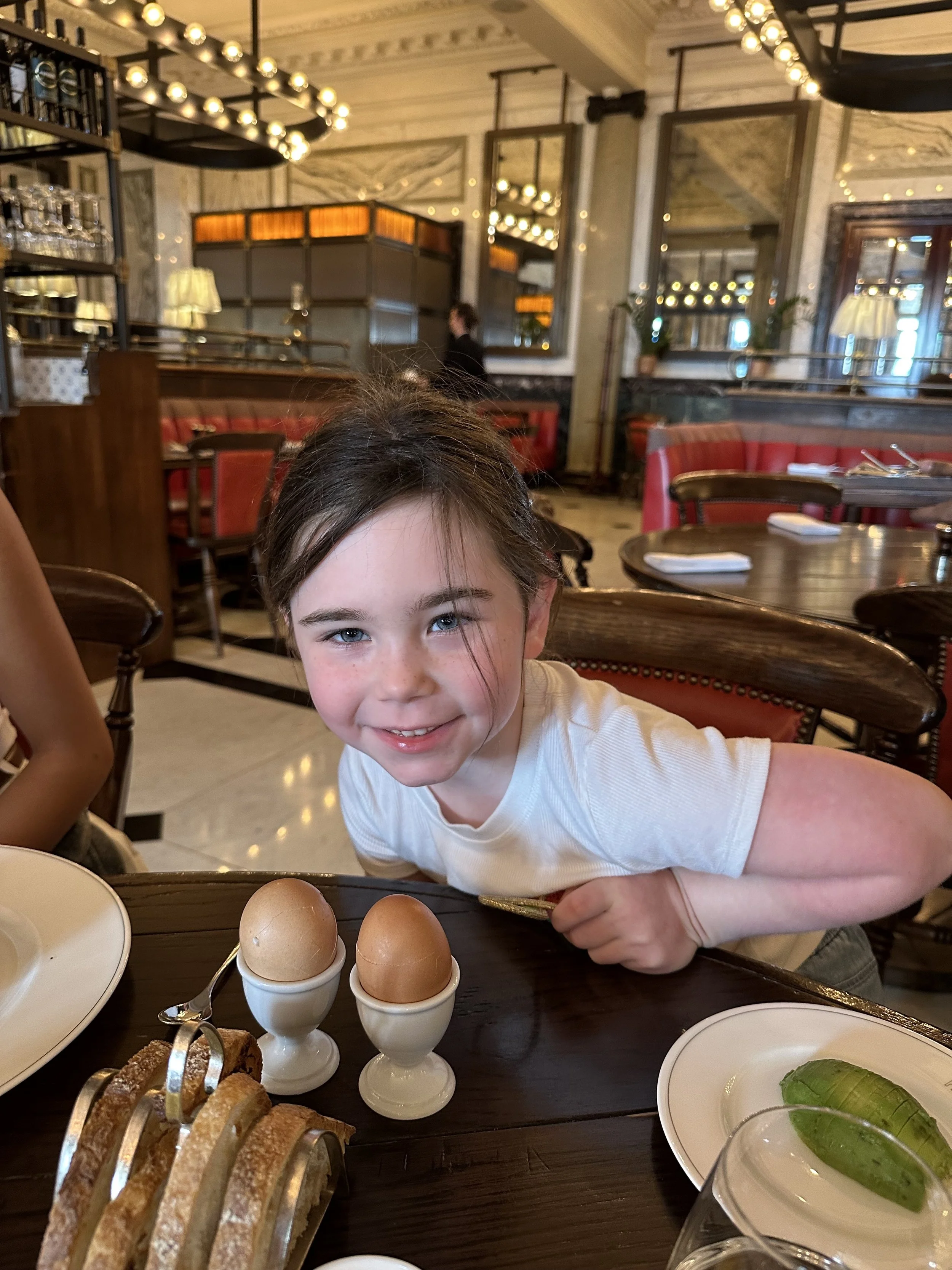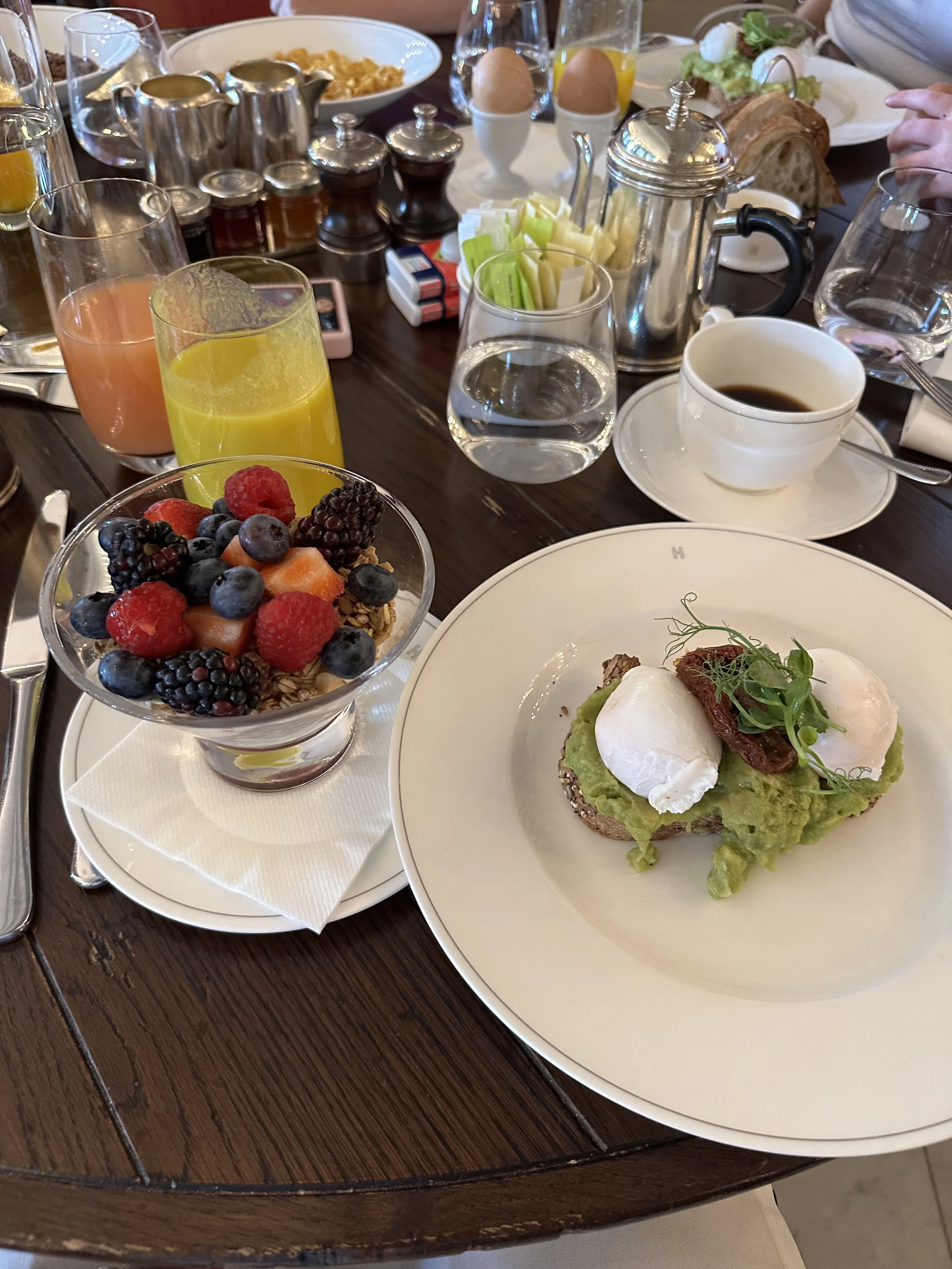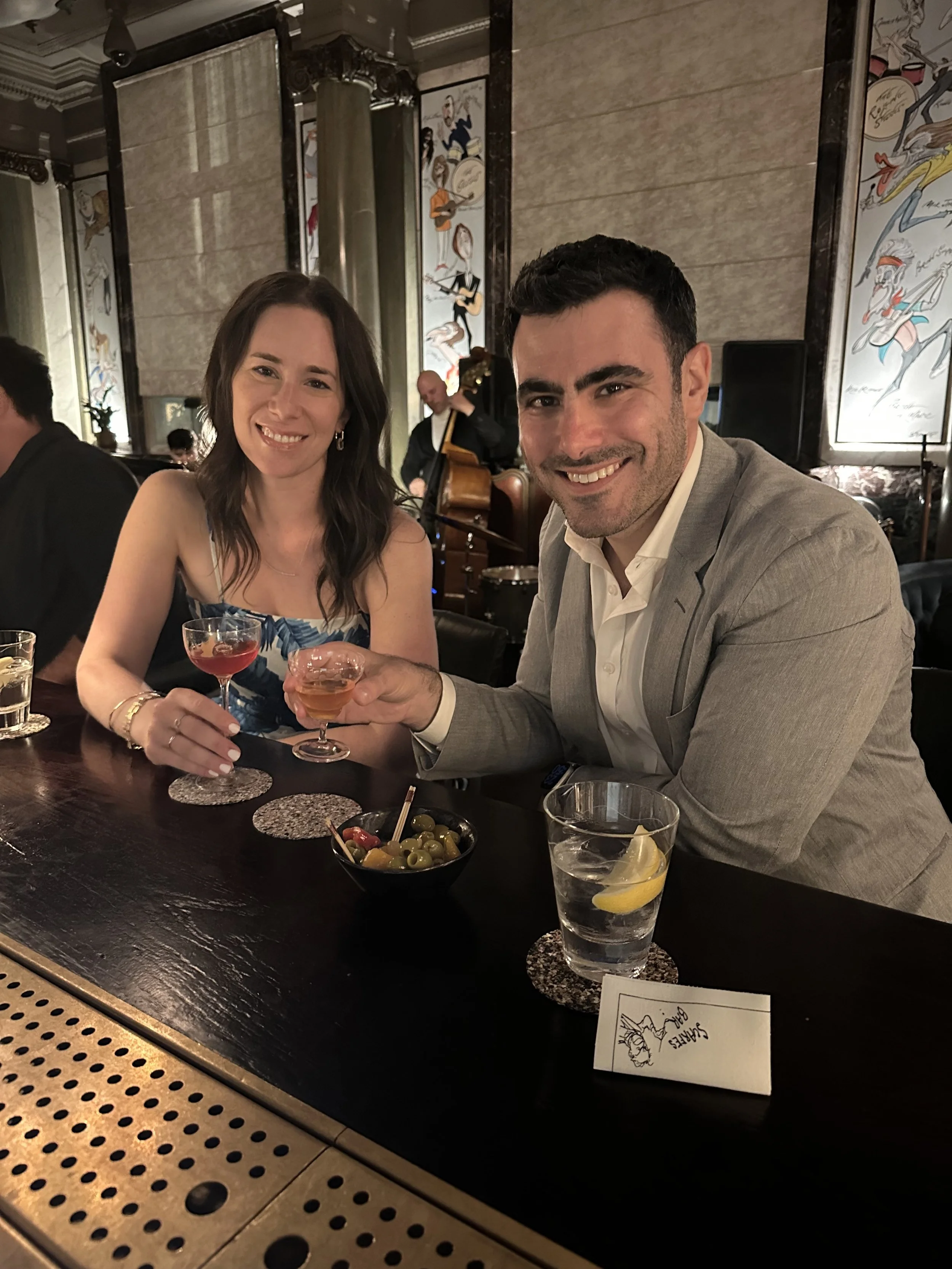 Afterward, we walked back to the hotel—about 10 minutes—Madeleine was on Tzvi’s shoulders but Hallie complained the entire way. Back at the hotel, we got the kids to sleep and packed up, while Tzvi took another work call. Then Tzvi and I went to the lobby bar, Scarfes, which is named after a cartoonist and is ranked one of the top 50 bars in the world. We got seats at the bar and each ordered a cocktail. There was live music, and we stayed for about 30–40 minutes until they stopped serving at midnight. Our bartender was Italian and told us he had recently visited New York. He was naming all of the bars he went to. He also told us how they get a limited number of free nights to use at other Rosewoods. Maybe I should work for Rosewood. Very interesting and a nice end to the day.