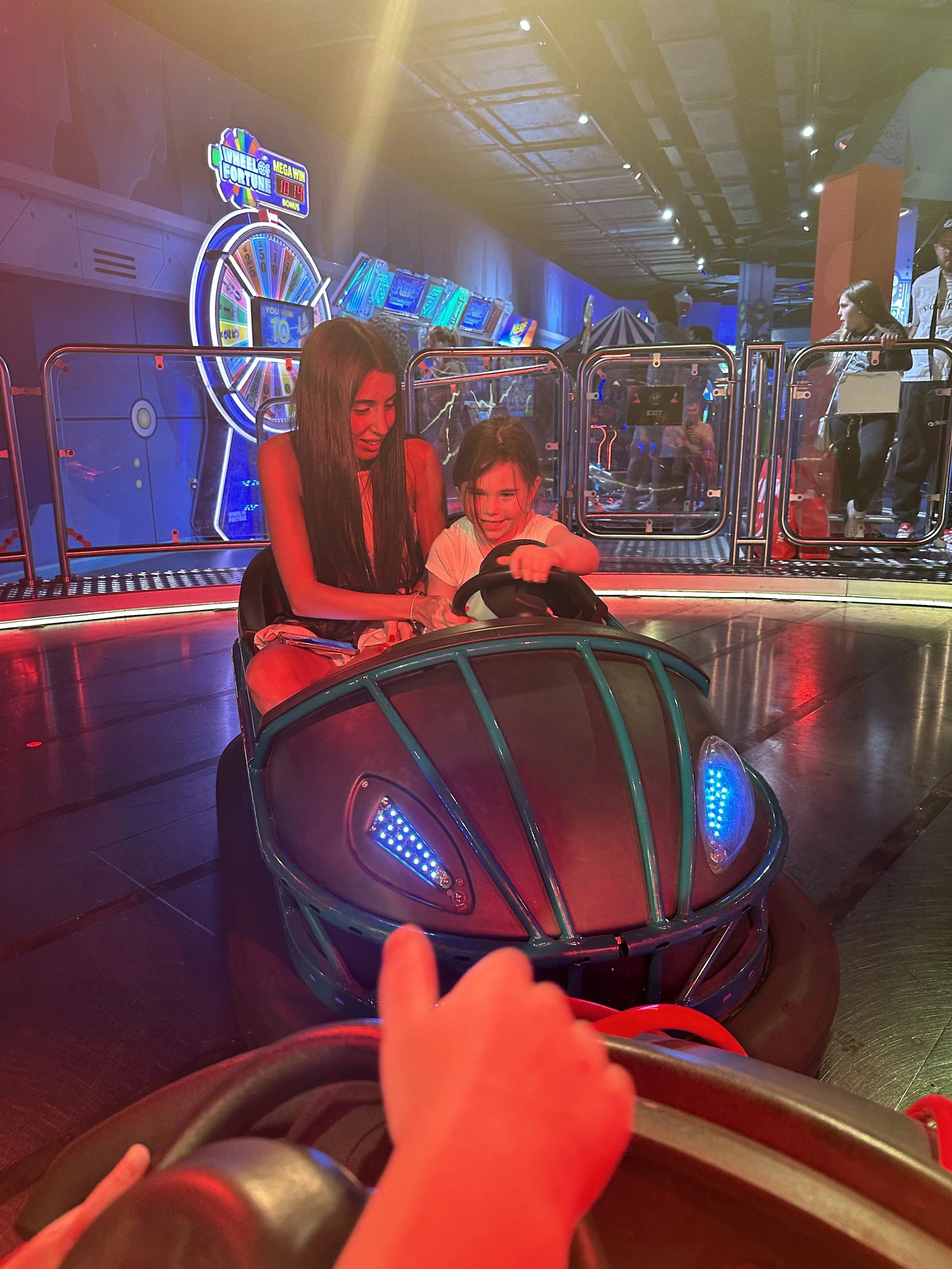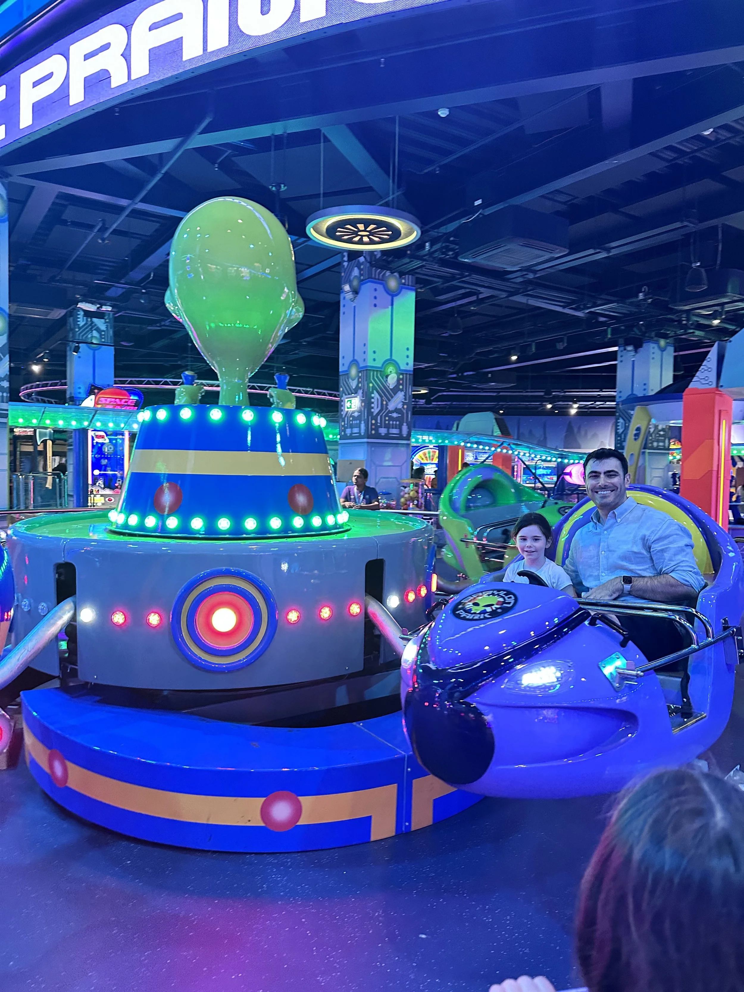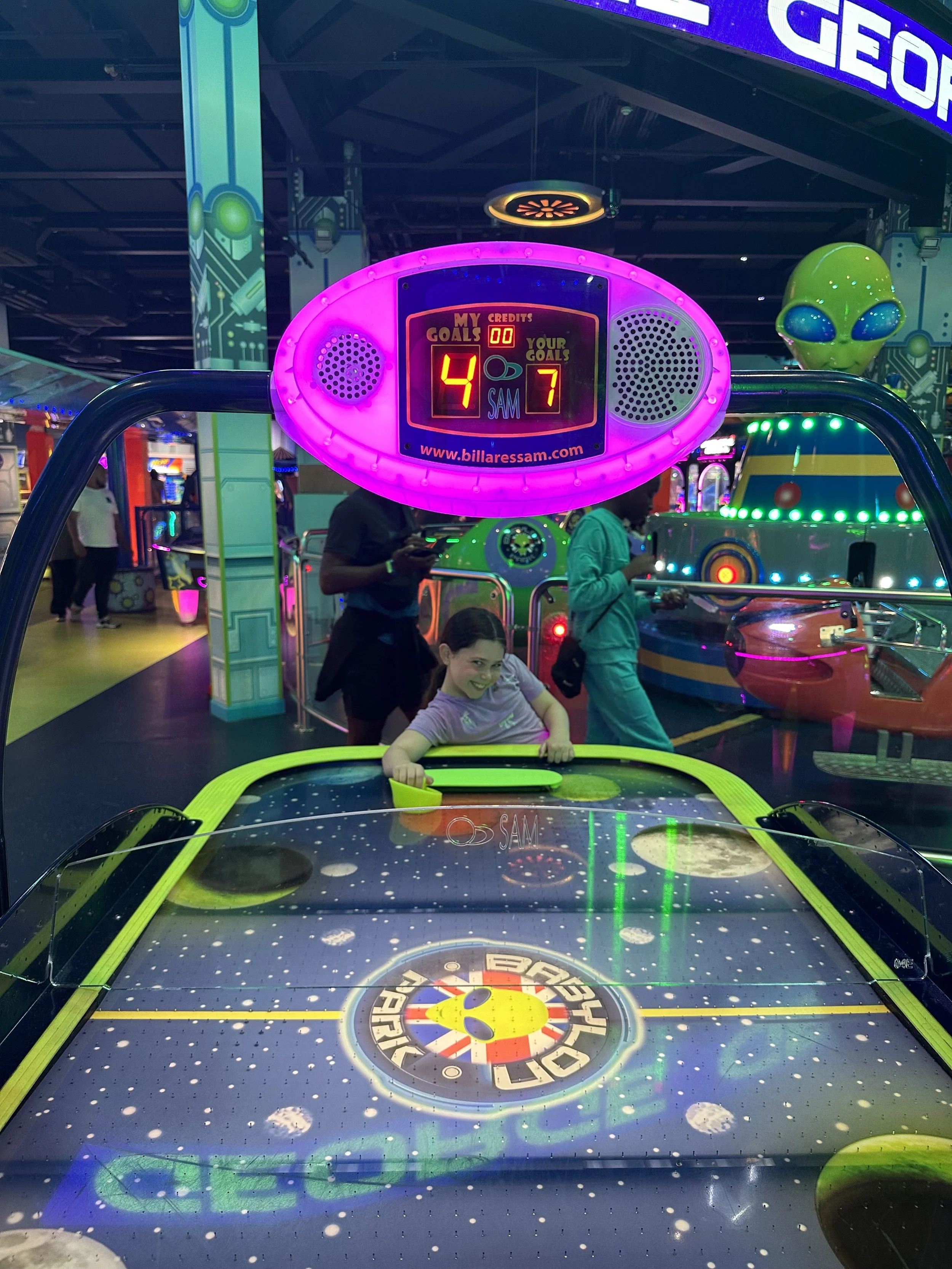 Once in the cab we headed to Camden Market. No, we weren’t exploring another food market. We had planned to go to the kosher restaurant in Camden Market for dinner, and found that there is an arcade called Babylon Park, so we figured we’d spend some time there before dinner. What we didn’t realize until later in the night is that Babylon Park is actually owned by an Israeli company and there are a dozen of them across Israel, including one in Tel Aviv that we went to several years ago. It was an indoor arcade with a couple of small rides. The kids loved it: an indoor roller coaster that we rode multiple times, bumper cars, a tiny Ferris wheel that Madeleine rode solo (like she was the only person on the whole thing), air hockey, and a few other things. It was fun and definitely worth it.