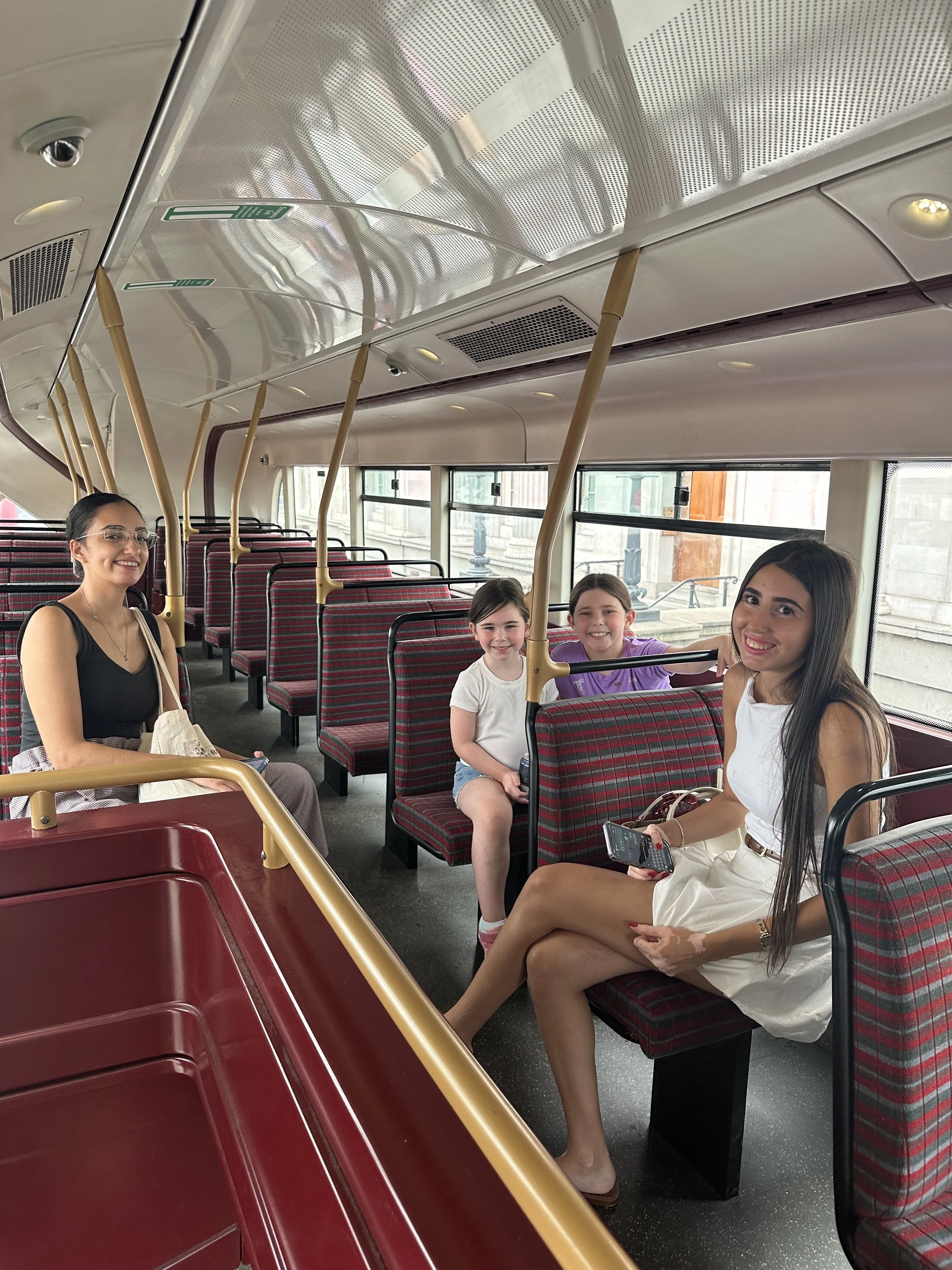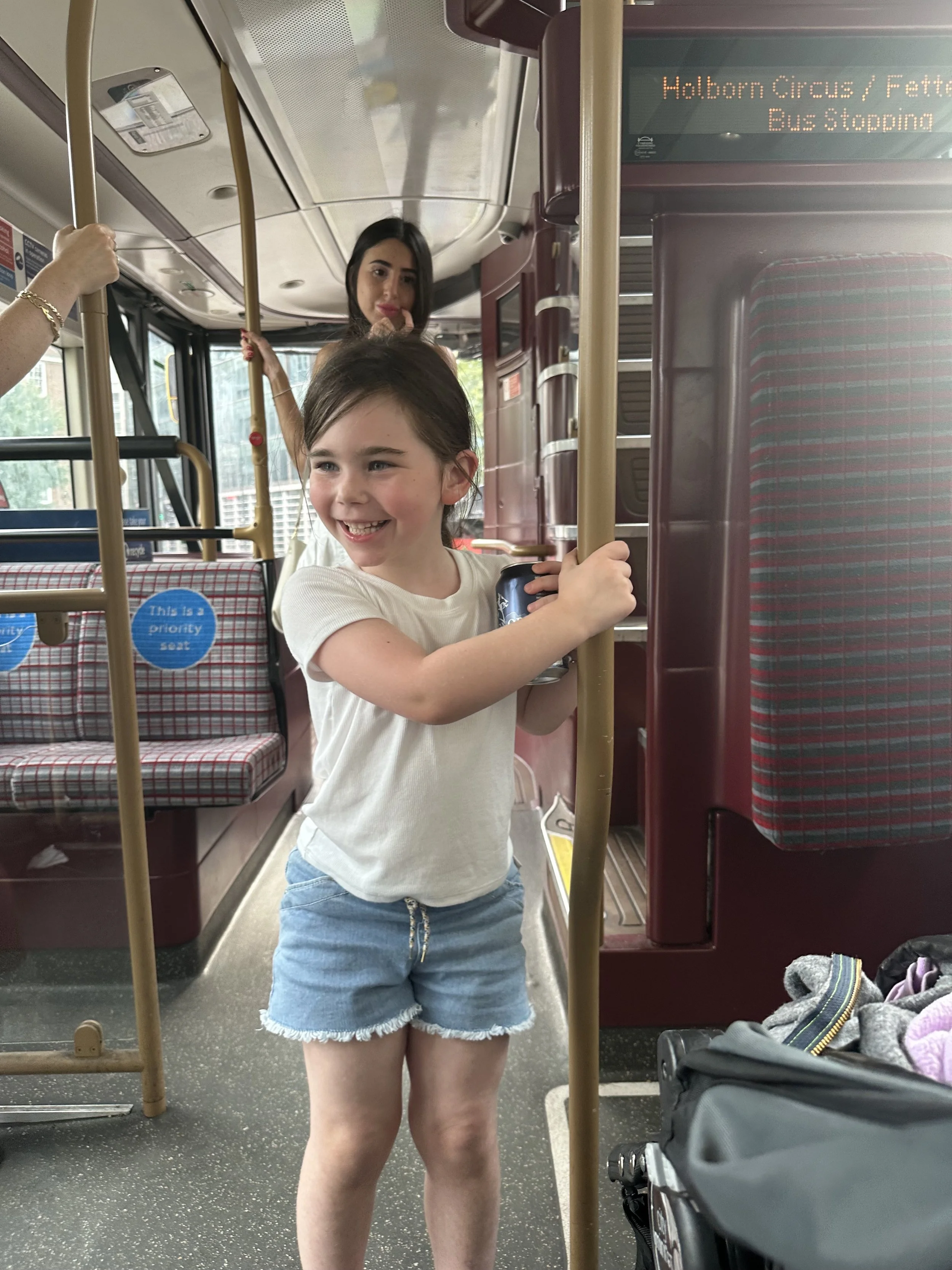 Instead, we decided it was the perfect moment for a double-decker bus ride, which the girls had been excited about. We rode the bus to a stop near the Twinings Tea store. It was fun, but also no air conditioning. At Twinings we picked up some tea and then walked back to the hotel.