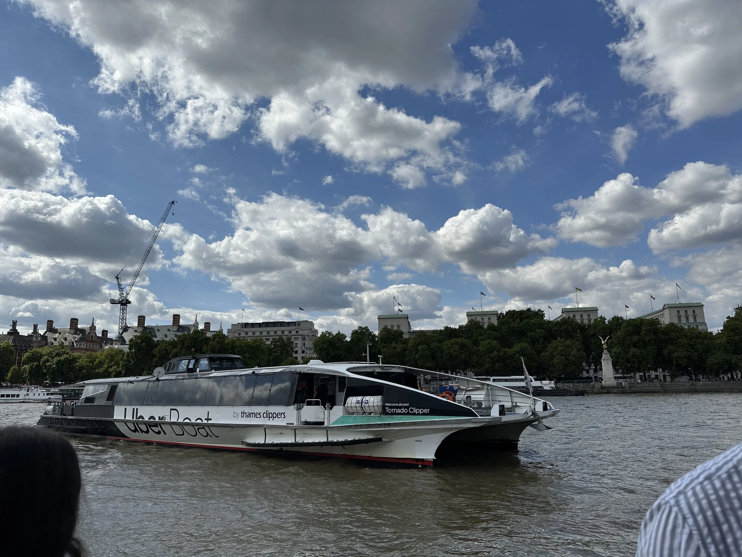 Next, we walked to the Uber Boat, basically a boat taxi on the River Thames. The boat was actually very nice (nicer than most Uber X you get in NYC) except, like everything else in London, there was no air conditioning (or air con as they call it, which makes it sound like a negative thing, which is maybe why they don’t have it). We rode it to the London Bridge stop, though we didn’t go to the bridge itself.