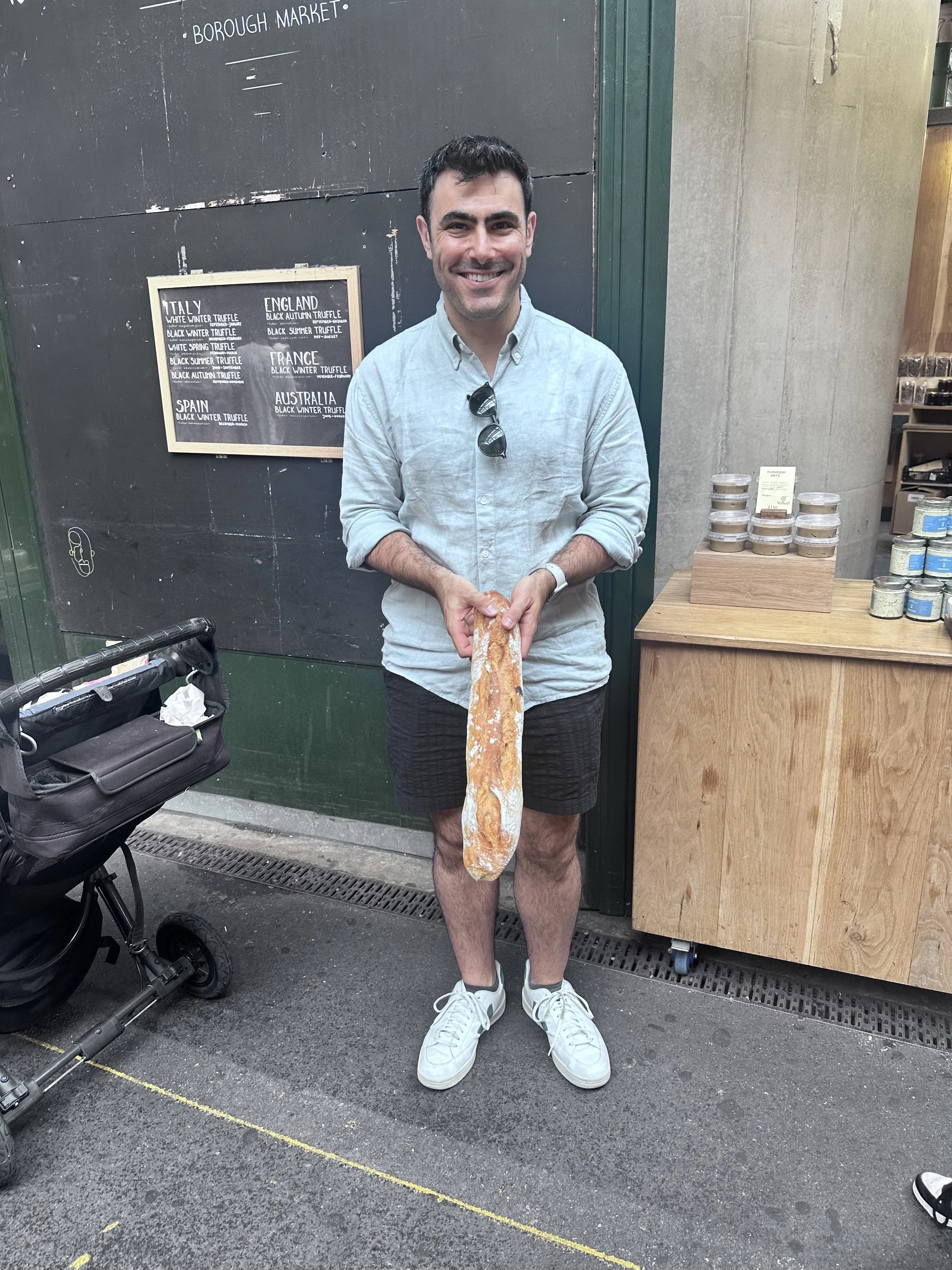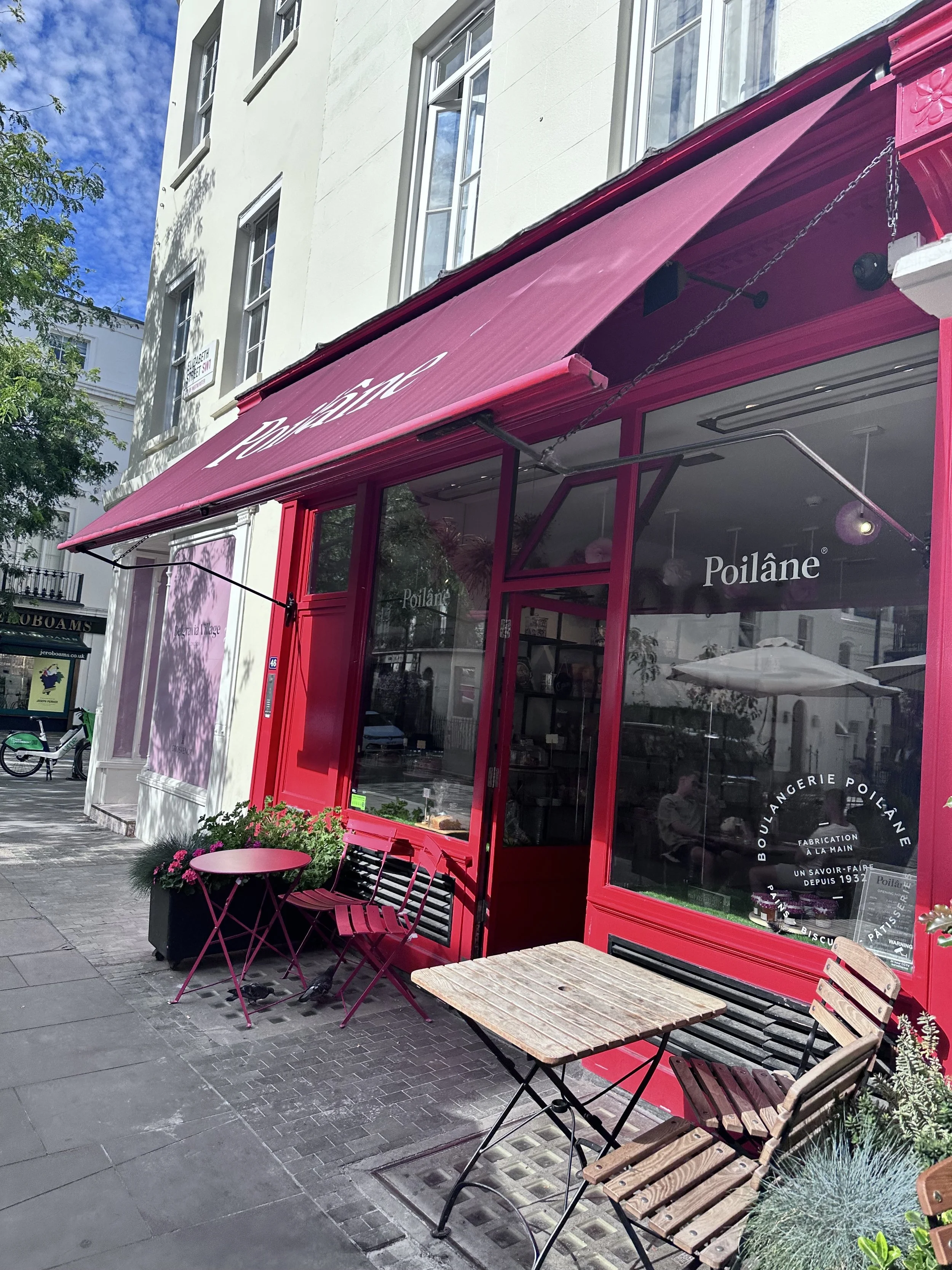 Tzvi finished his call and then we split up. I walked with Inbar about 15 minutes to find Poilâne, my favorite French bakery from Paris that also has a location in London (but nothing in the U.S.). We eventually found it in a lovely neighborhood and bought a few slices of bread and some scones. Then we took a cab back to the hotel.