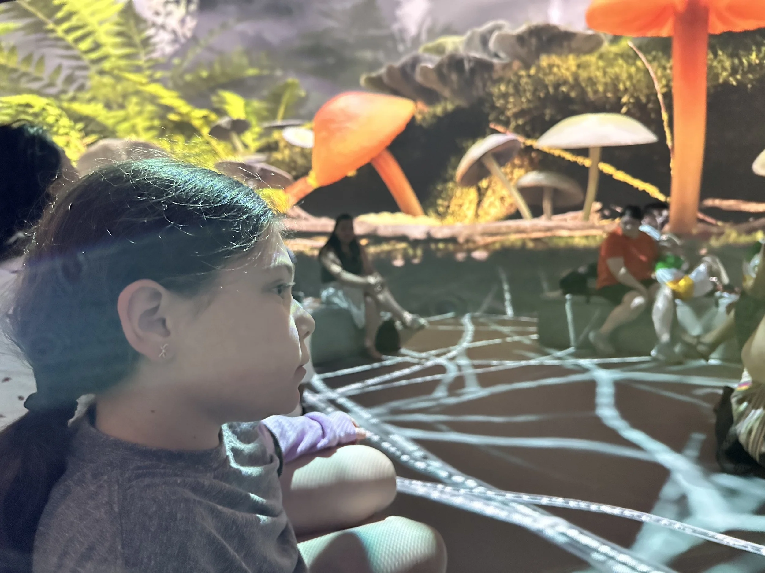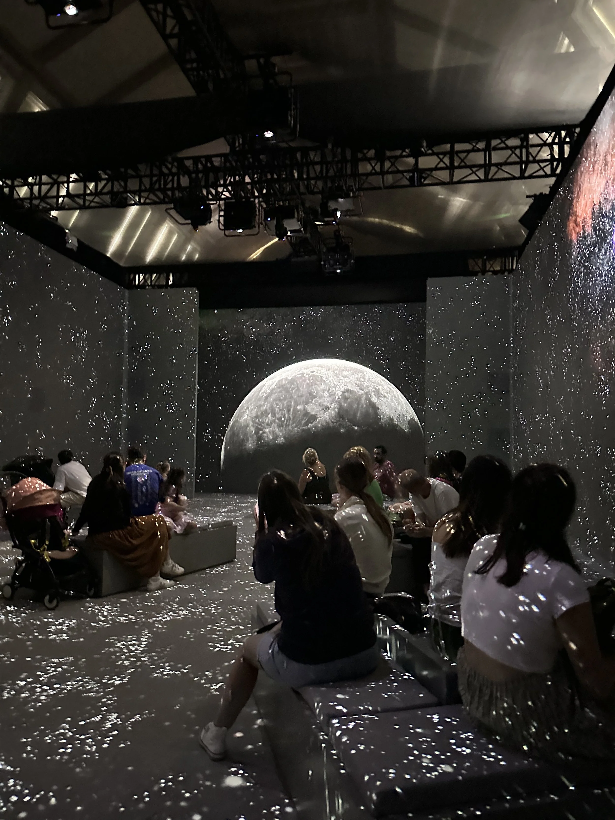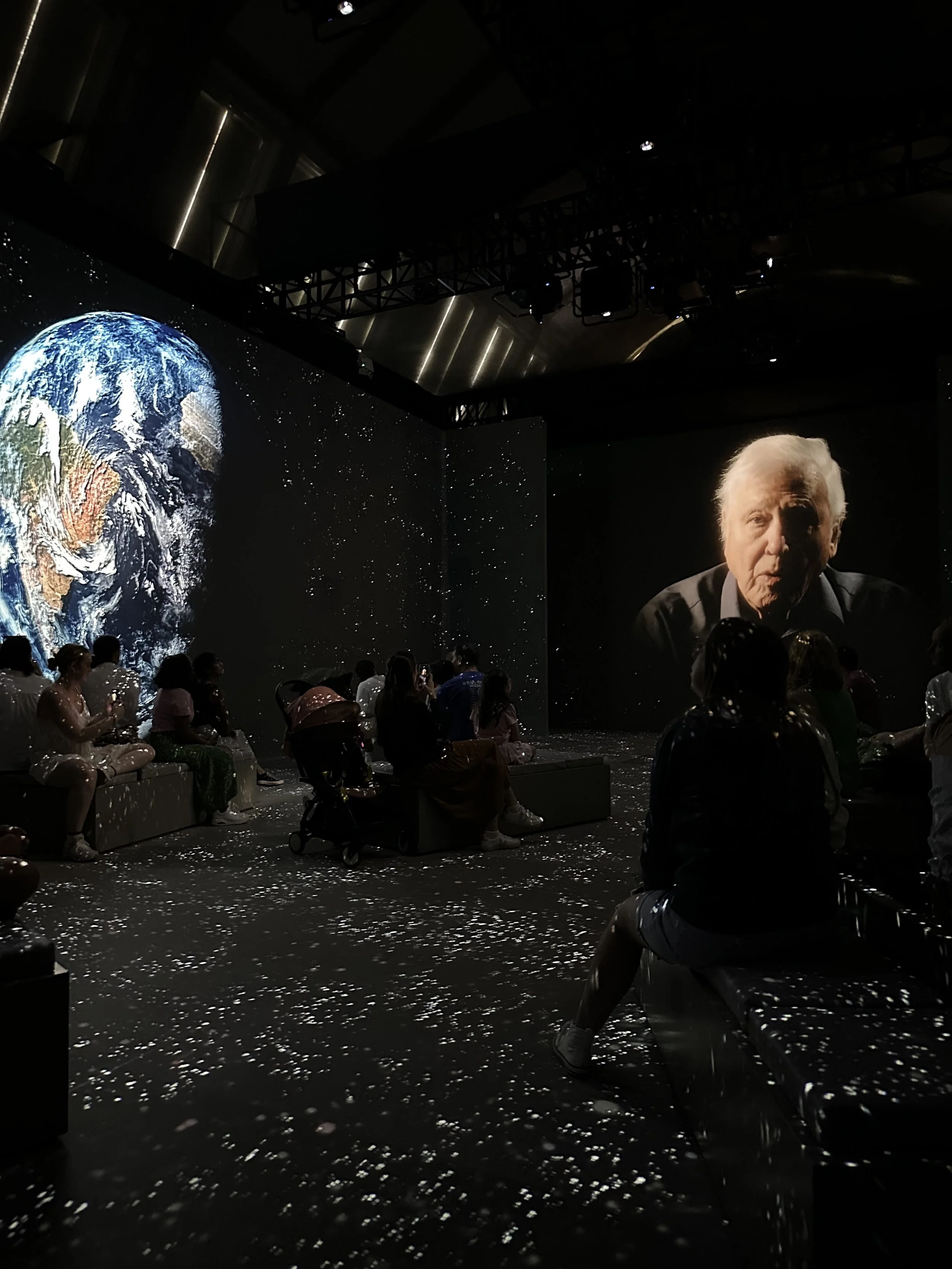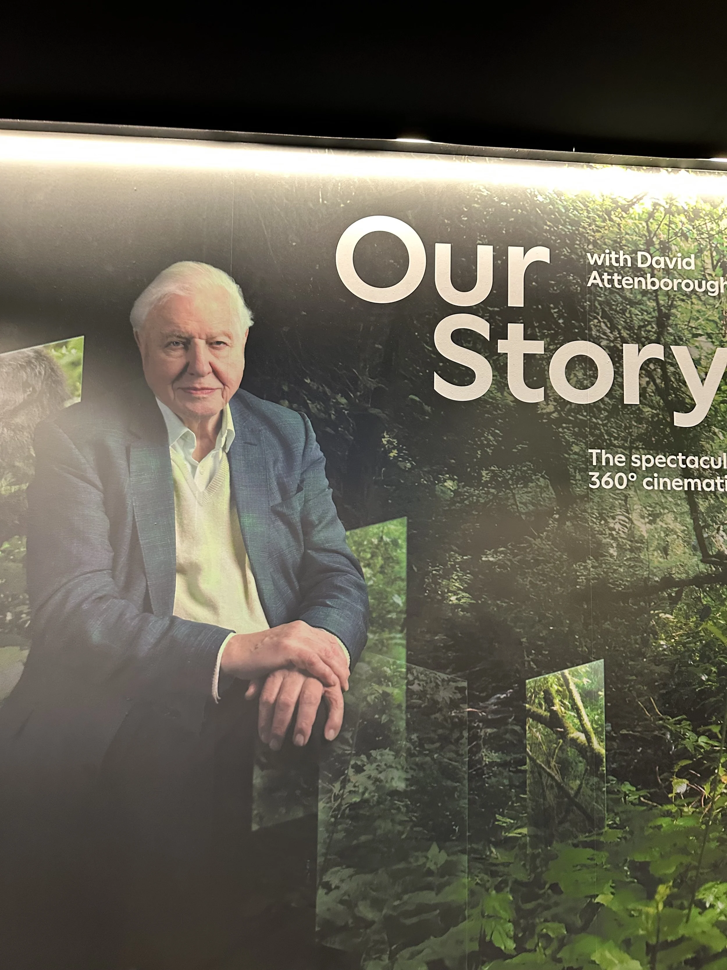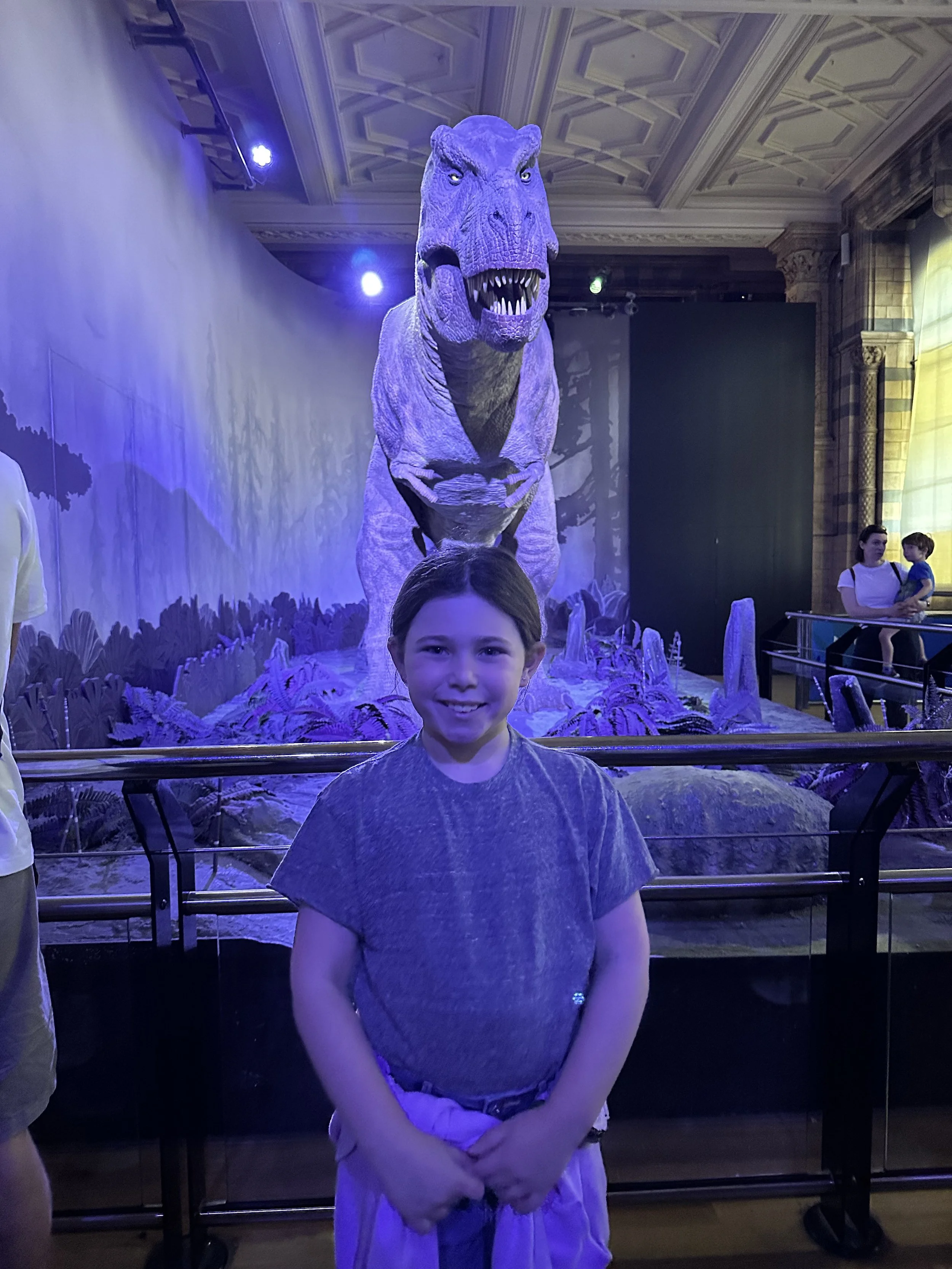 We had to be at the Natural History Museum by 10:00 a.m. for our special David Attenborough exhibit. The four of us (Shir went off to spend the day with her parents and sister) arrived at the museum and found a massive line, which thankfully we didn’t need to wait on as we checked in and were led directly into the museum. I’m not exactly sure how we found this exhibit [Tzvi: it’s in every ‘Here’s what to do in London this summer’ Instragram reel], but basically, it was a fully immersive screen exhibit about the history of the universe. You’re in a big room and all four walls are screens. It starts from space and the big bang and goes all the way to the present day, focusing on the Earth and the planet. At times it felt like the whole room was moving (it wasn’t). The exhibit emphasized the importance of taking care of our planet, though I couldn’t help thinking that disasters will always happen and Earth will eventually reset itself and kill off all of humanity in the process. The message, I guess, is that we should do our best until that happens. Yeah, an uplifting start to the day.
