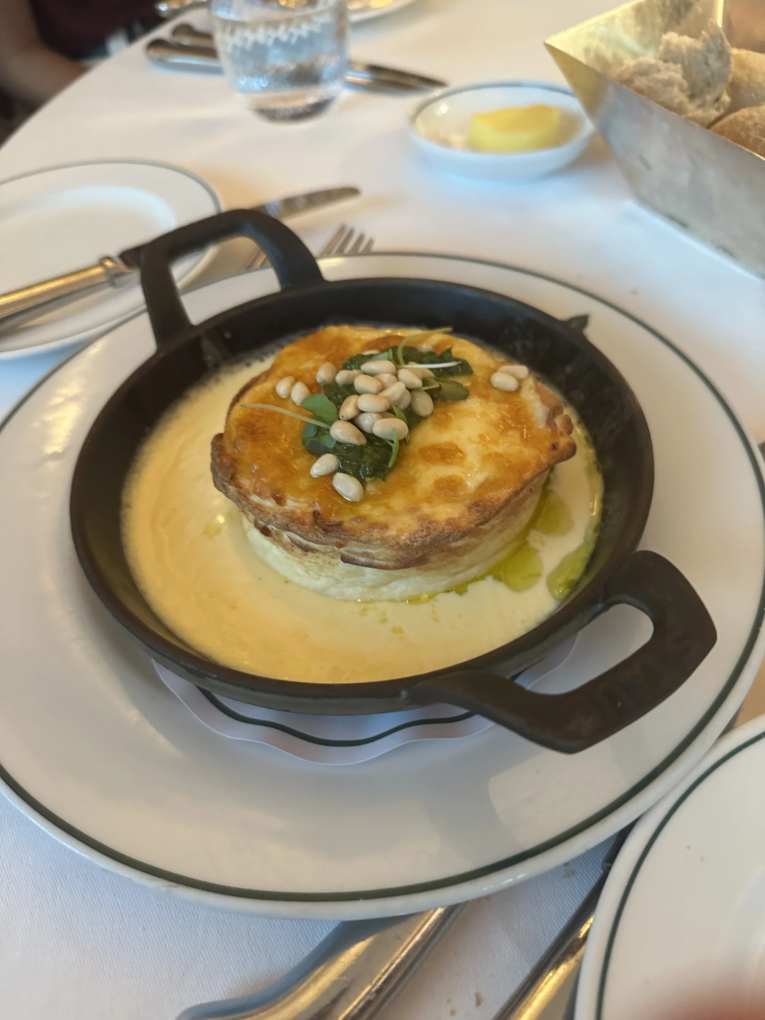 We changed and headed out to dinner at 5:30 p.m. at The Ivy. The restaurant was beautiful, and we had a lovely corner table. I think it’s a famous old restaurant that’s been there for over 100 years. Our waiter was fabulous (which he also told us), but the service was… chaotic. Drinks never came, and the food took forever. We needed to be at the theater ten minutes away for a 7:30 show. By 6:20, we still hadn’t received our food. Eventually, they brought appetizers and food all at once. Tzvi and Inbar shared a cheese souffle, which looked gross to me but they said was good, and we all shared a basket of fried zucchini. I had a vegetable curry and Tzvi had a vegetable risotto. The food itself was actually very good, but we couldn’t get dessert because we had to leave. The waiter apologized, saying they were chaotic that night. Oh well.