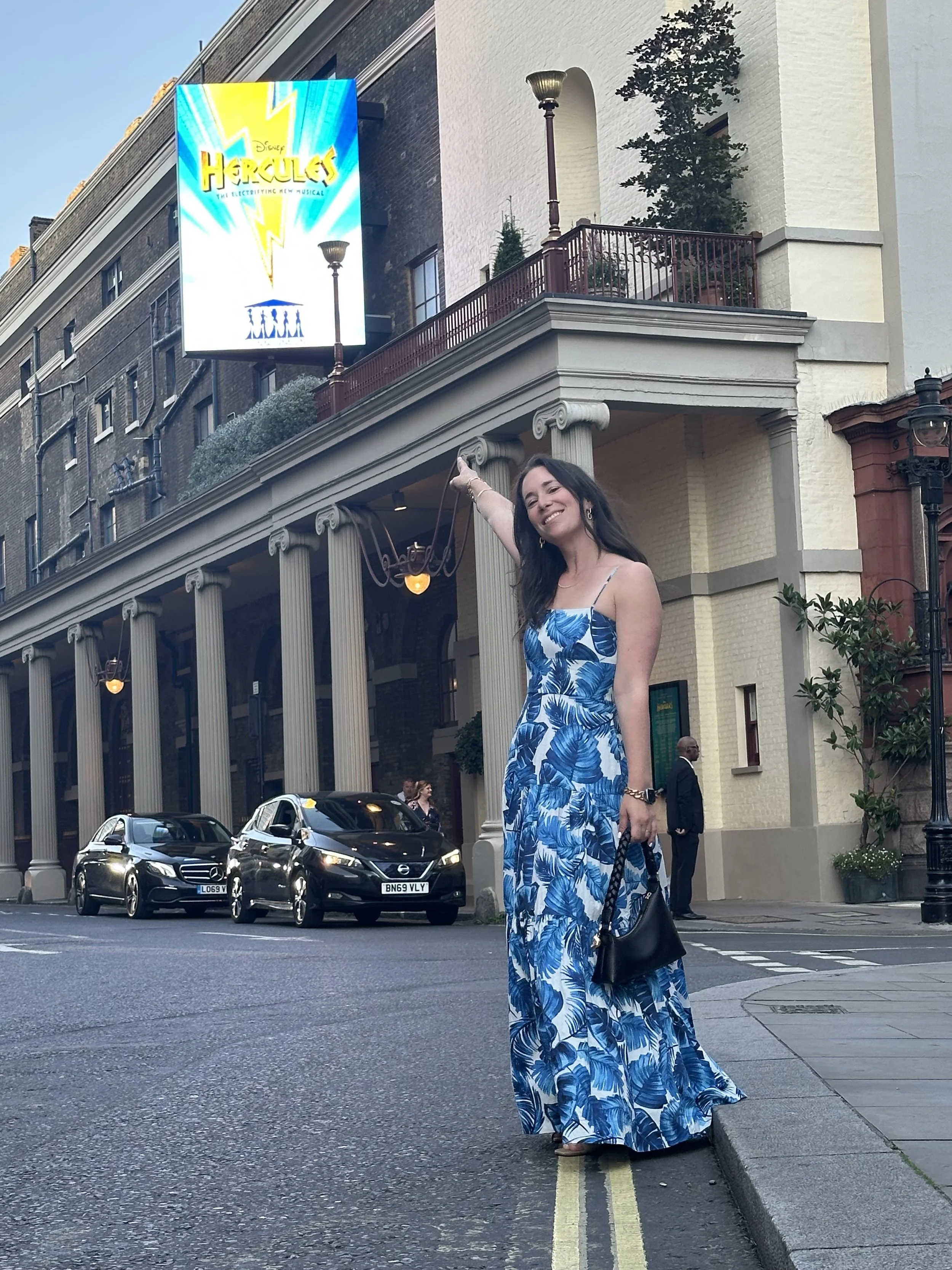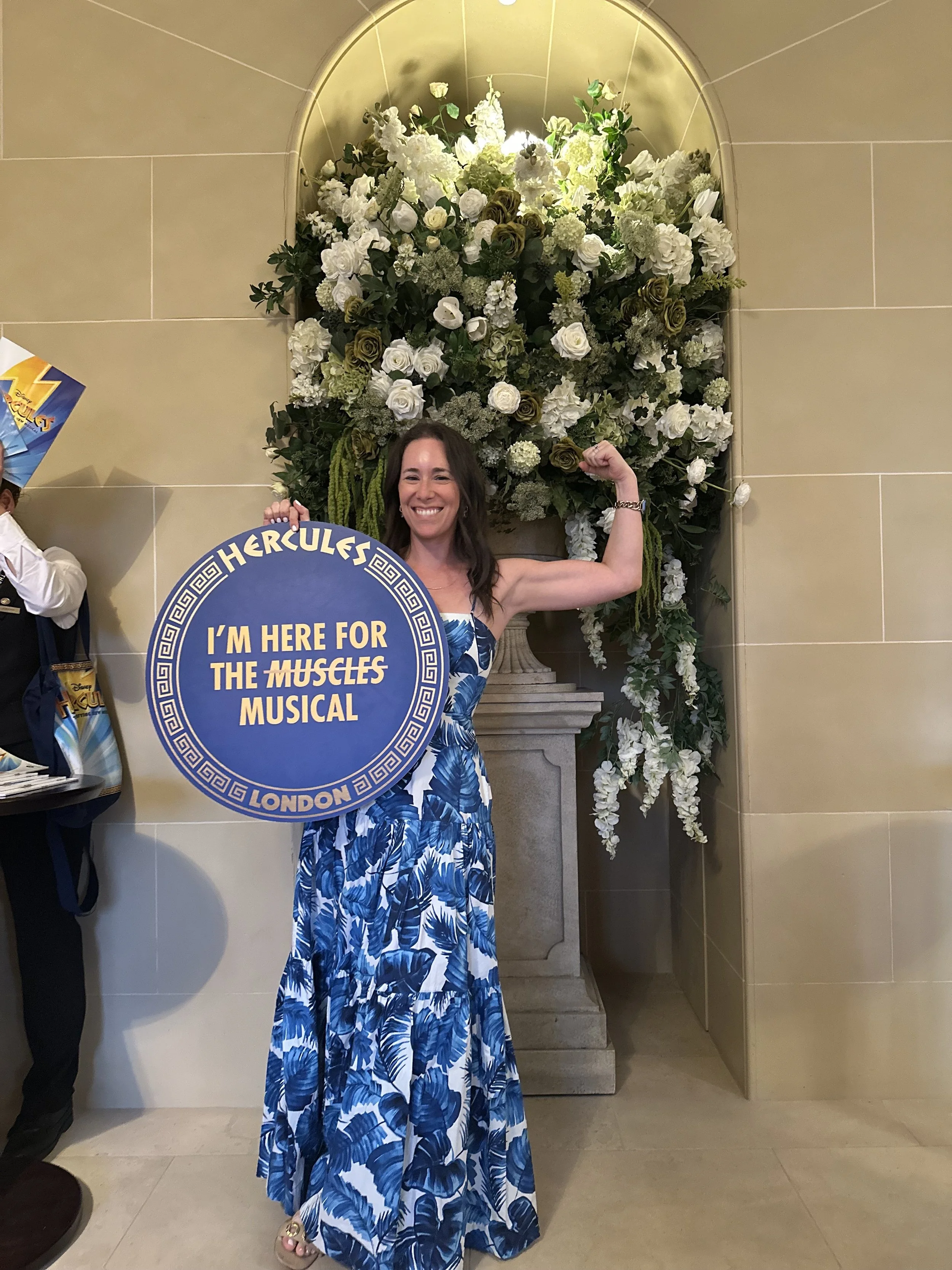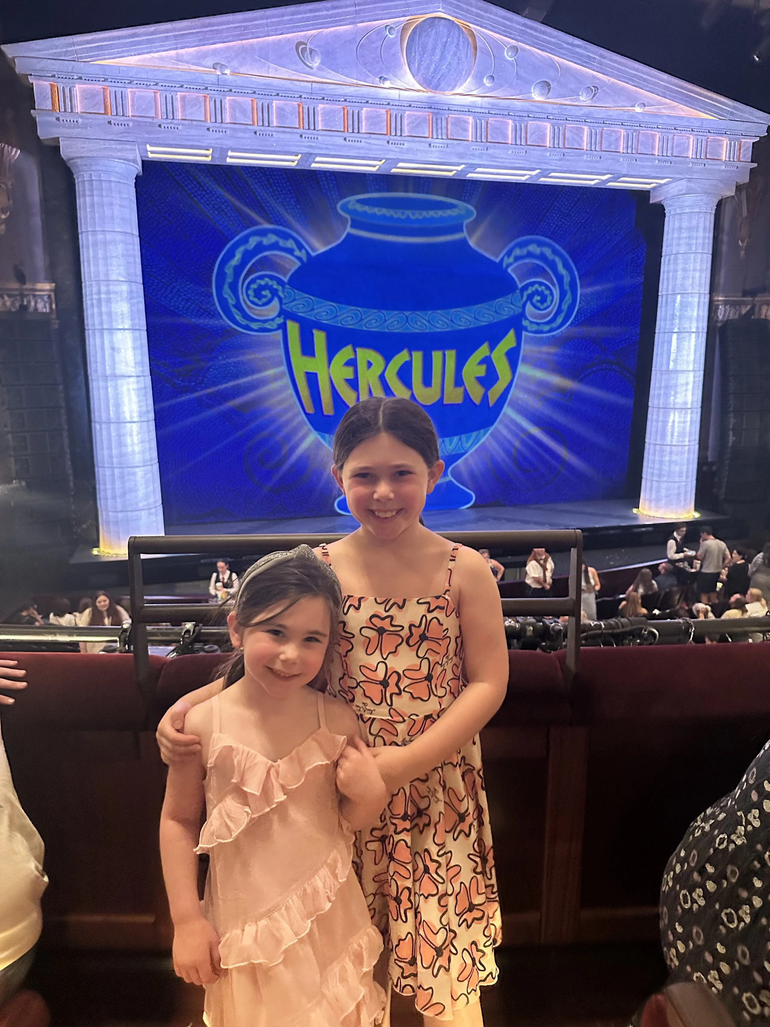 We finally arrived at the Drury Lane Theater to see Hercules: The Musical, which I had been excited about ever since seeing the Hercules musical on the Disney Magic Cruise in 2000. This version opened just a few months ago, and I would be lying if I said it wasn’t part of the reason we chose to have our holiday in London. Inside, I bought a tote bag and we took our seats. The girls did really well—Madeleine was a little antsy, but overall fantastic. The show was fun; you just have to disconnect it from the movie version because it’s so completely different, but it was very well done.