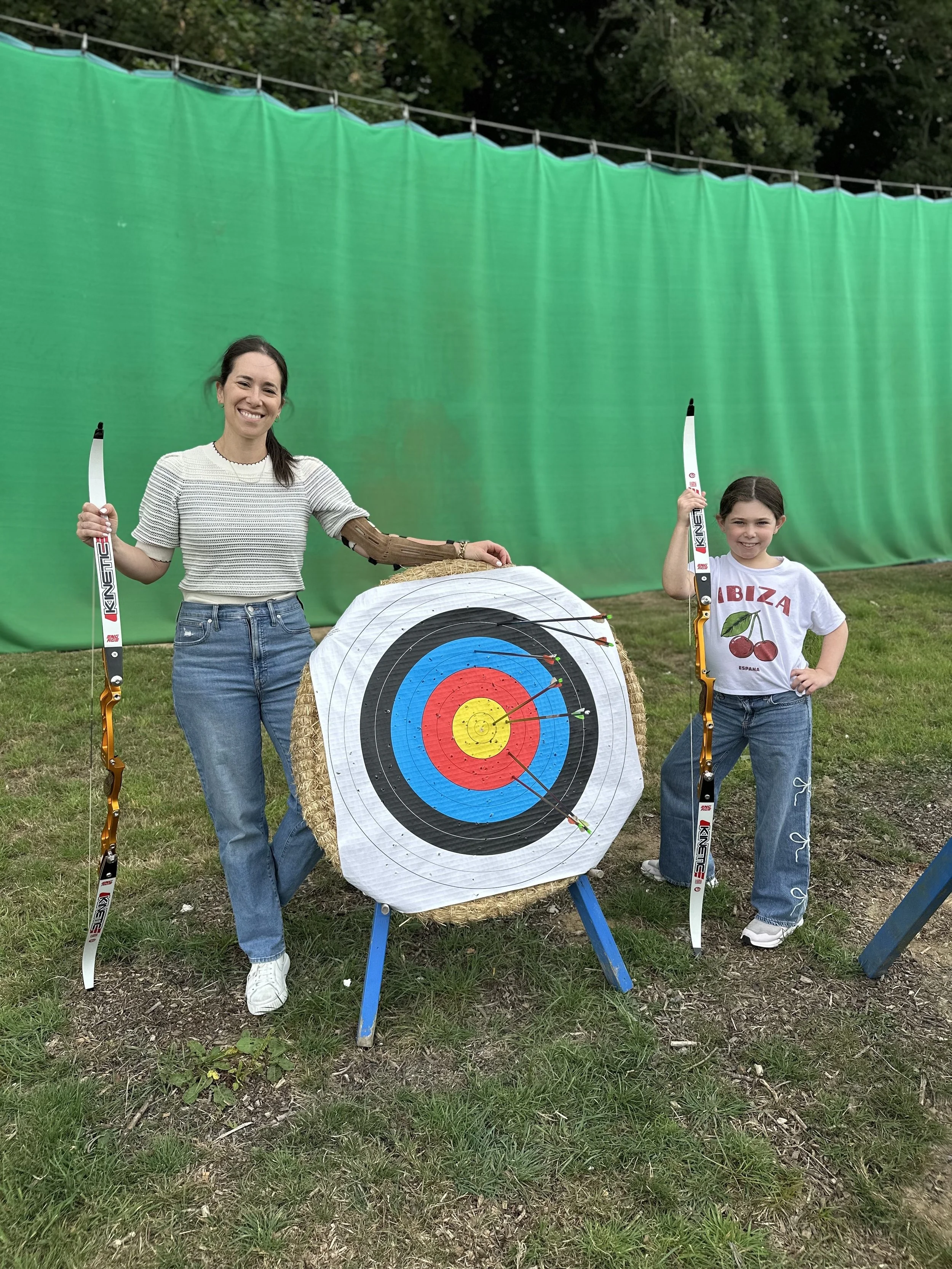 By noon, it was time for archery. Hallie and I did the lesson together, and it was both fun and slightly painful. We wore armbands, but the bowstring still managed to leave a few marks. The instructor was great, and Hallie really loved it — I think she felt very Katniss Everdeen.