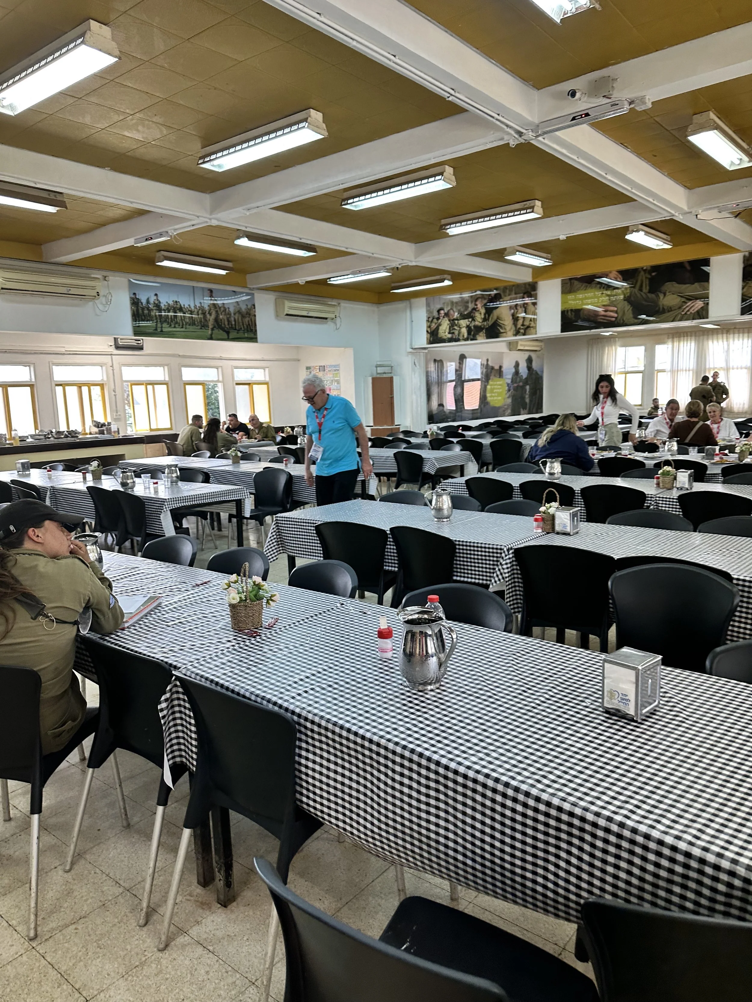 From there we drove about 45 minutes to the west bank to the Efraim Brigade and visited with the Panther Battalion. They set up so nicely and gave us all hats and keychains, and of course cake and drinks. Anyway, The West Bank is divided into 6 brigades, and each has an Area A city, so this one’s is Qalqilya, which is just steps from Netanya and is where the 2nd intifada started with the Pesach bombing. The Panther Battalion was established in June 2023 and is actually a co-ed Battalion. It was decided that this area needed a permanent Battalion, as opposed to Battalions that came in and out for a few months and then would switch. Having a Battalion that really knows the area well is more worth it.