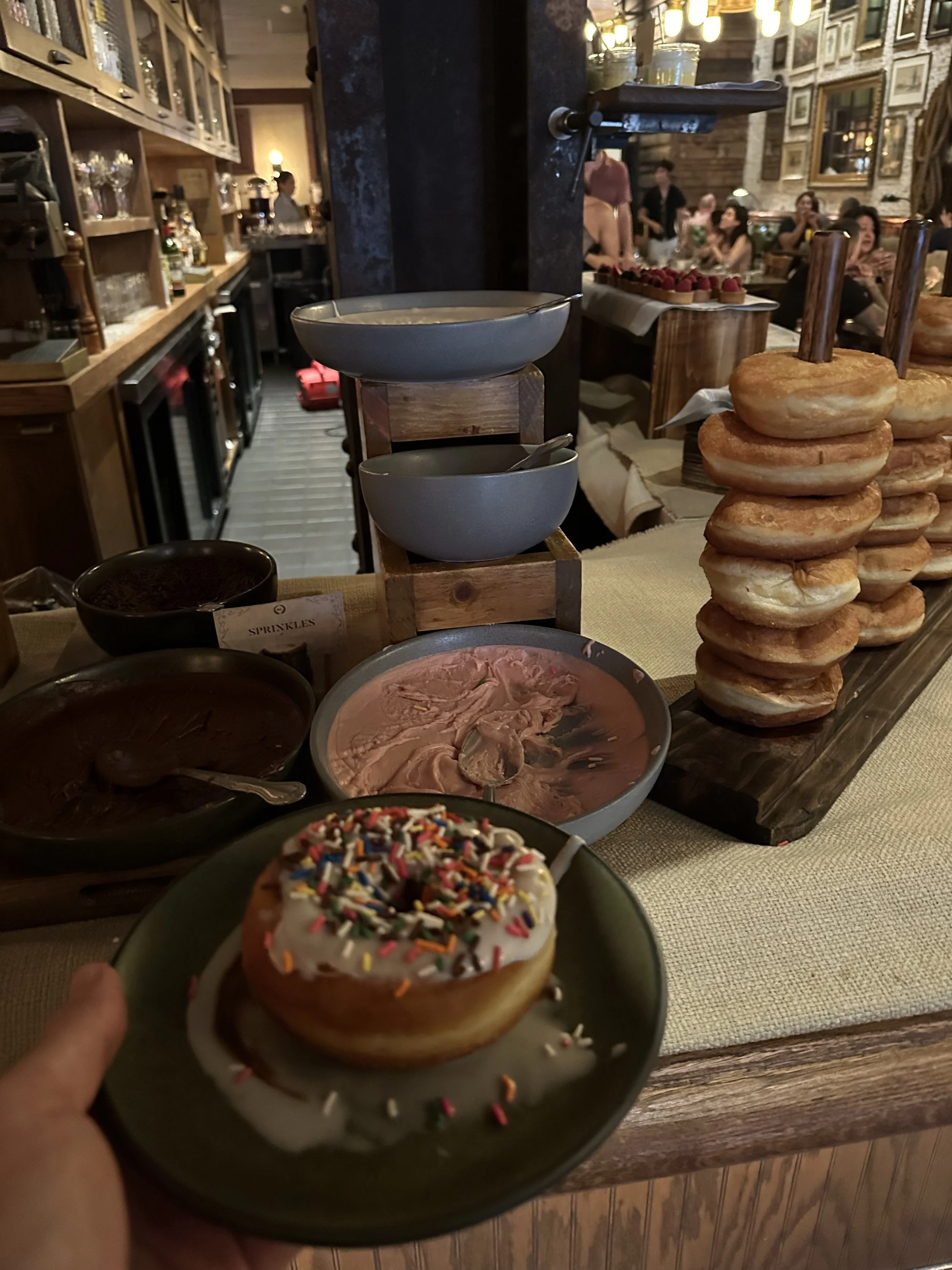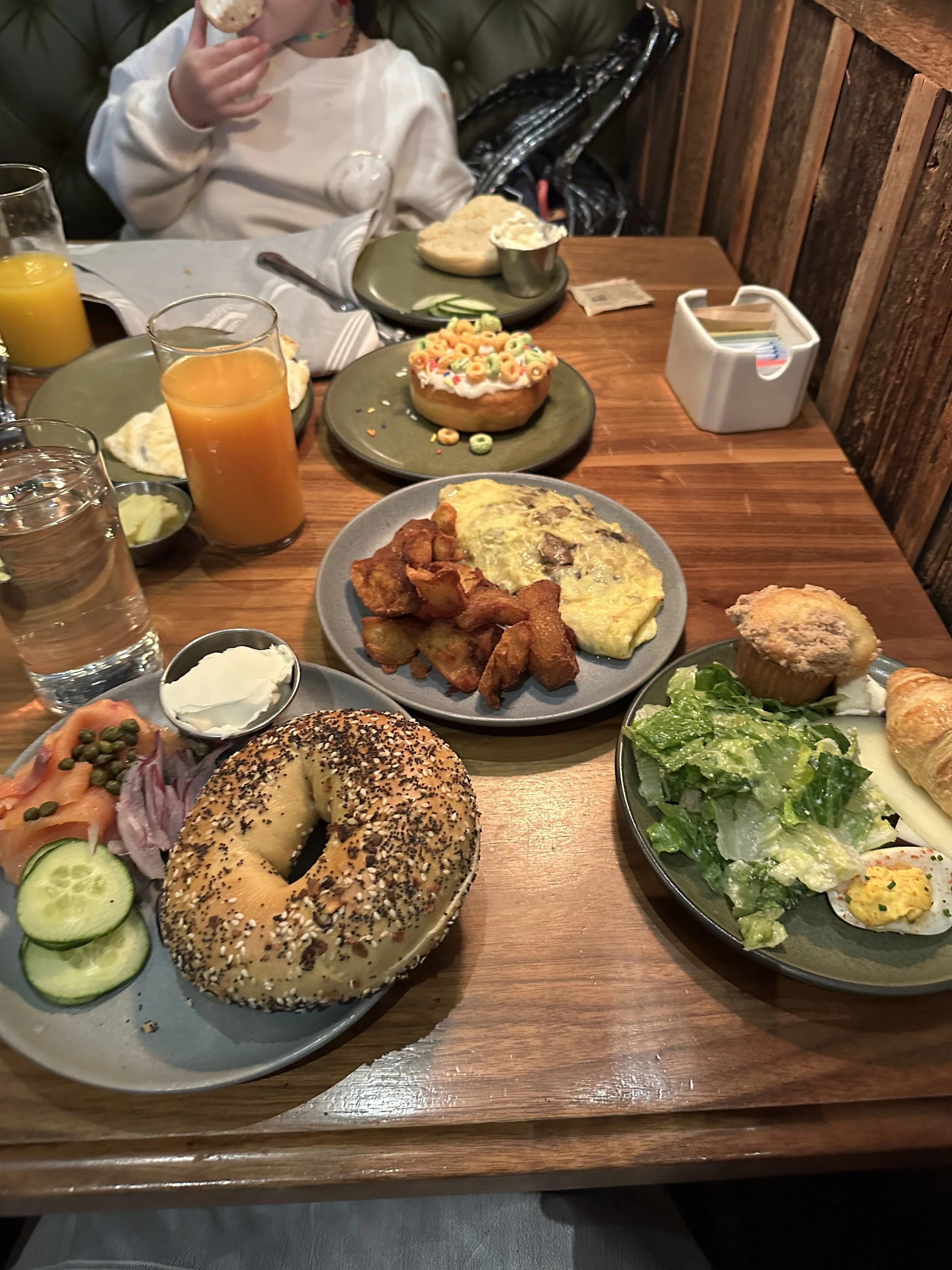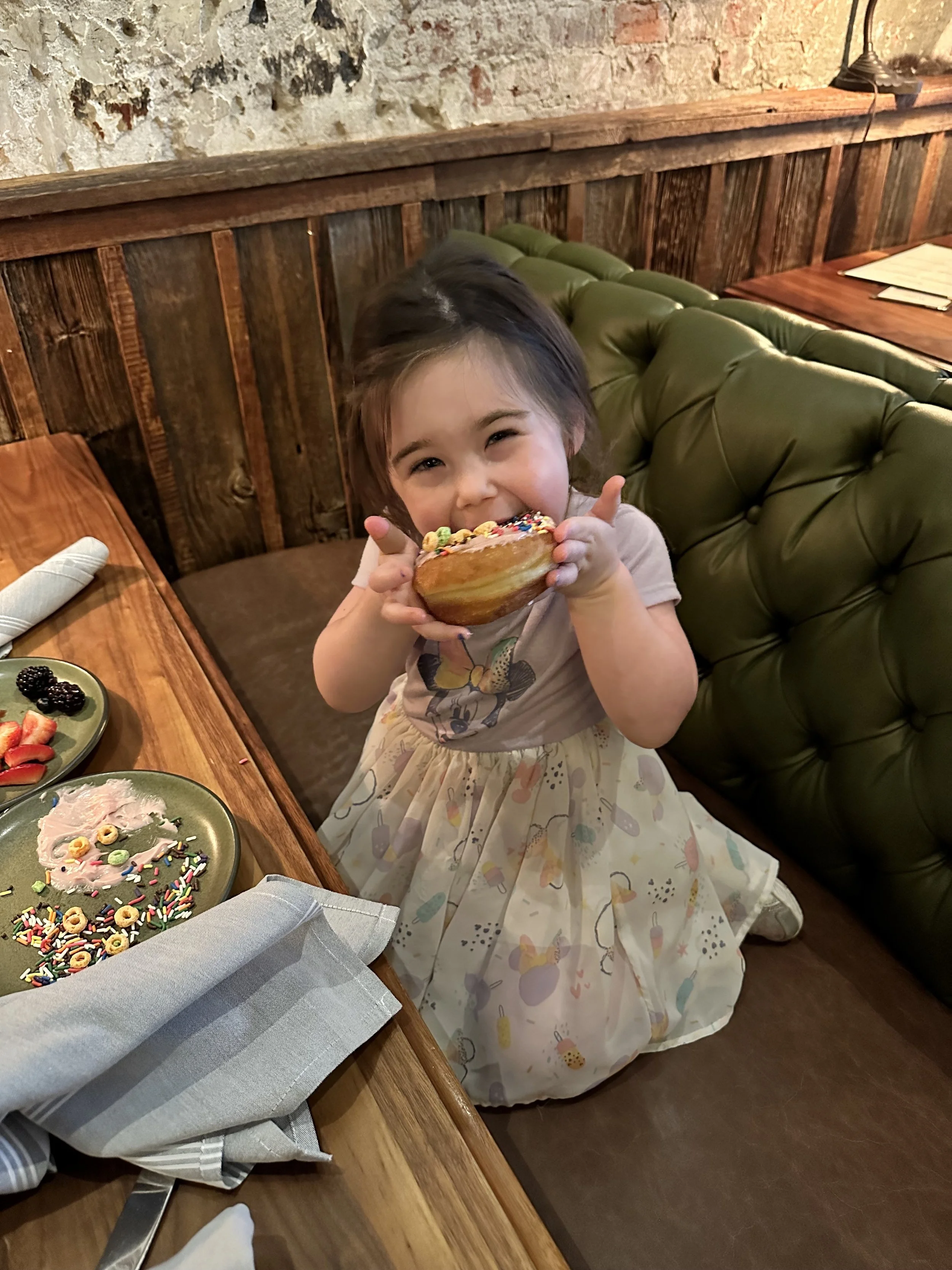 Bruch was at a restaurant called Harp and Crown. The place is very cool – it’s an older space that’s been transformed into a beautiful, elegant and refined restaurant – think: vintage luxury. On Sundays they offer an all you can eat buffet brunch for $35! It was a lavish spread and probably would’ve been $60+ if it was in New York. There were pastries, an omelet station, a bagel station with cream cheese, lox, etc., the crispiest fried potatoes ever, waffles (but not just basic buffet waffles – like really delicious waffles), tomato focaccia, cereal, yogurts, salads, mac and cheese and more. The best part was the donut station where you took a donut and did your own frosting and sprinkles. It was great and everyone enjoyed. The kids even managed to go an entire meal without an iPad.