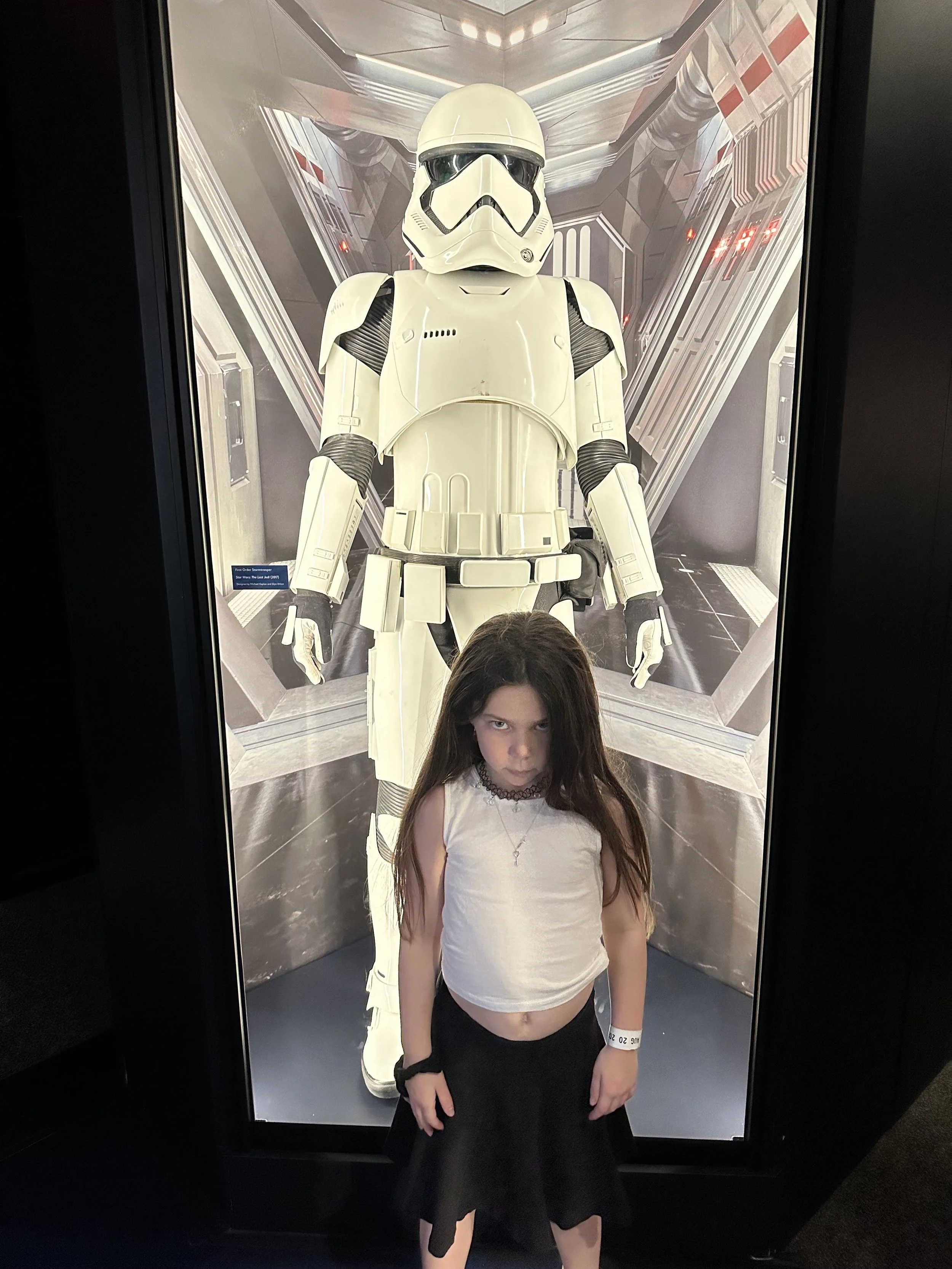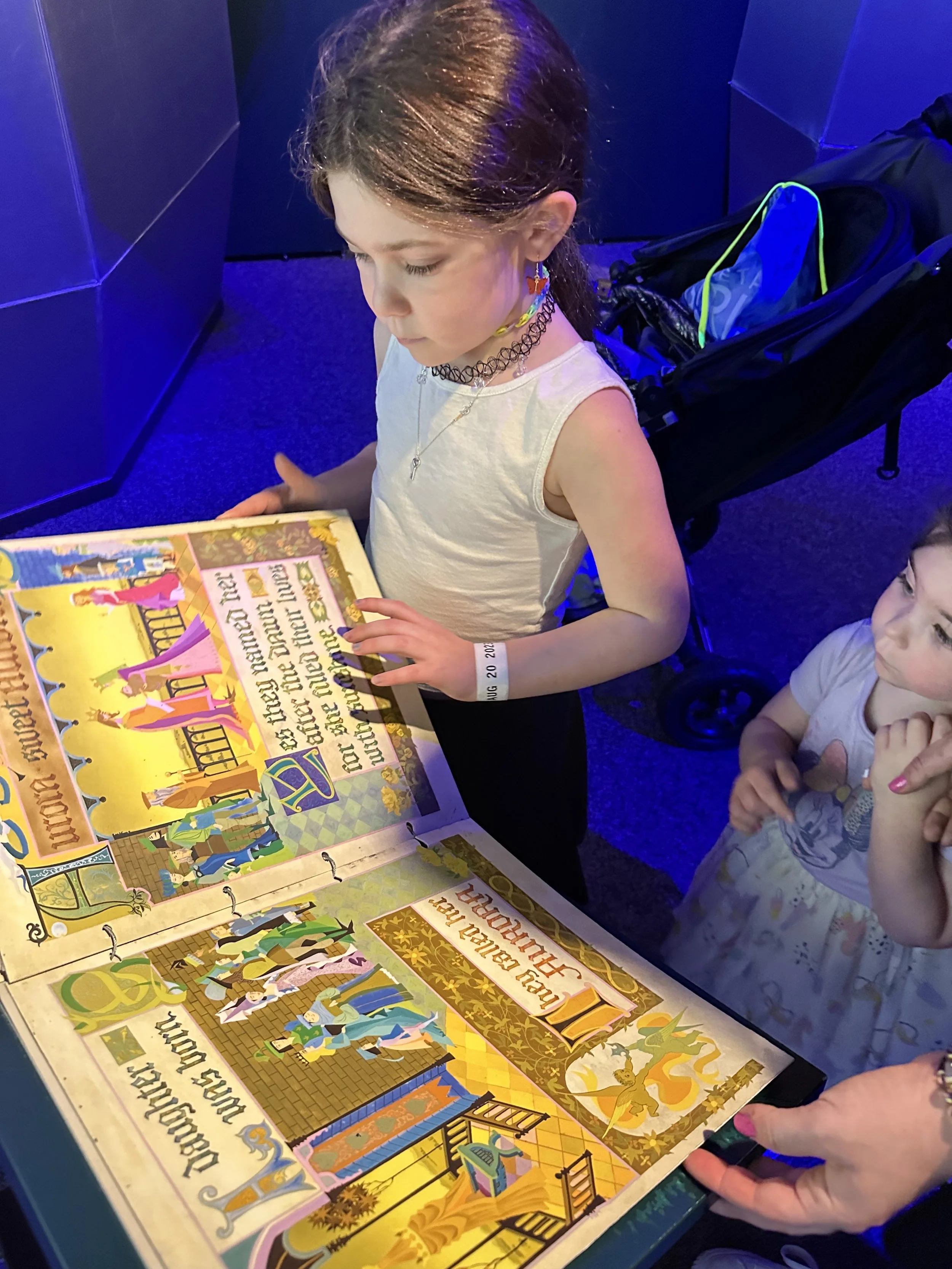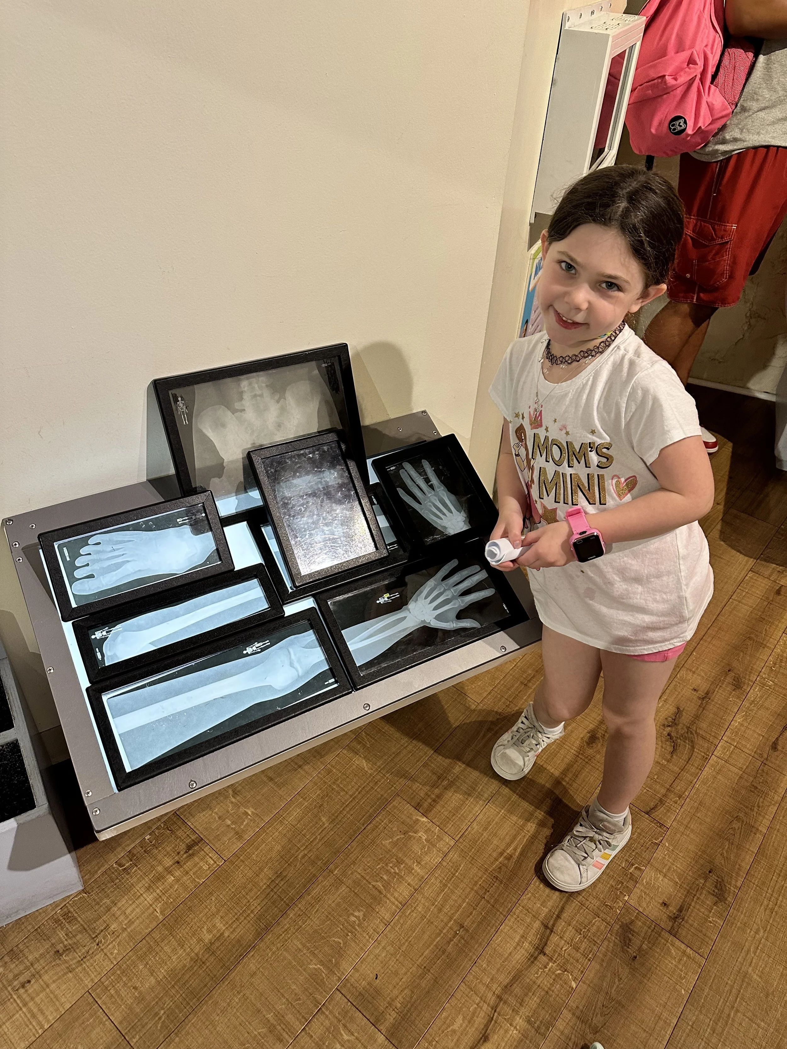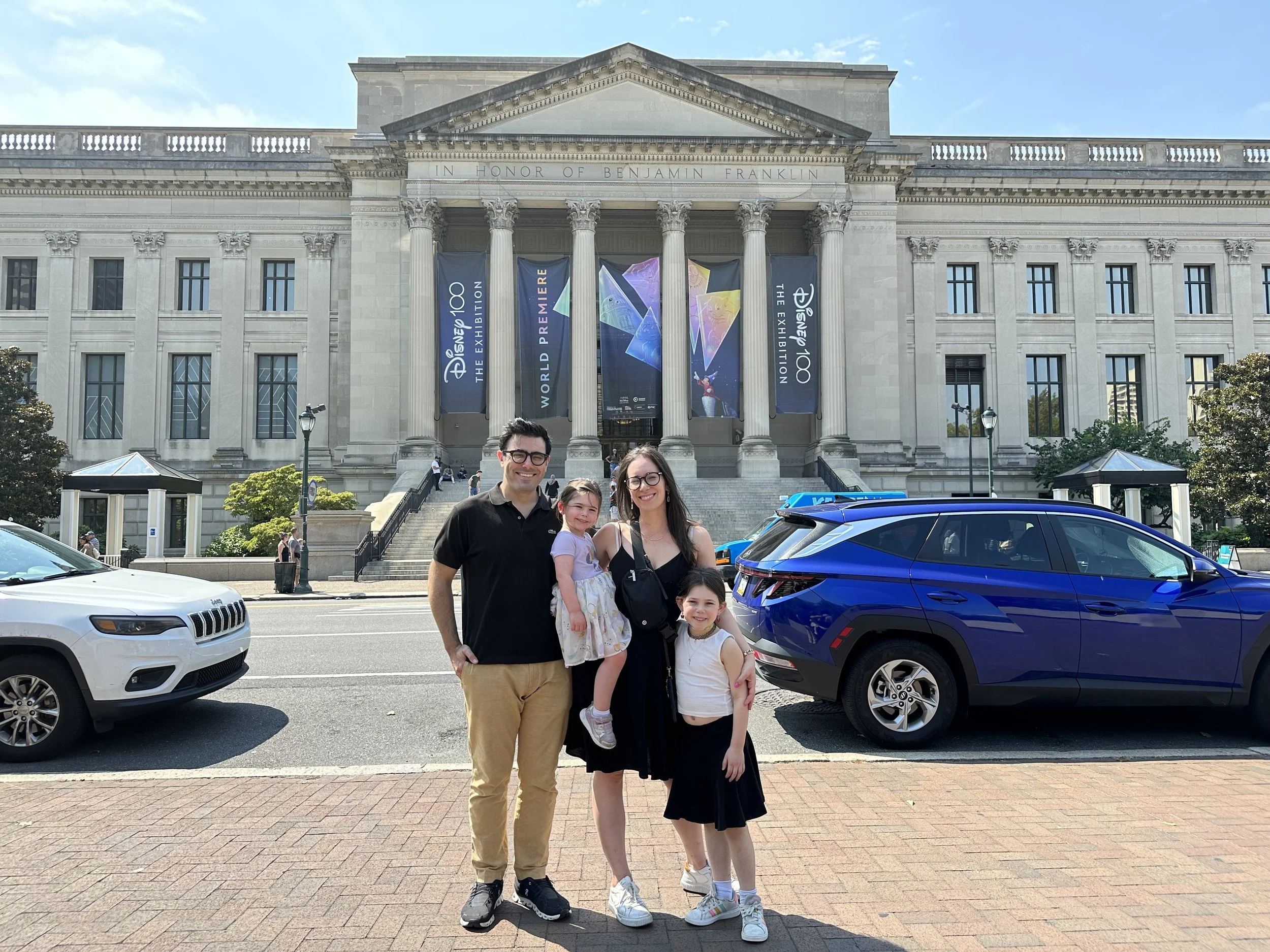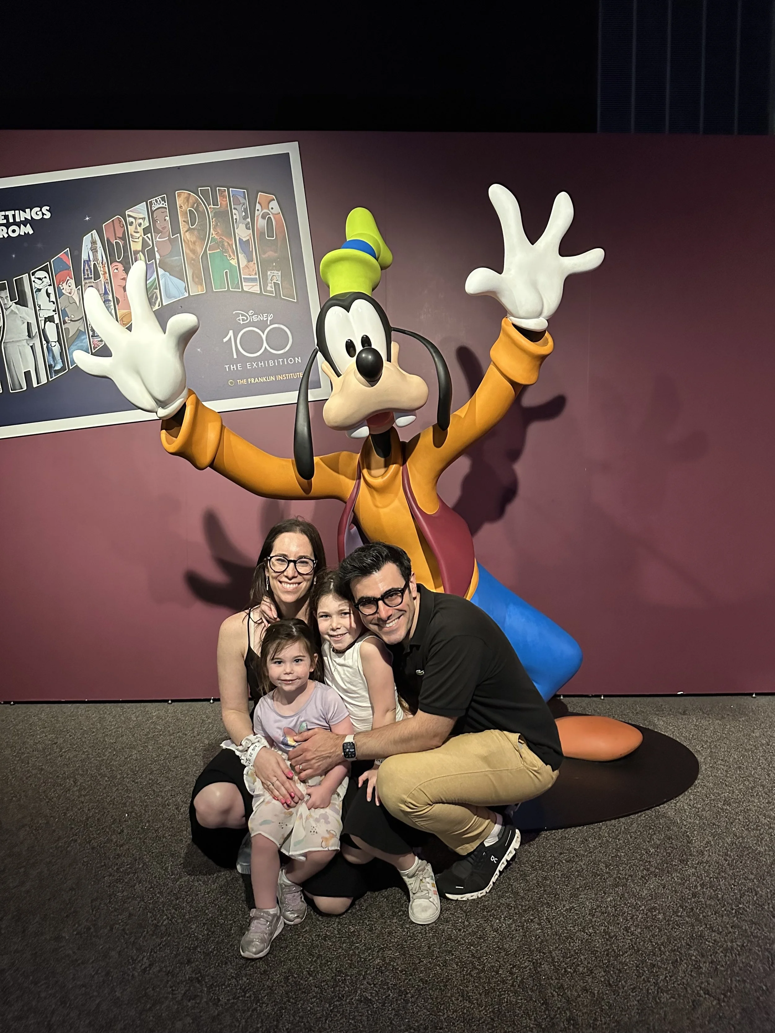 When we were done there we Ubered to the Franklin Institute. We took the kids to the Franklin Institute last time we were here in May 2021, but this time they had the Disney 100 exhibit, celebrating 100 years of Disney Magic. It was a walk through exhibit starting with the 1920’s all the way through today. It was cute. There were lots of props and costumes and different interactive parts where you could watch and listen to things. There was a screen that was playing We Don’t Talk About Bruno and you could select different audio tracks to hear the song in two dozen different languages. They even had Hebrew, which everyone enjoyed.