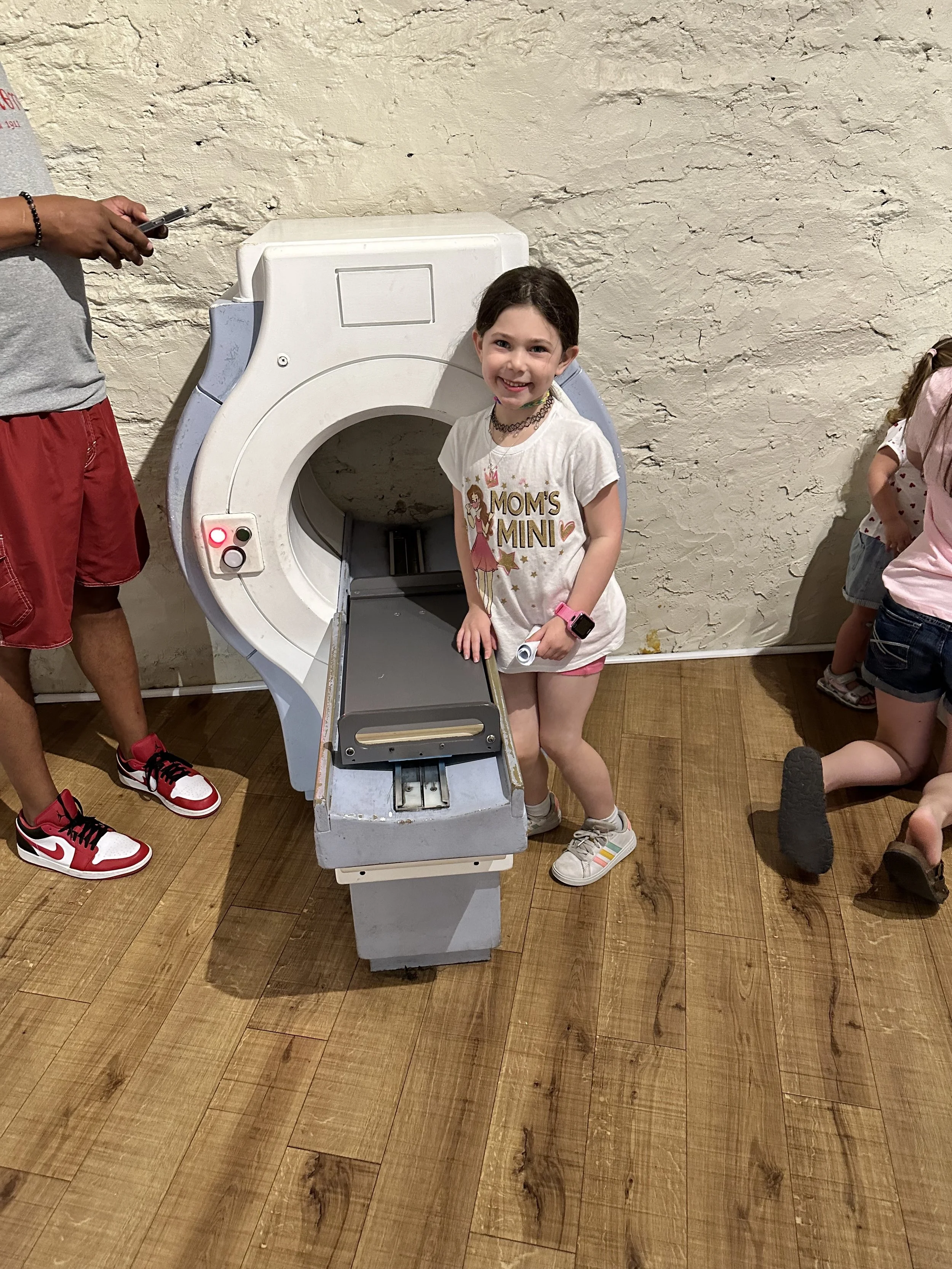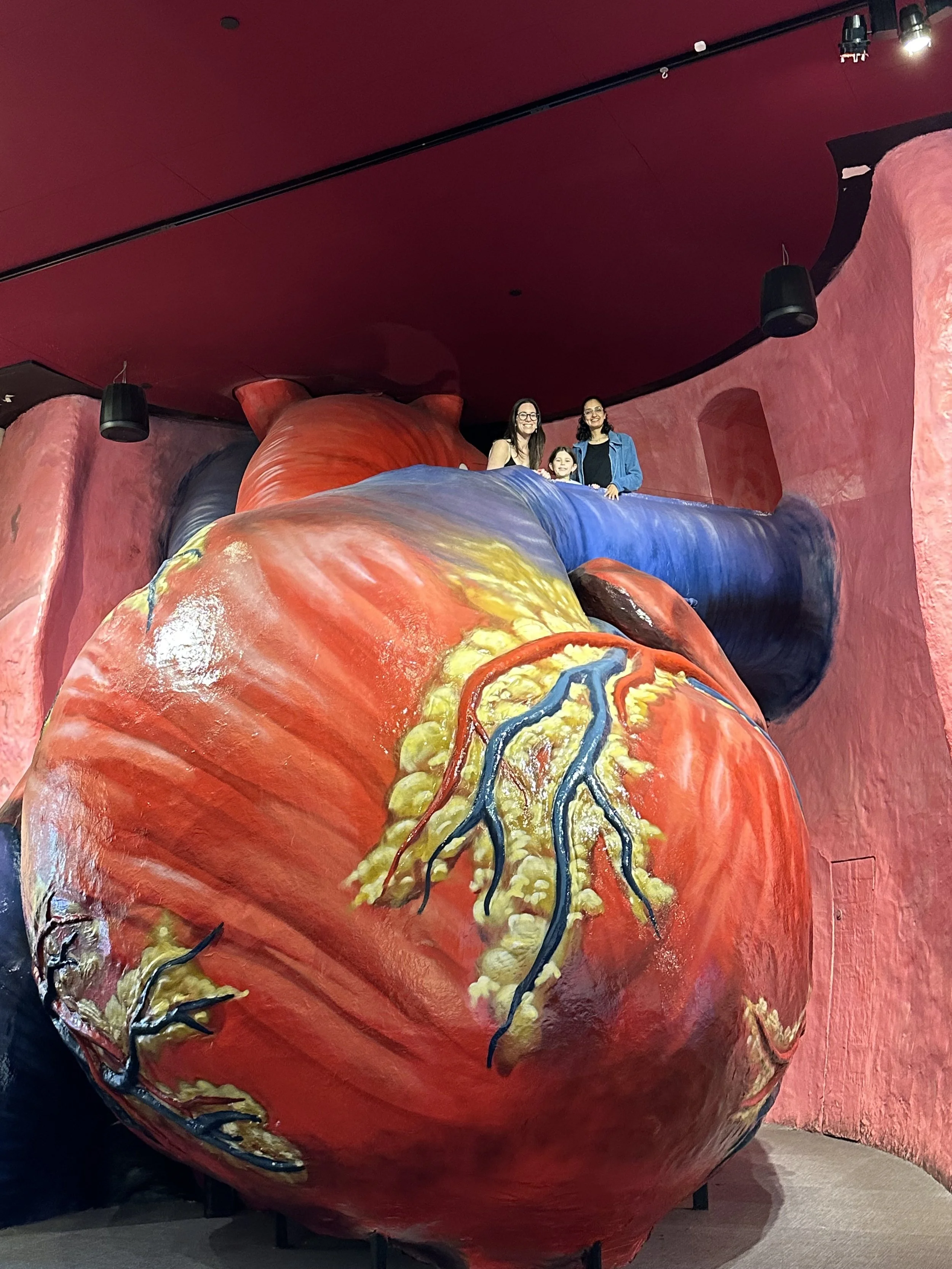 When we finished with the Disney exhibit we spent a few minutes walking through the giant heart exhibit, but everyone was finished after that. Hallie wanted to get Dippin’ Dots at the cafeteria, but they said the Dippin’ Dots cart was closed. Like, they literally could have just opened the cart. It was odd, but then they gave her a slushie for free.