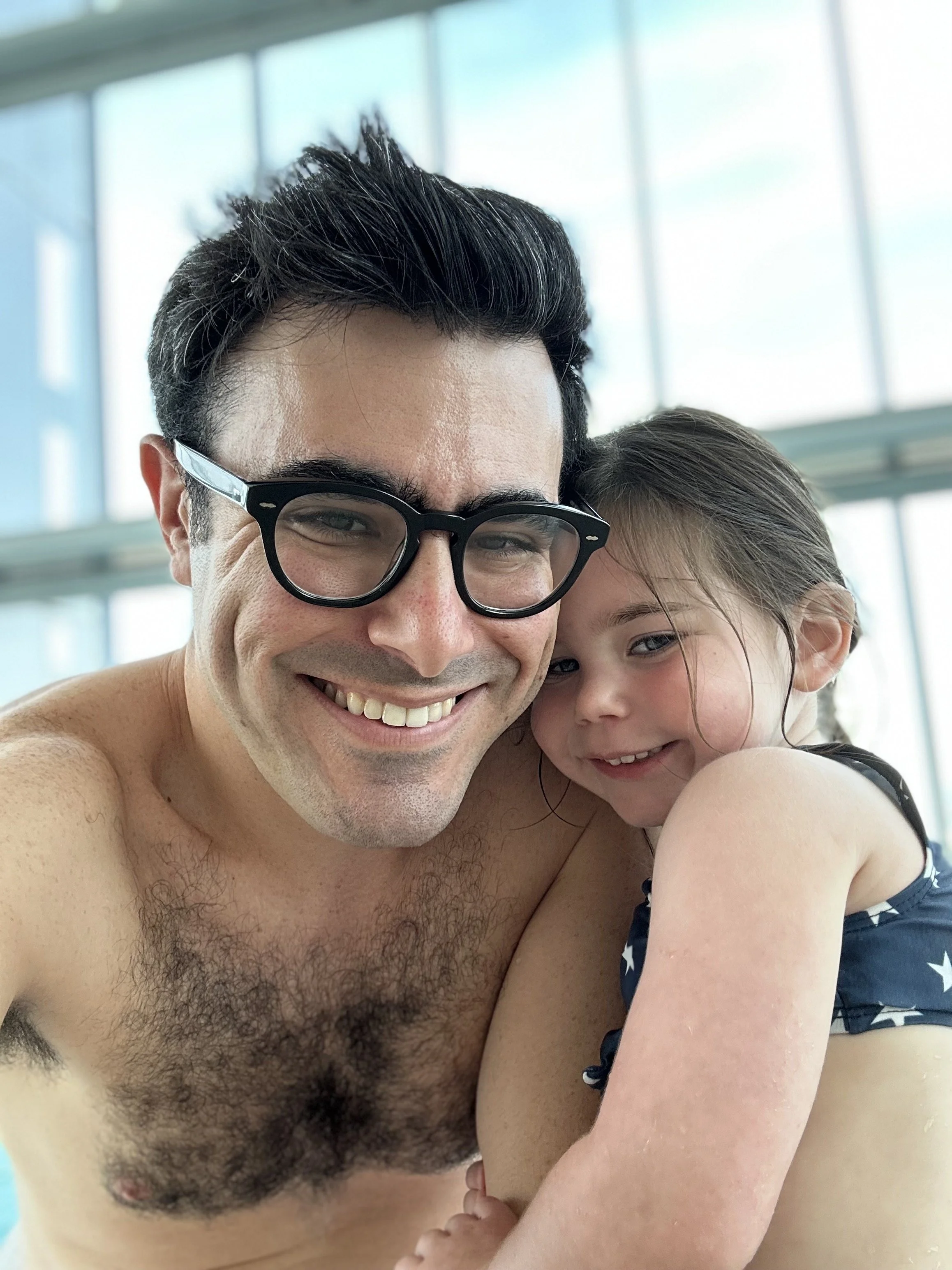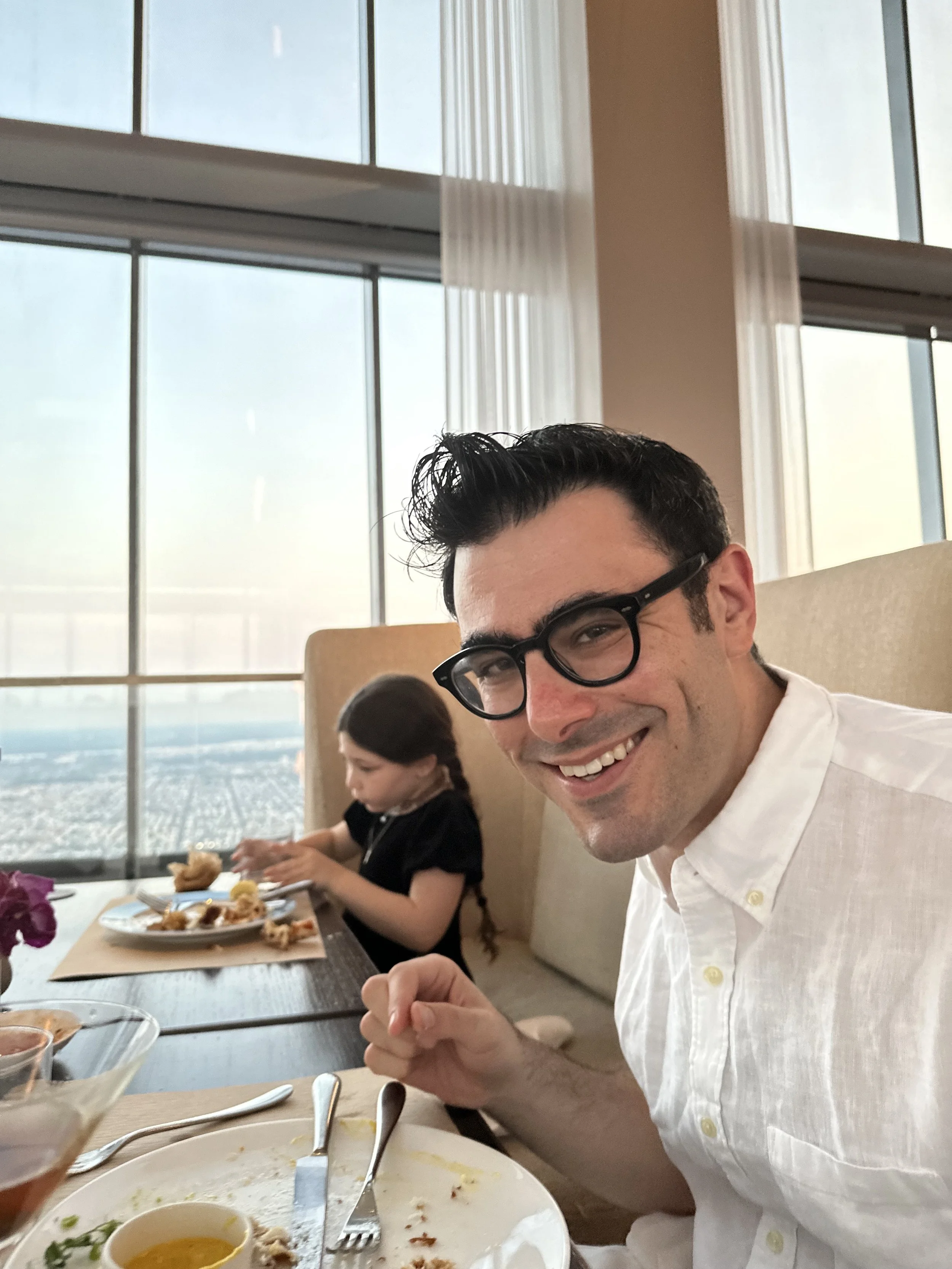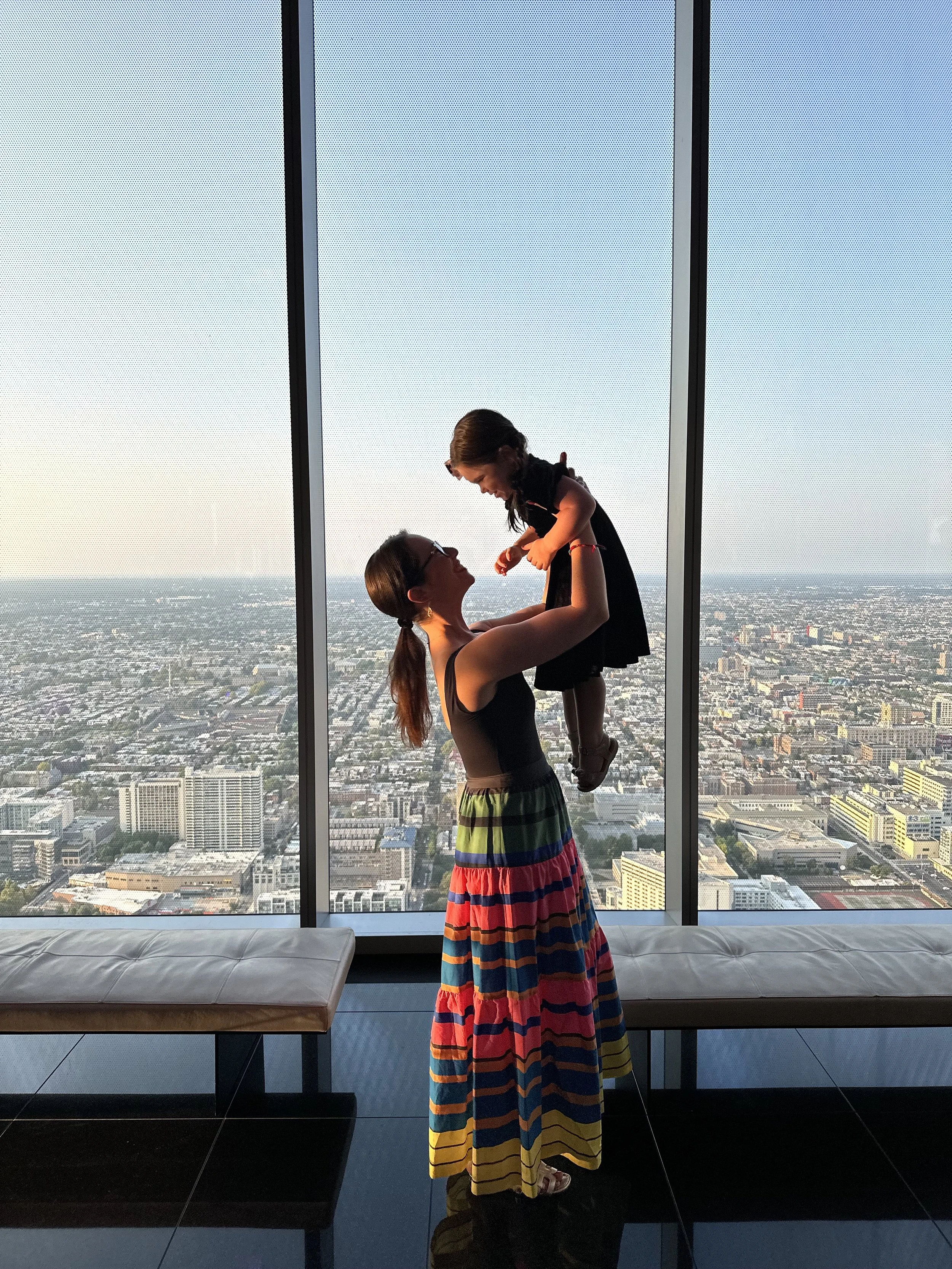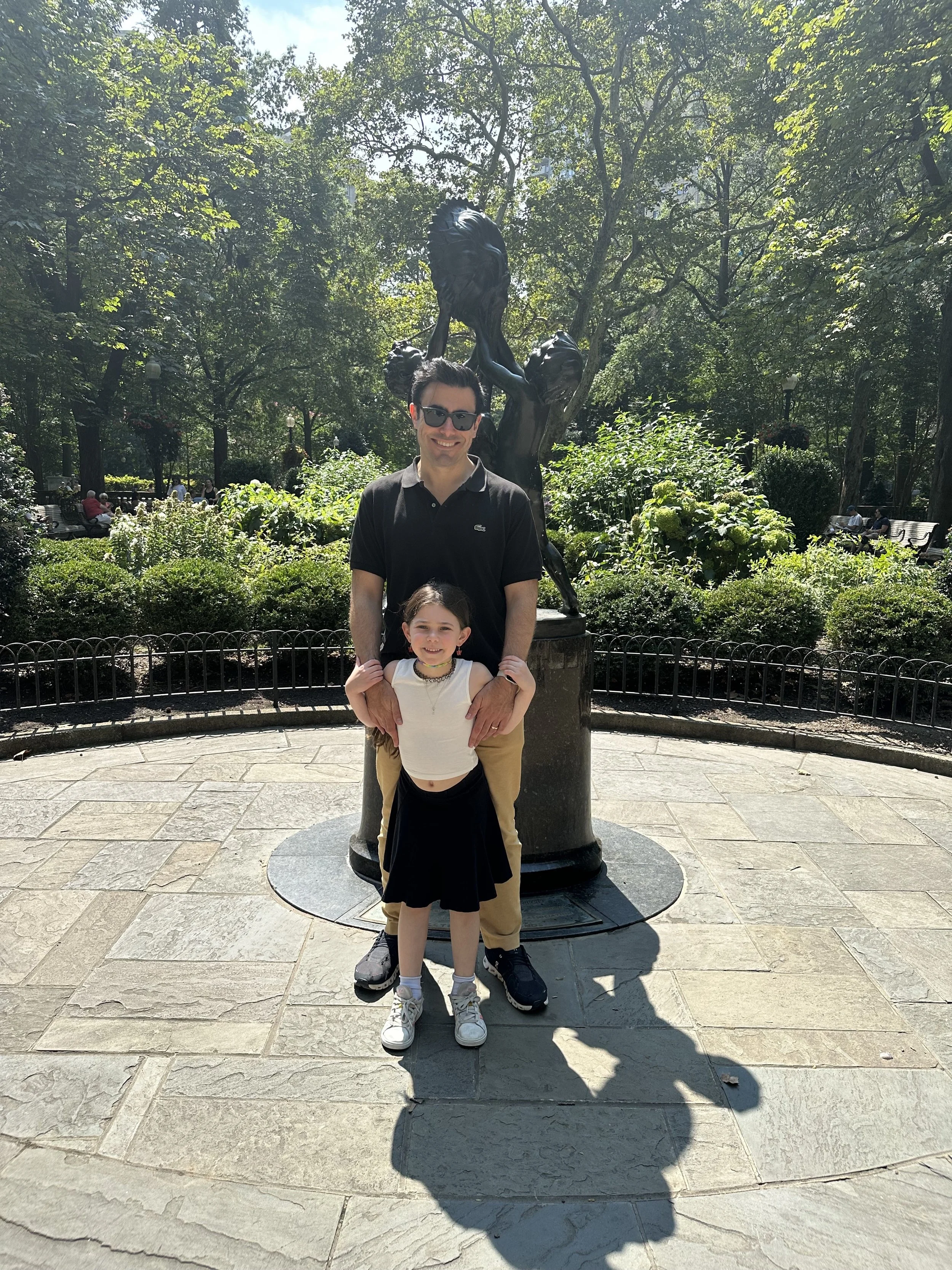 From there we walked back to the hotel, Madeleine once again insisting on riding on Tzvi’s shoulders. We walked through the Love Park, where Madeleine saw a fountain and said she wanted to go in it. We said we were going back to the hotel to swim in the pool, but she insisted she was going in the fountain. Even once we got back to the hotel she continued to insist she was going back to the park to the fountain. Eventually she acquiesced and we spent some time in the pool, before going back and changing for dinner.