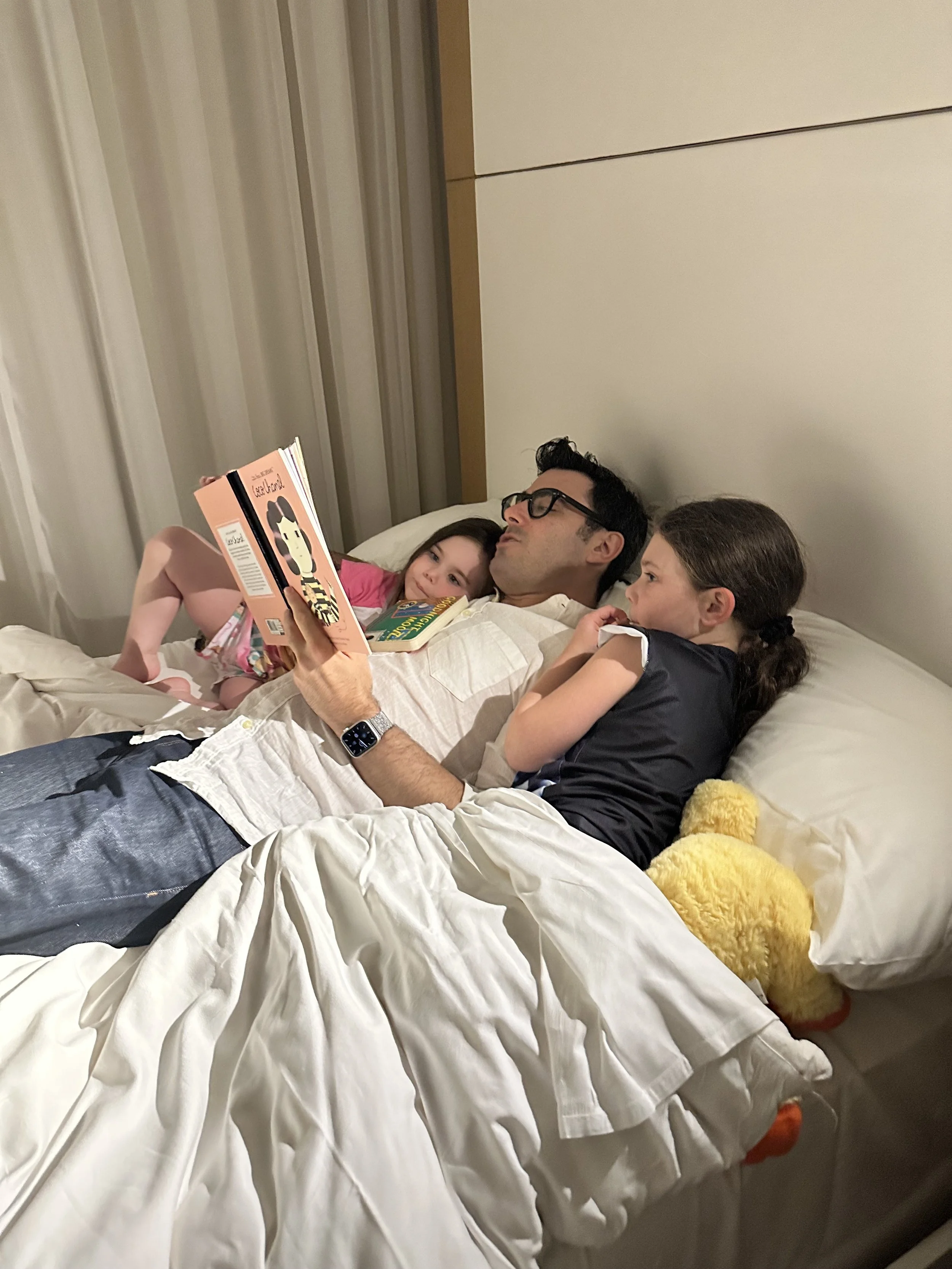 Tzvi took Madeleine to the pool for a swim while I stayed in the room with Hallie, who wanted to take an extra-long bath. After a while they came back and we went to dinner.