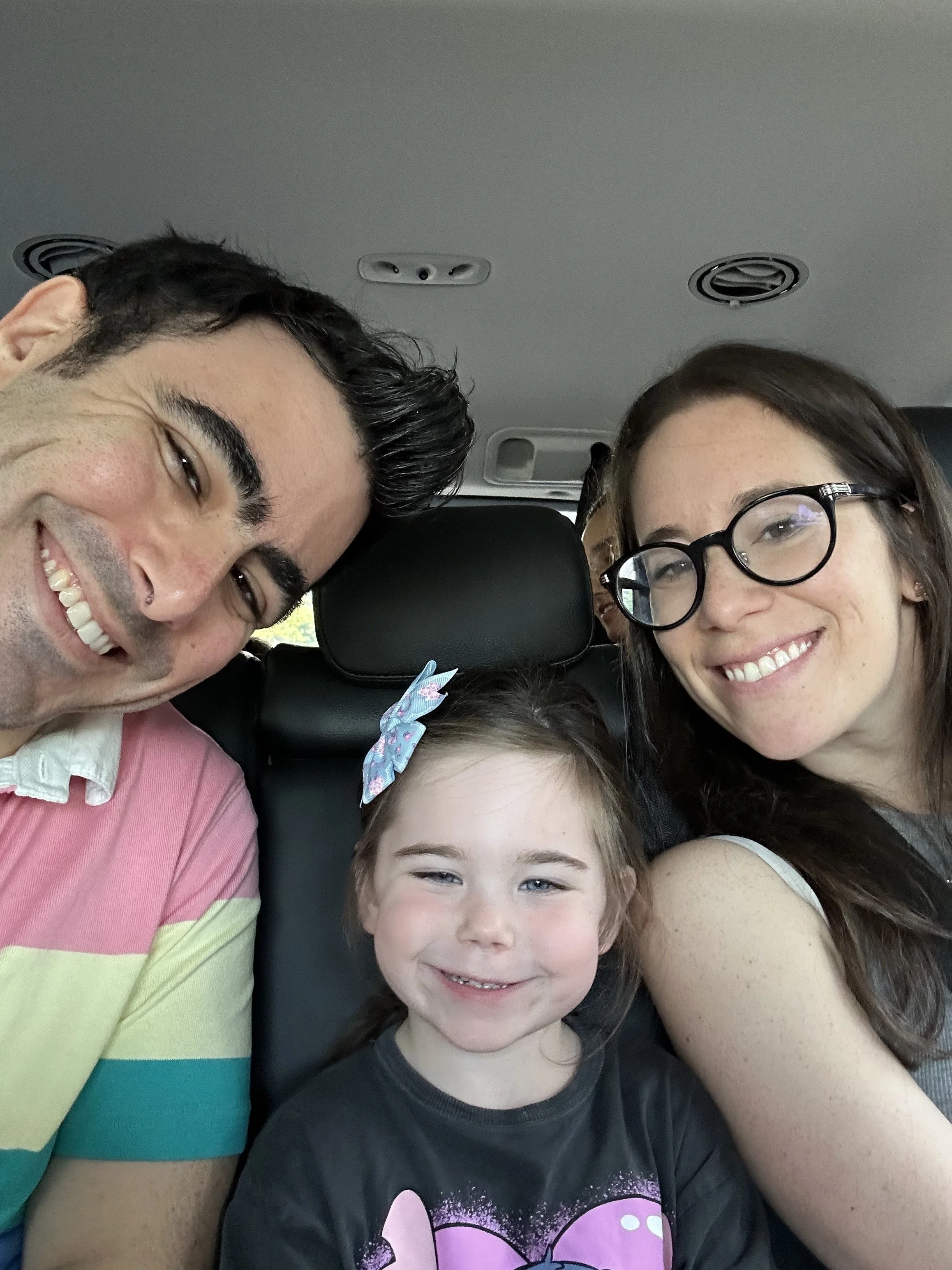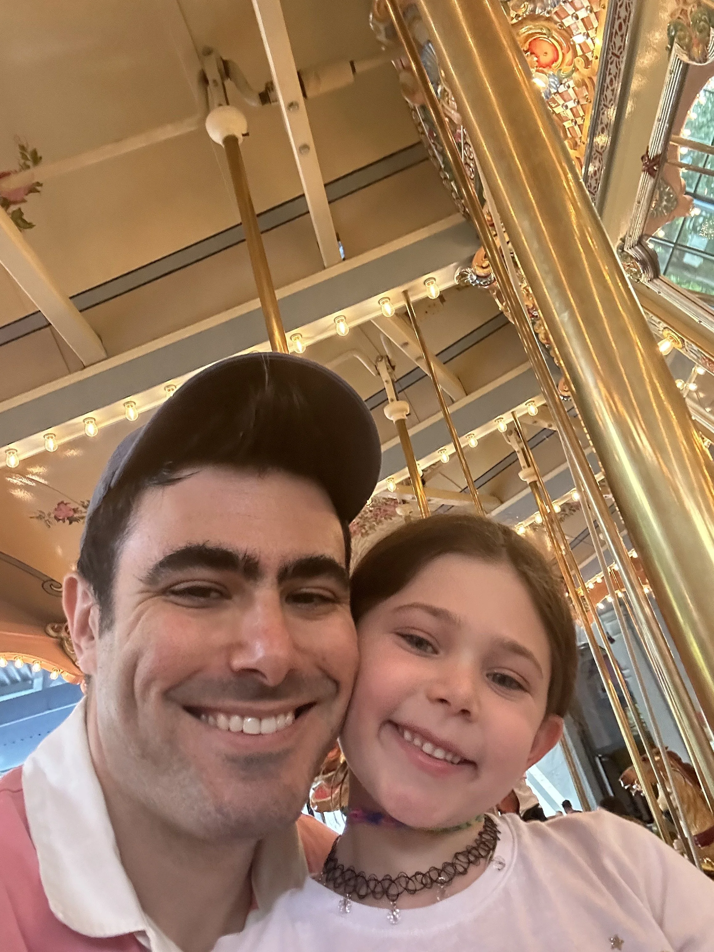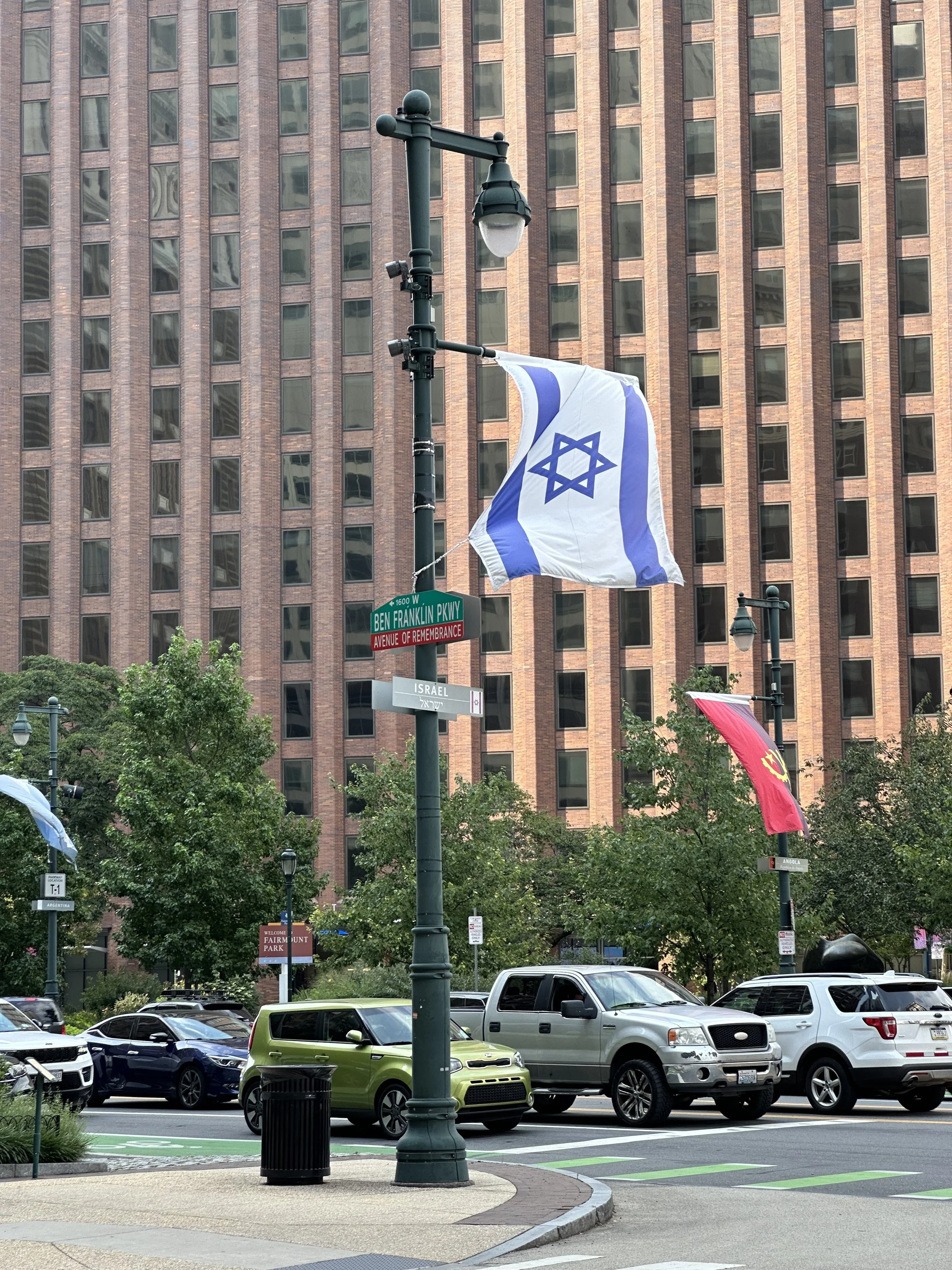 After lunch we walked to Reading Terminal Market, a famous Philly food market. Hallie was so tired she insisted on being in the stroller, so Tzvi carried Madeleine on his shoulders for about a mile. Hallie ended up falling asleep and missing the market entirely. We didn’t buy anything, but Madeleine bought some candy. [Tzvi: All I really wanted was a soft pretzel from the pretzel vendor the hotel recommended. We walked by and saw the pretzels, and *someone* said we should see the rest of the market and then circle back, but by the time we got back they had run out. That was sad.]