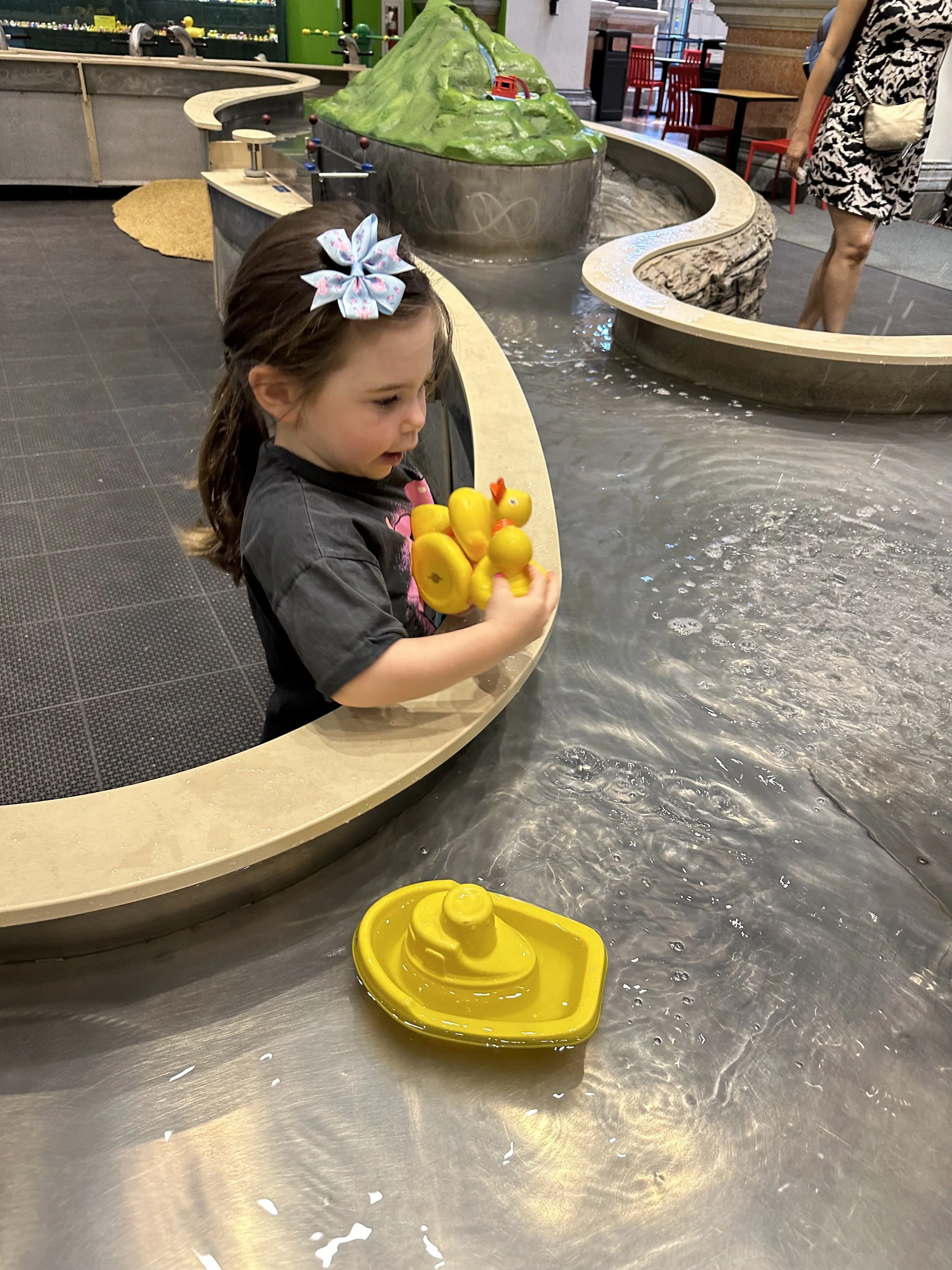 Well, I slept decently until I was woken at 6:57 by sounds from the other room. Apparently the kids got up quite early, around 6, so that’s great. We stayed in bed for a while, and then got ready and went to J.G Sky High for breakfast. I was still full from last night but managed to have some avocado toast. Inbar got Eggs Benedict but without any meat or fish, so really just eggs and Hollandaise sauce on an English muffin, which seemed funny to me though who am I to judge being picky? The kids were jumping all over the booth, which is really just a continuation of the literal animals they have been since we left home. After breakfast we got our stuff and took an Uber to the Please Touch Museum.