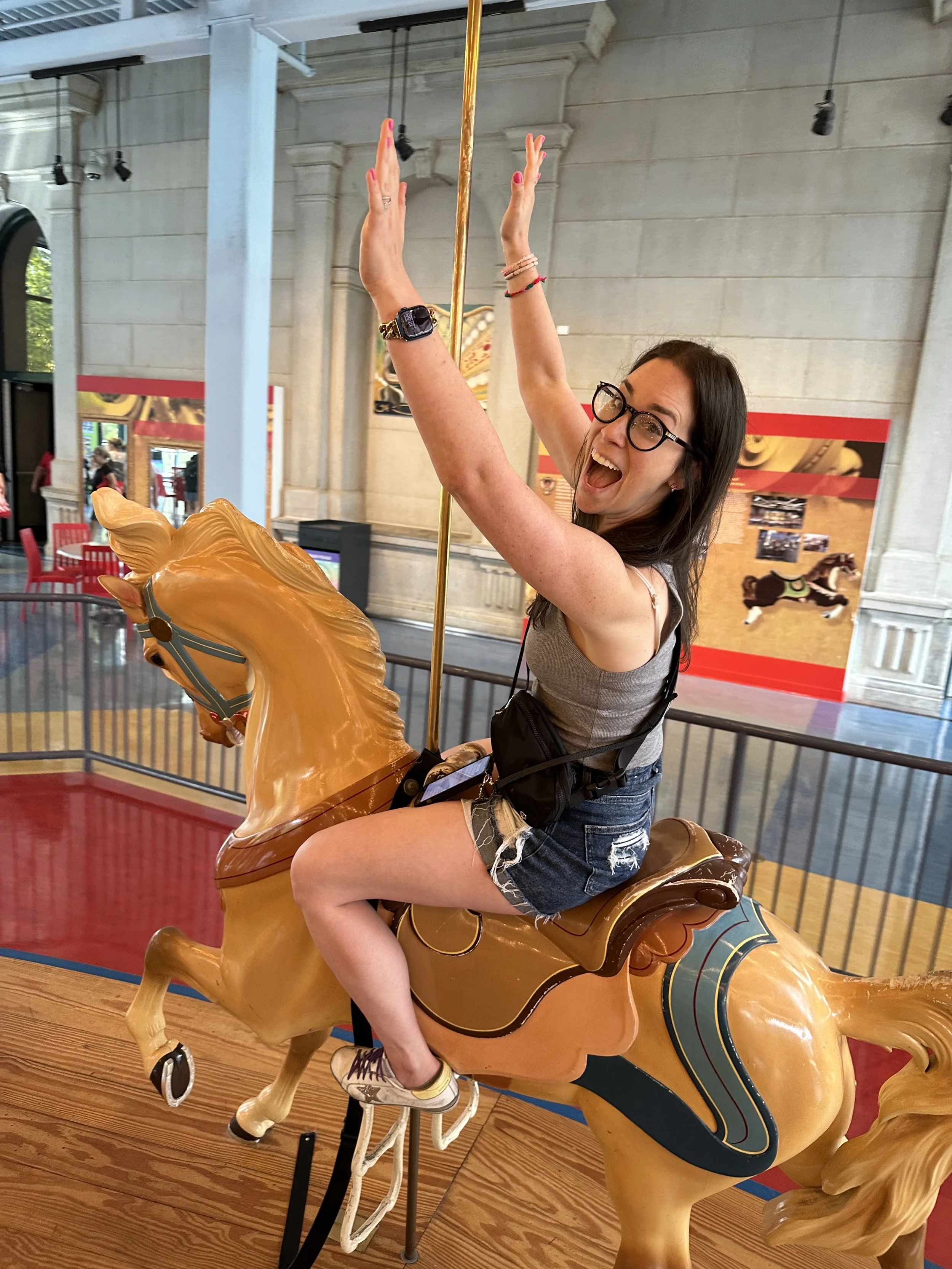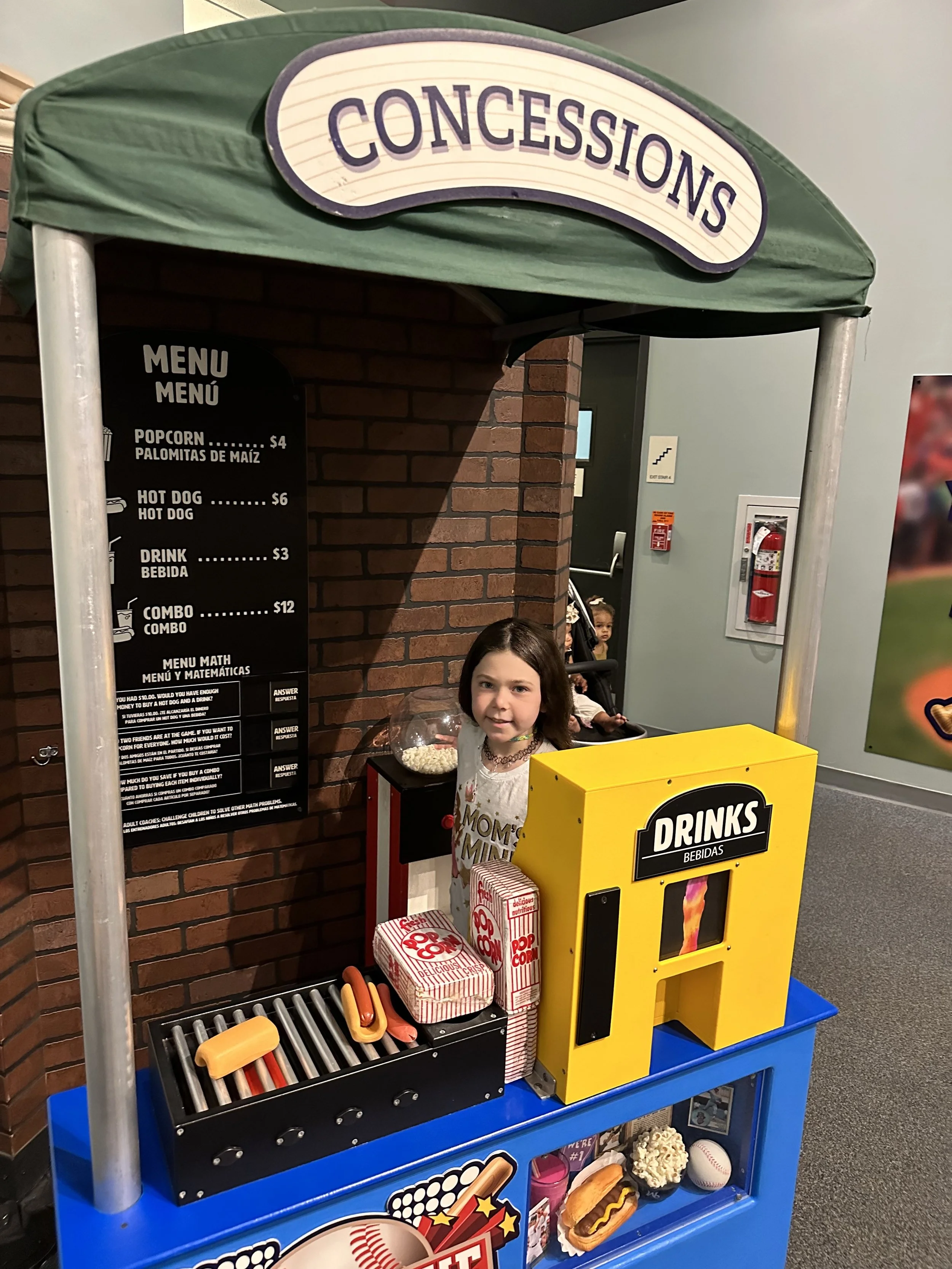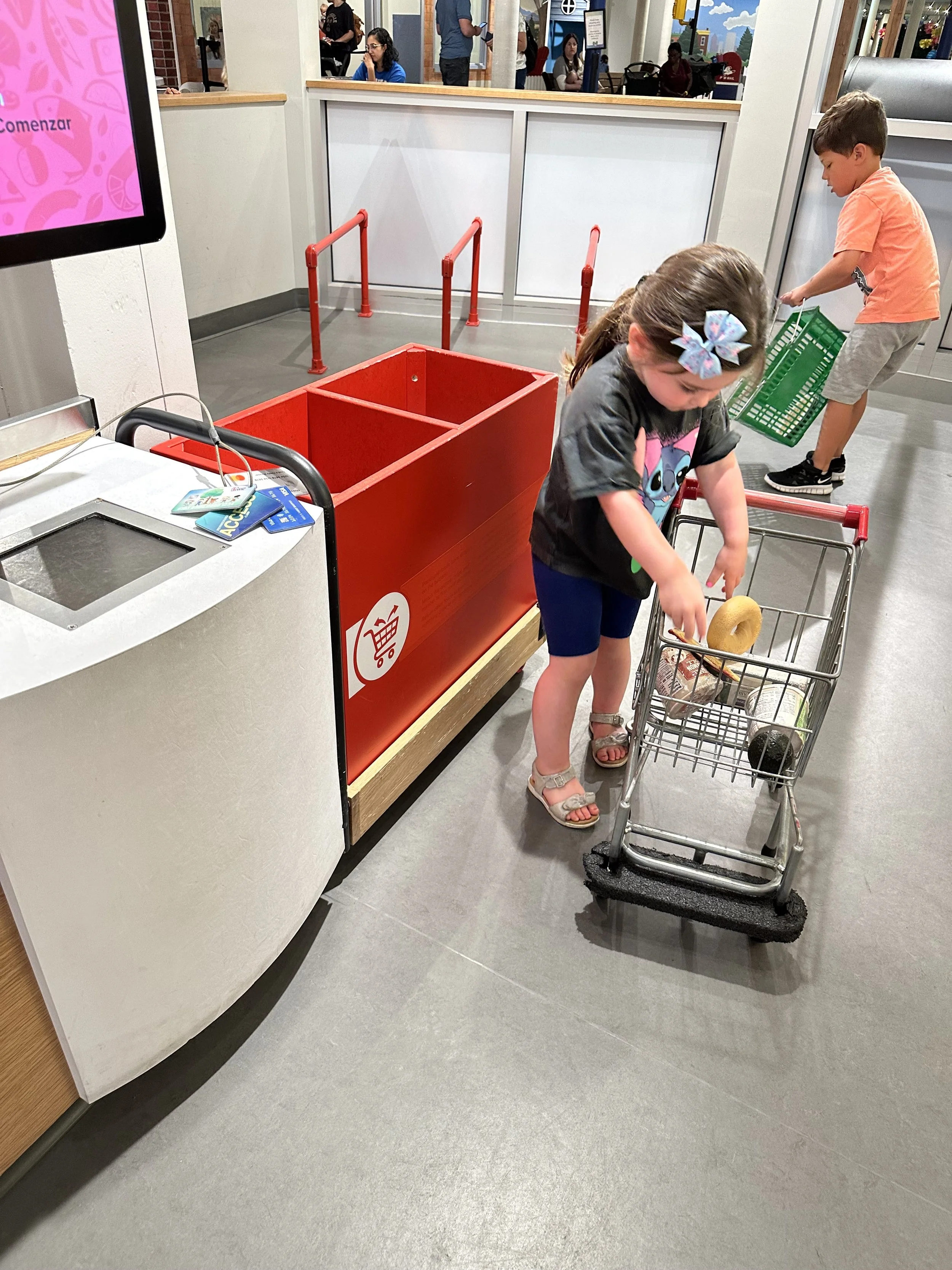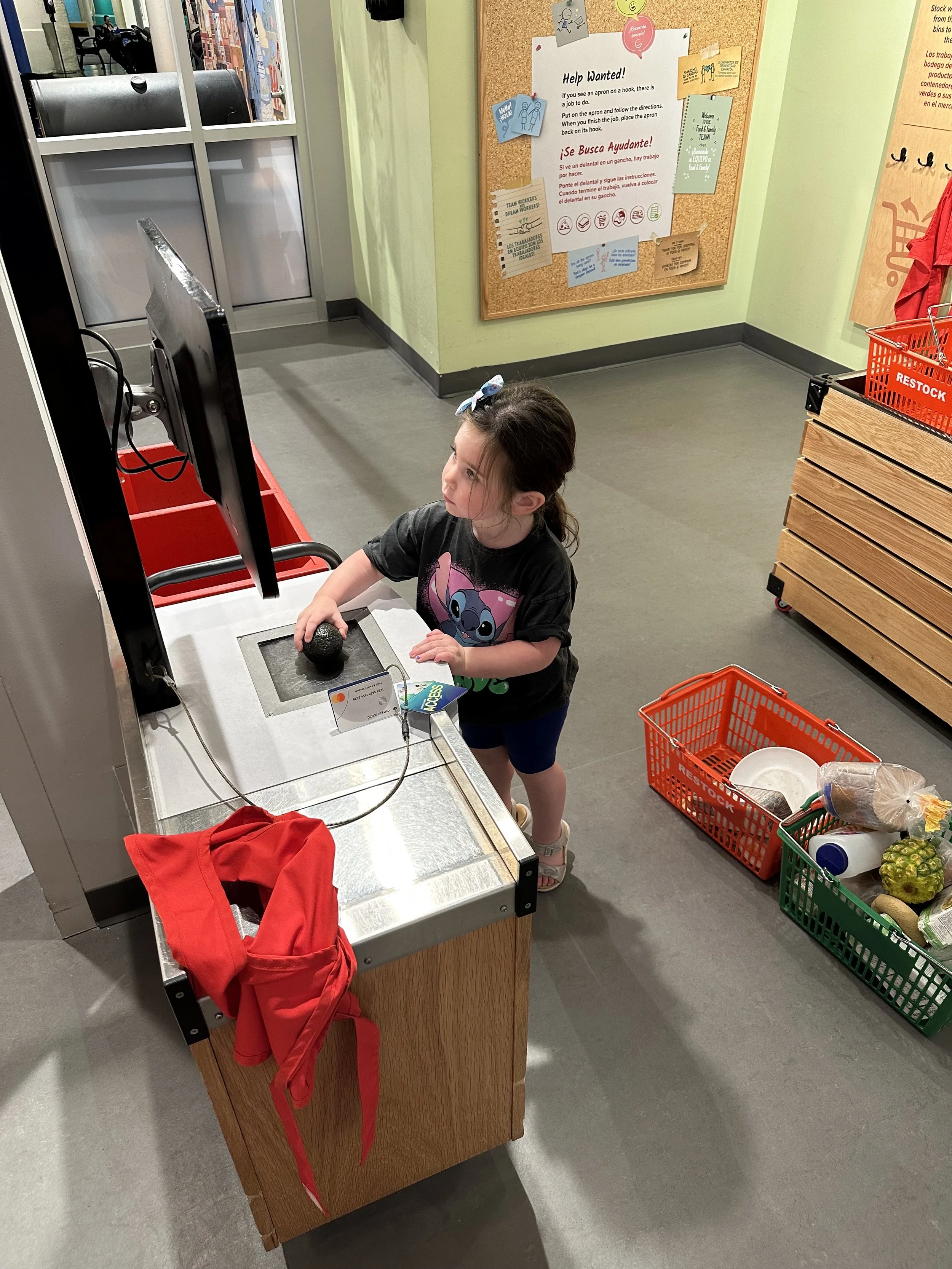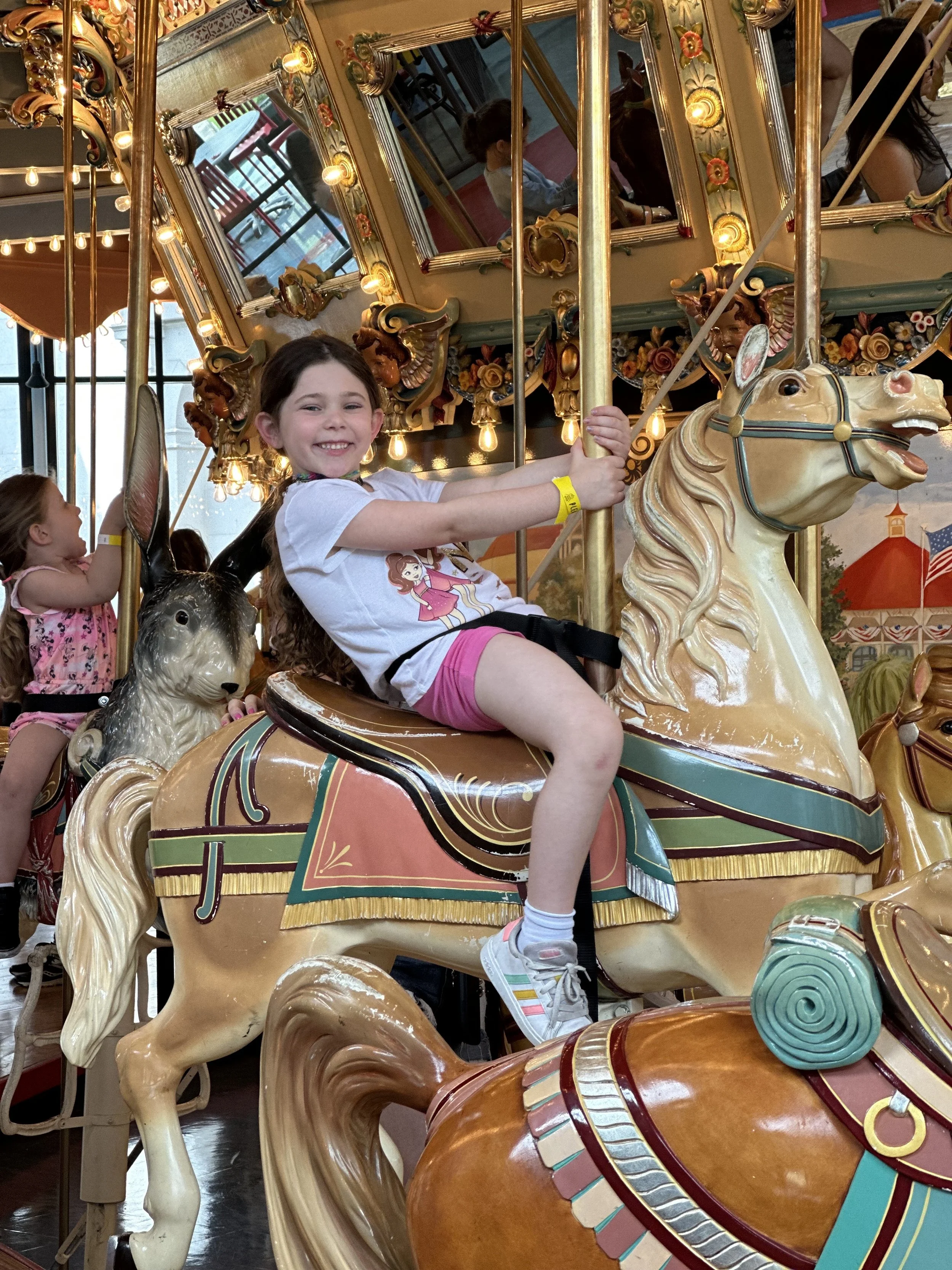 The Museum is great. It’s not really a museum – it’s more of a massive play place that’s the size of a museum. There were a bunch of different play spaces. One was basically a full grocery store where the kids went around with a mini shopping cart and worked the check out counter. Madeleine had the best time just putting things in the cart and taking them out and “beeping” them. There was another huge space that was Alice in Wonderland themed, a baseball exhibit, and different arts and crafts areas. At the end the kids rode the carousel… three times.