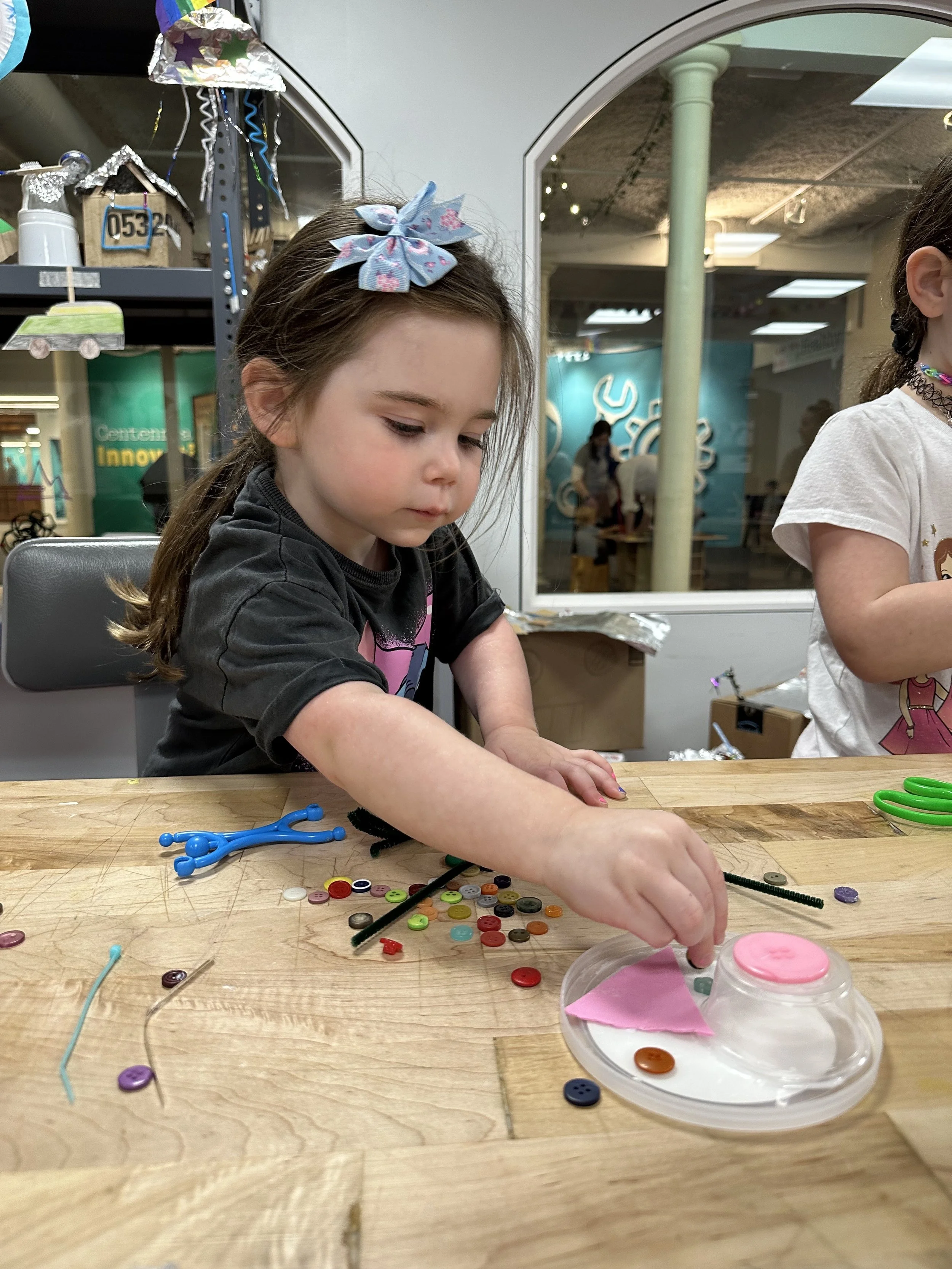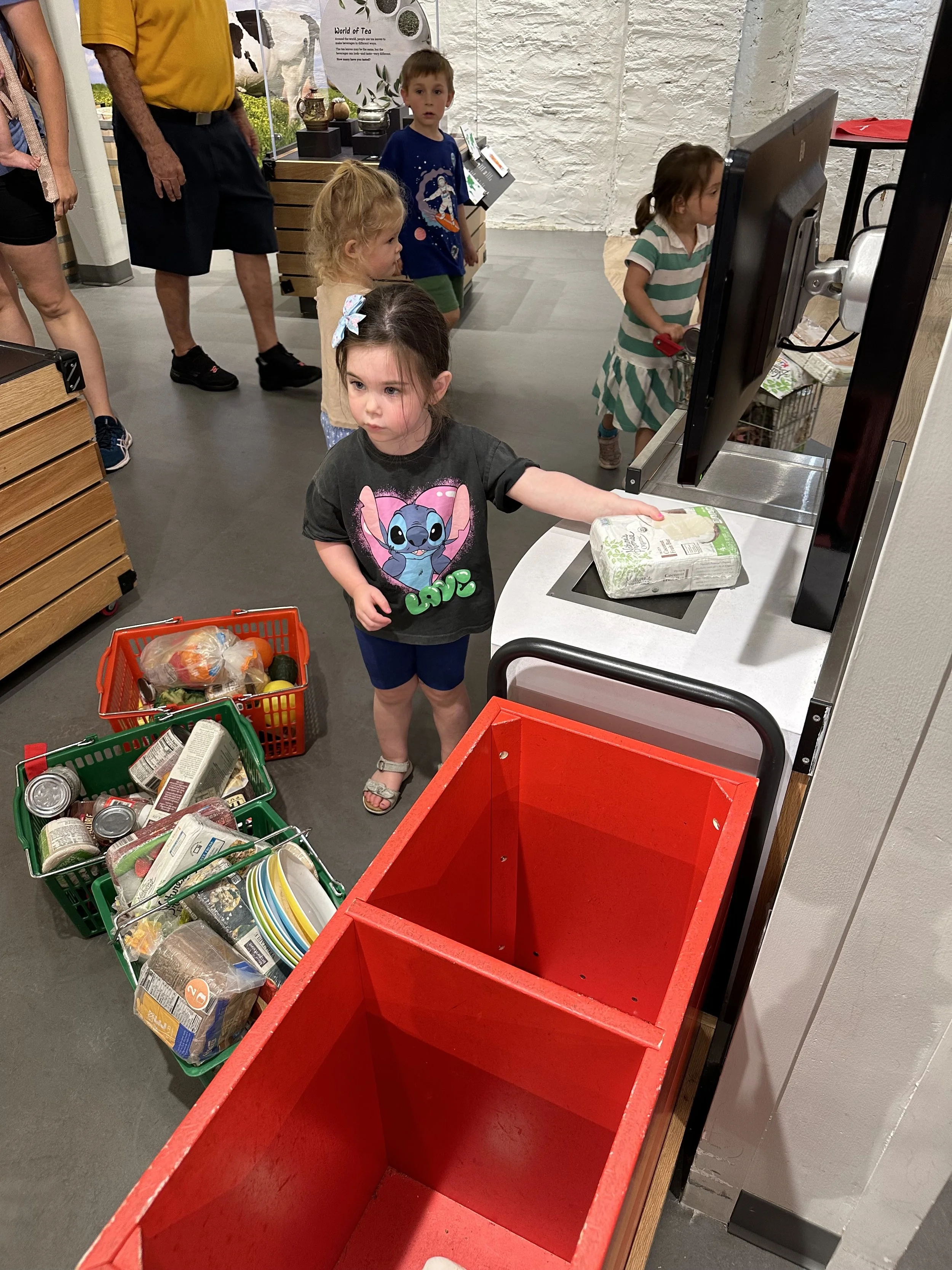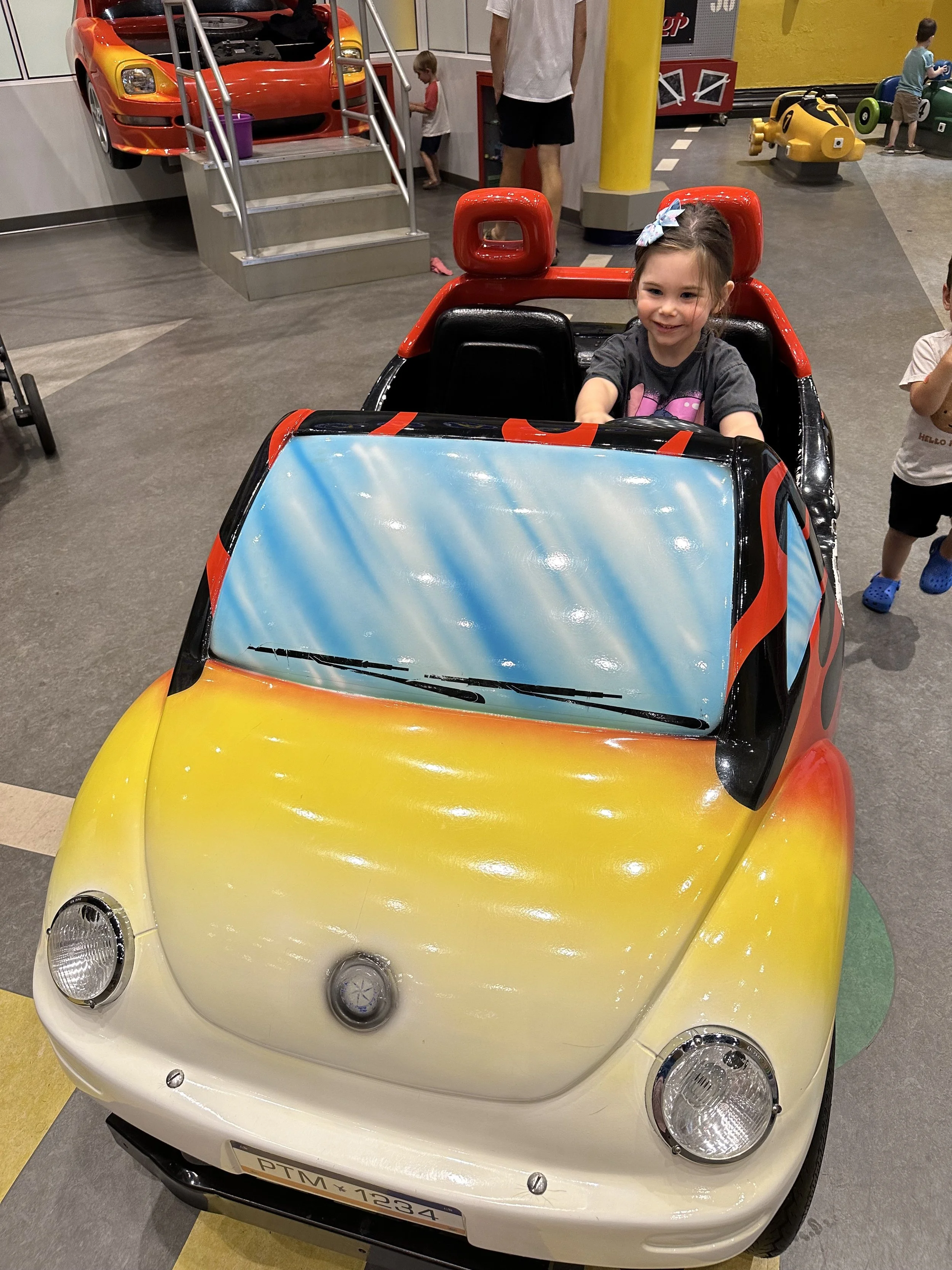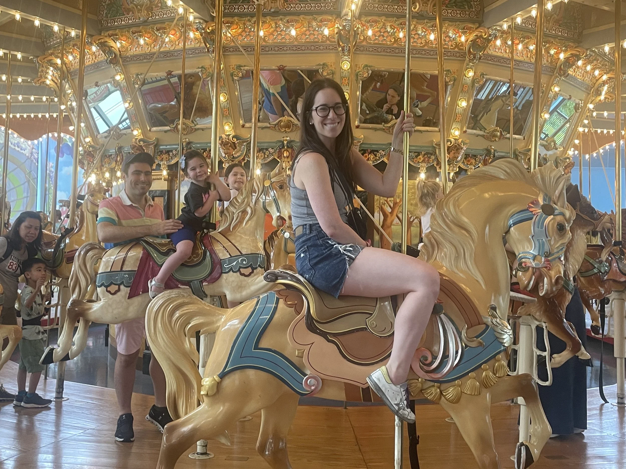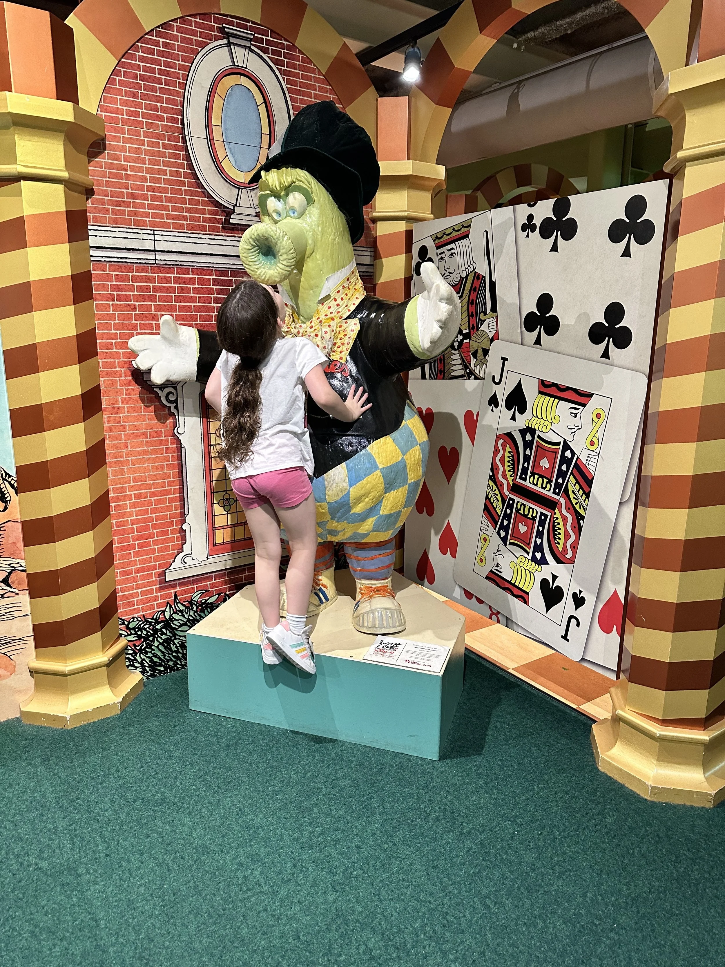 The Museum is great. It’s not really a museum – it’s more of a massive play place that’s the size of a museum. There were a bunch of different play spaces. One was basically a full grocery store where the kids went around with a mini shopping cart and worked the check out counter. Madeleine had the best time just putting things in the cart and taking them out and “beeping” them. There was another huge space that was Alice in Wonderland themed, a baseball exhibit, and different arts and crafts areas. At the end the kids rode the carousel… three times.
