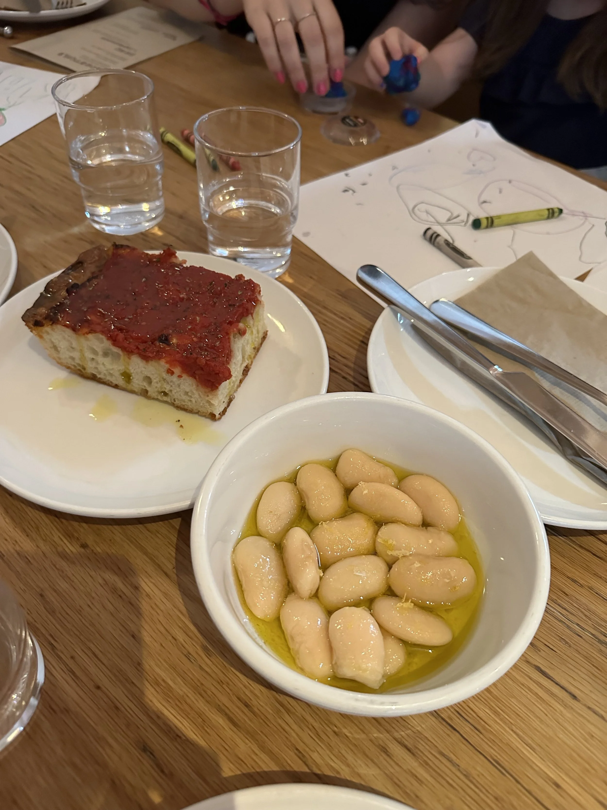 We drove about twenty minutes to a neighborhood called Fishtown. I don’t really know, but it kind of felt like the Brooklyn on Philly. Dinner was at Pizzeria Beddia, which was a very nice restaurant that was kind of hidden down an alley. [Tzvi: The original Pizzeria Beddia was named by many as the best pizza in America back in 2015. At that time they were in a different smaller location and made only 40 pies a day. I guess that’s not a sustainable business model, so they closed and reopened as a real restaurant. They say it’s not as good (and not as highly regarded) as the original, but we still thought it was very good.] We ordered two cheese pies, a tomato pie, and a white pie with corn that Tzvi and Inbar shared. We also had a bunch of apps, which were great.