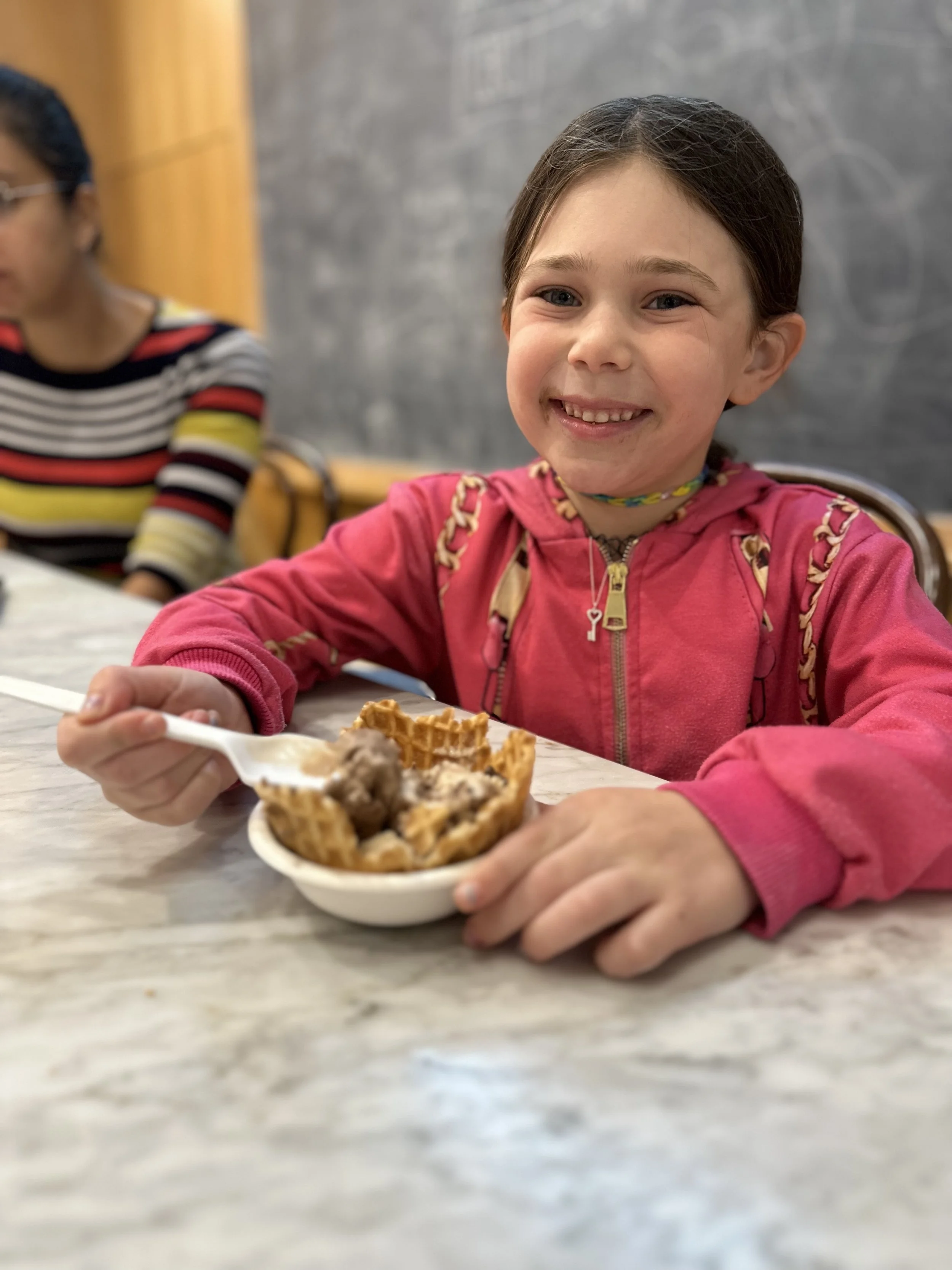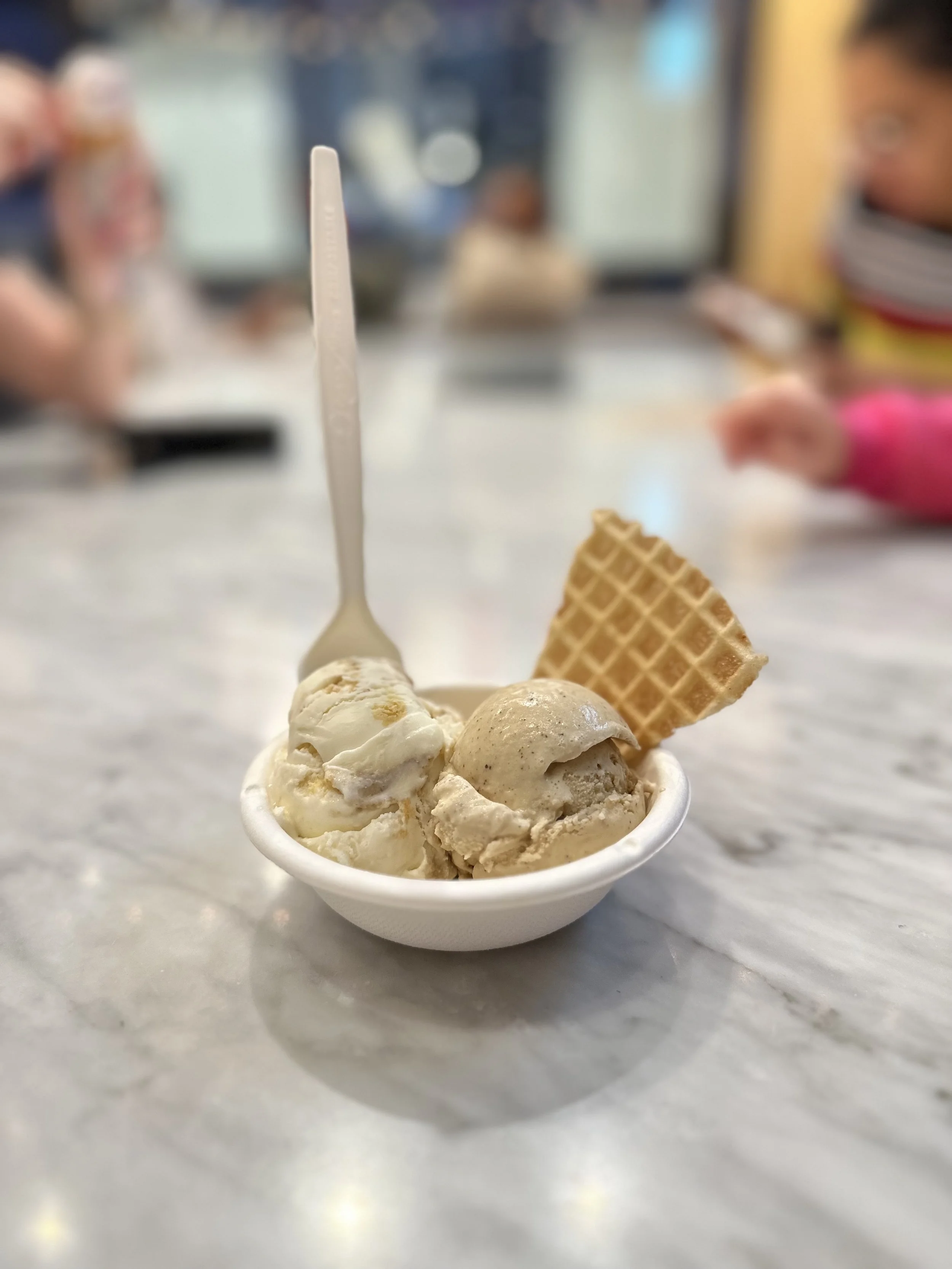 Nothing called to us for dessert so we left and walked around the corner to Jeni’s Ice Cream. I got a blackberry pie flavor and Tzvi got coffee and gooey butter cake. It was very good.
